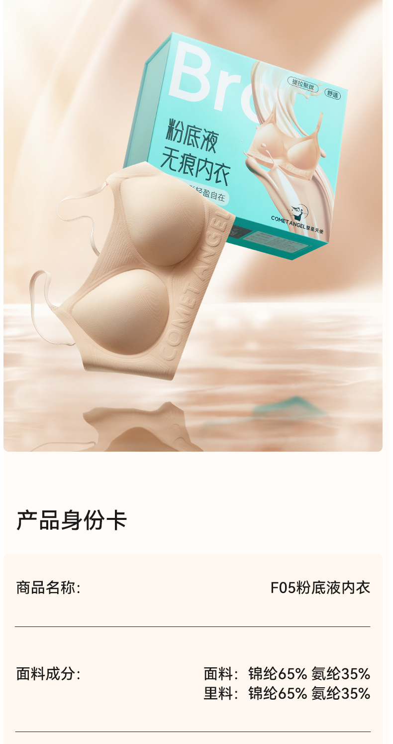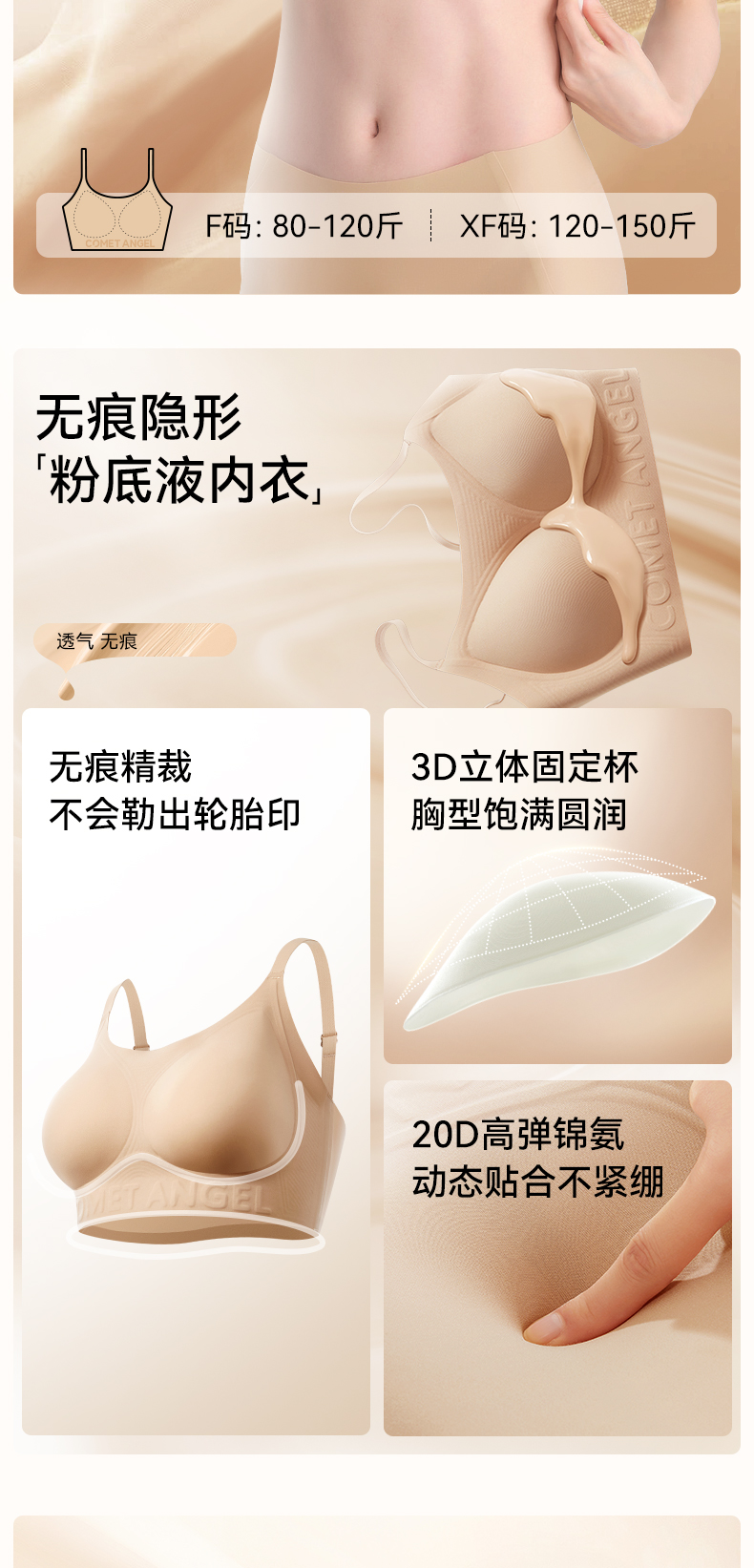 彗星天使无痕隐形肤色不透色不露痕W型软支撑告别空杯粉底液内衣F05#