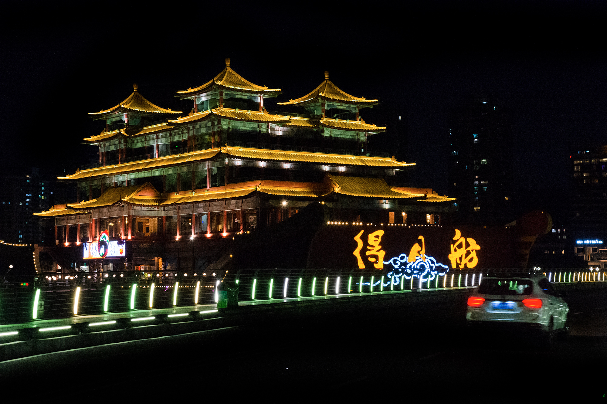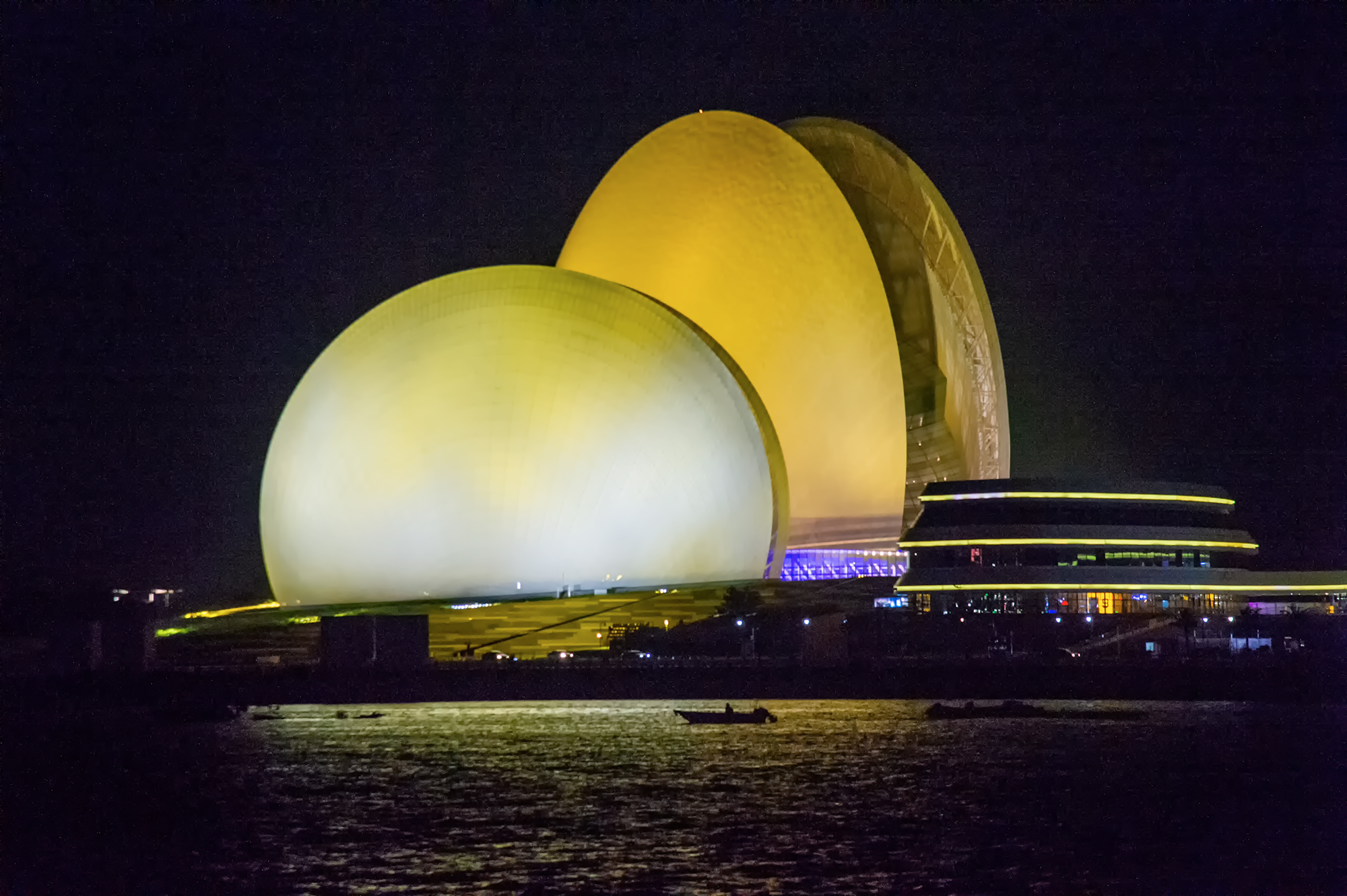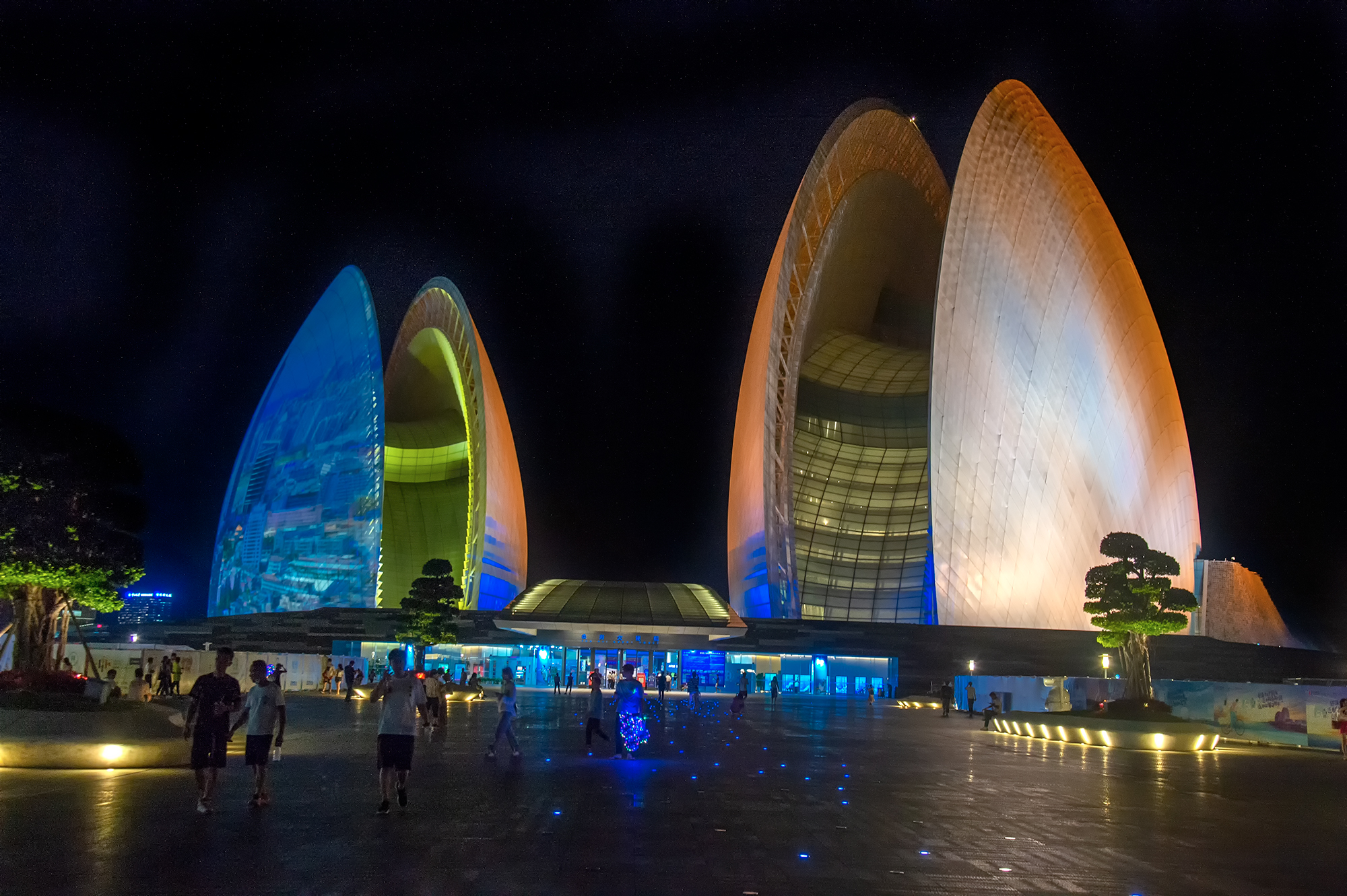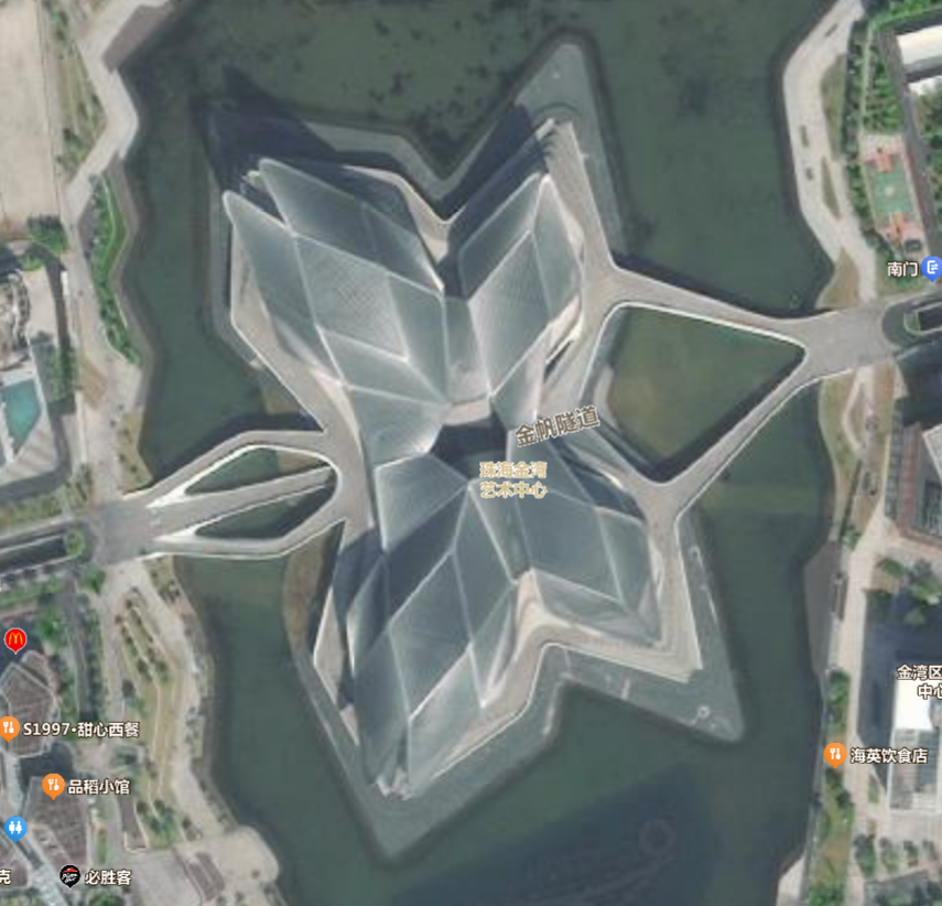 极具赛博朋克科幻威,仿佛是一艘外型巨大蝴蝶器状的外星飞船降落在这南海之畔。