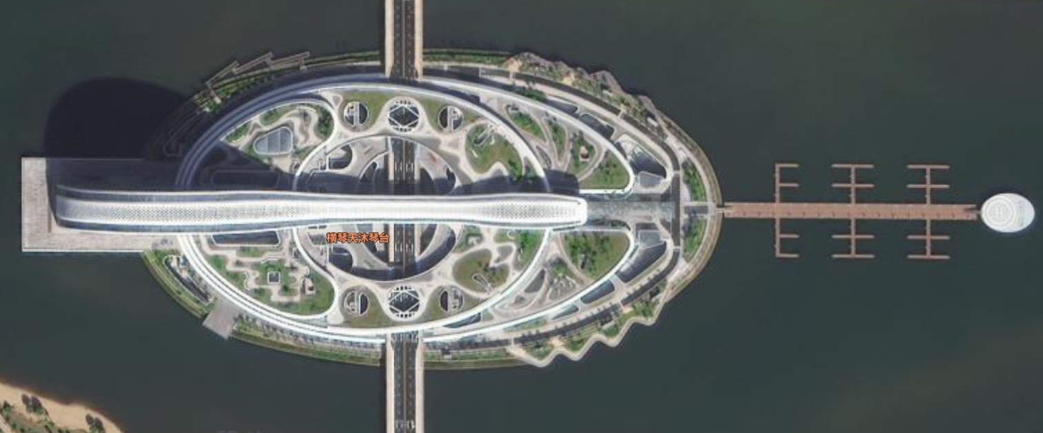 建筑主体立面采用流线型的形体组合,以玻璃幕墙立面掩映着虚实结合的室内空间,使建筑形成富有节奏的韵律感及“琴韵”之意,被誉为“横琴之心”