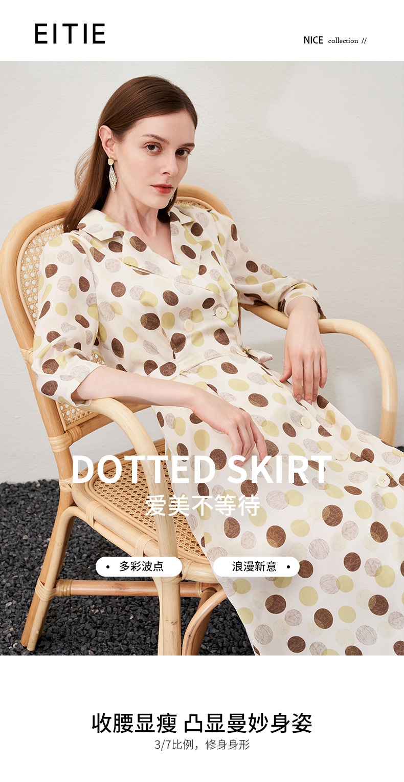 EITIE爱特爱春季新款印花时尚气质A字裙连衣裙6907617