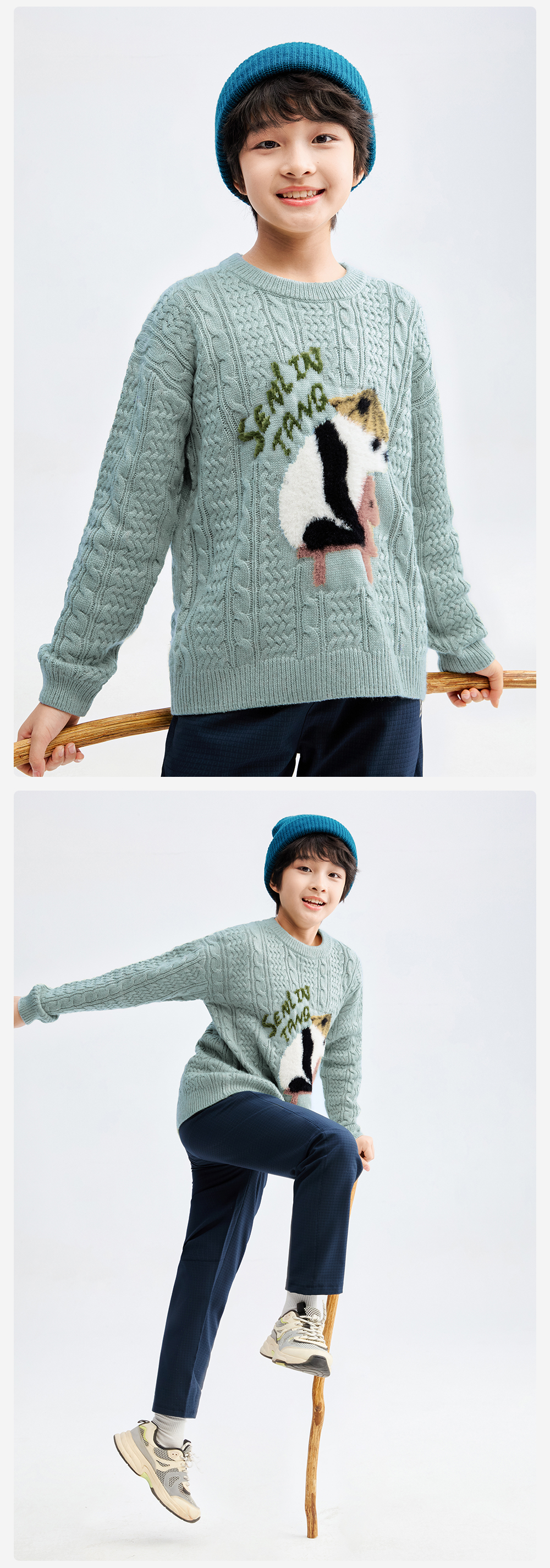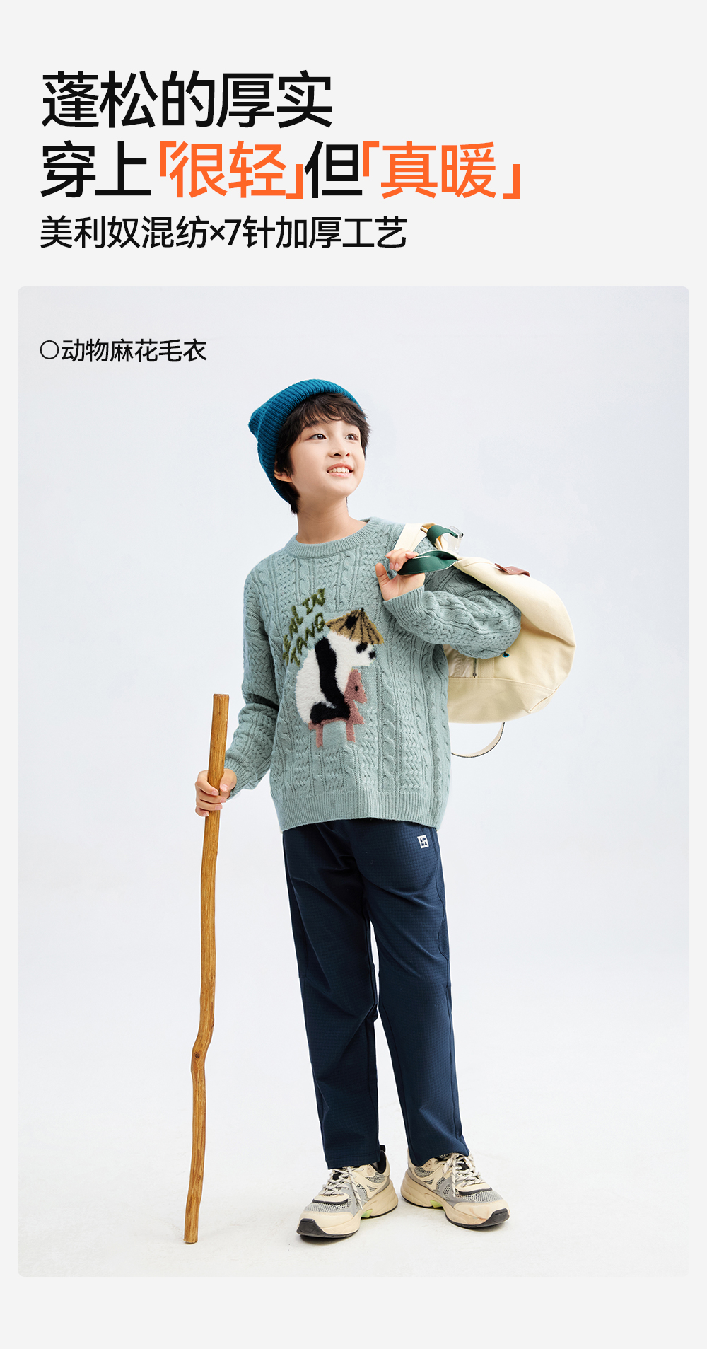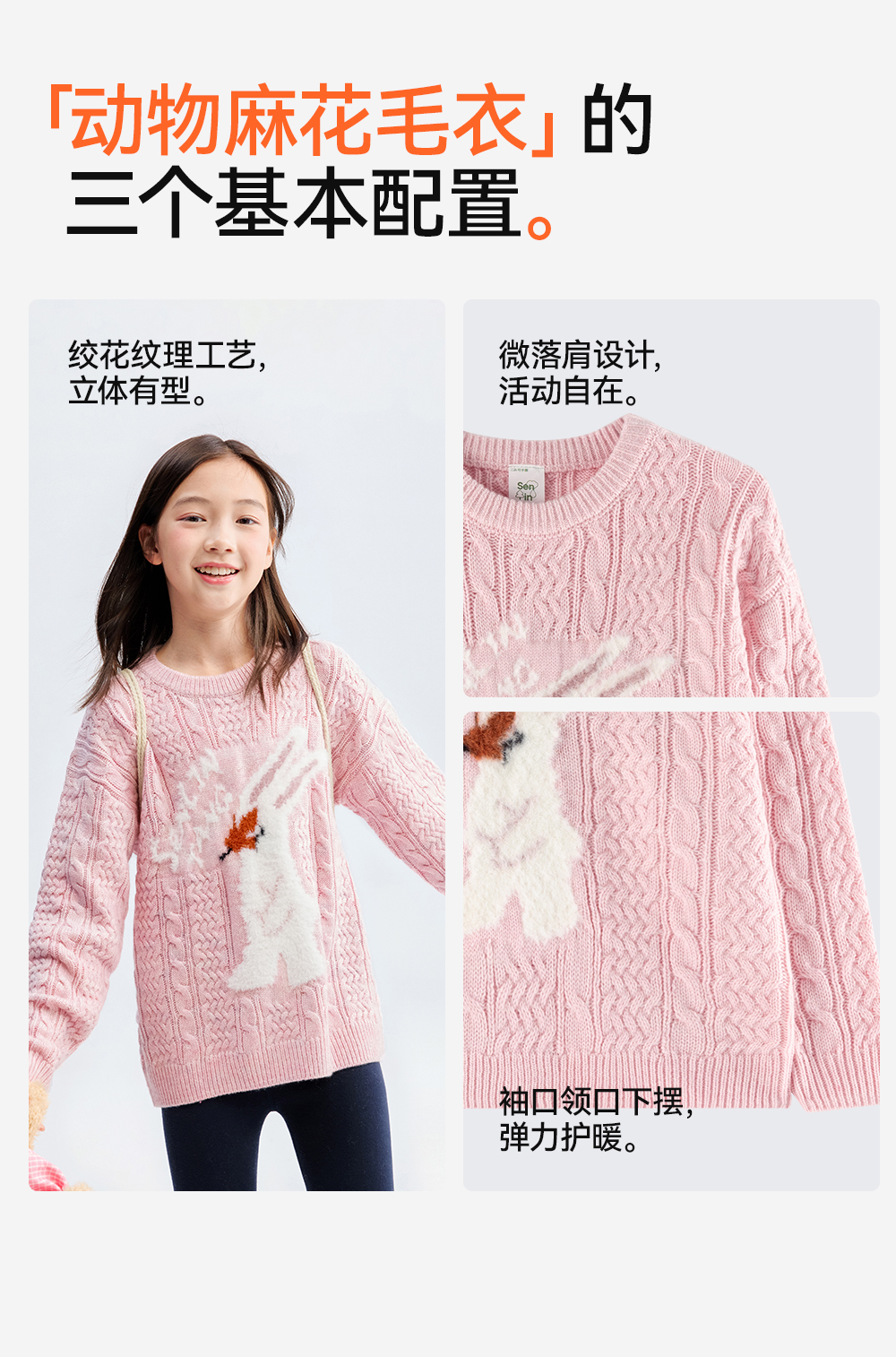 【动物麻花毛衣】森林棠25秋冬新款儿童彩色卡通图案柔软厚实针织毛衣80612506