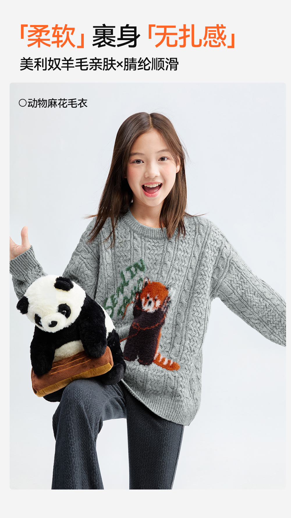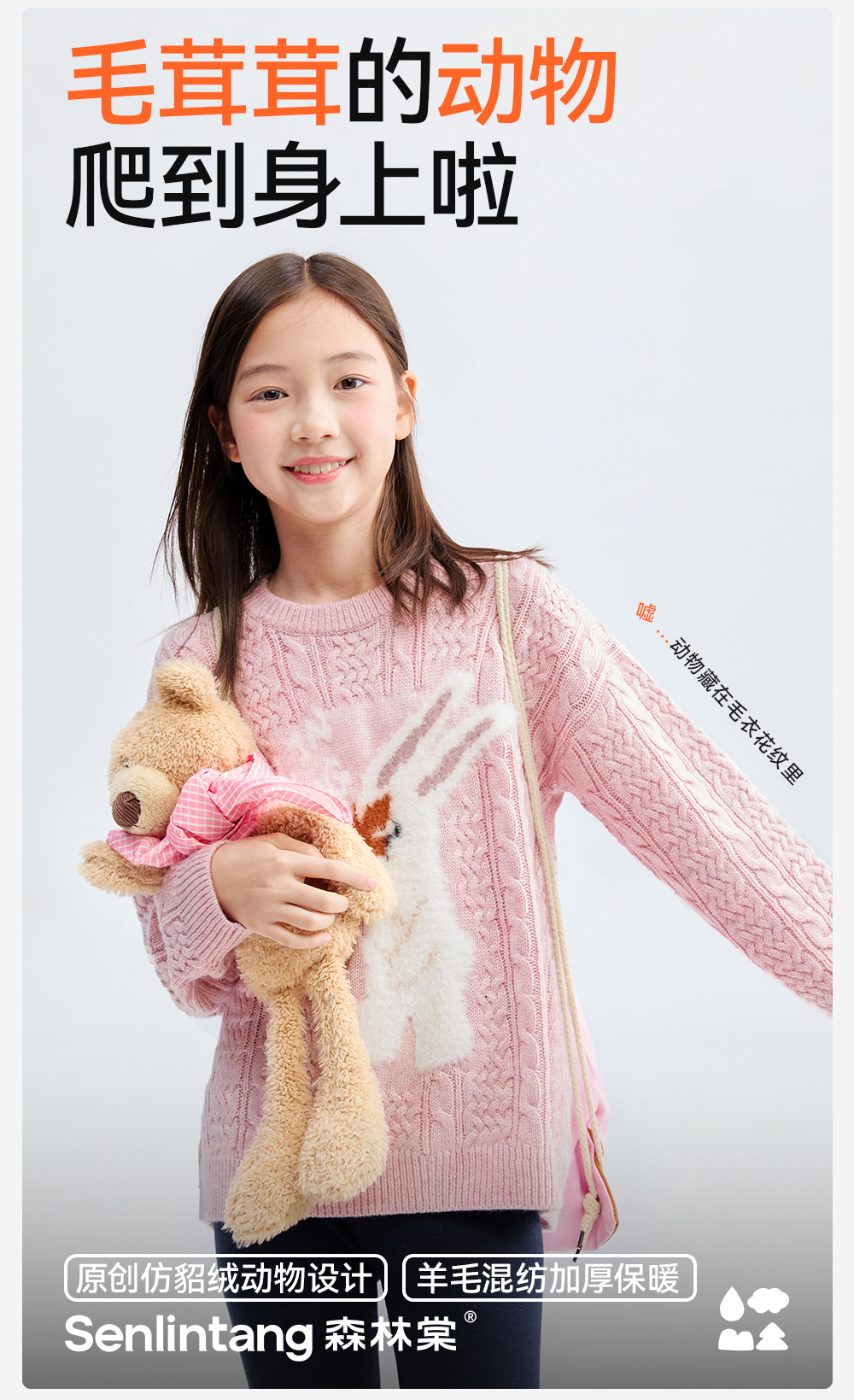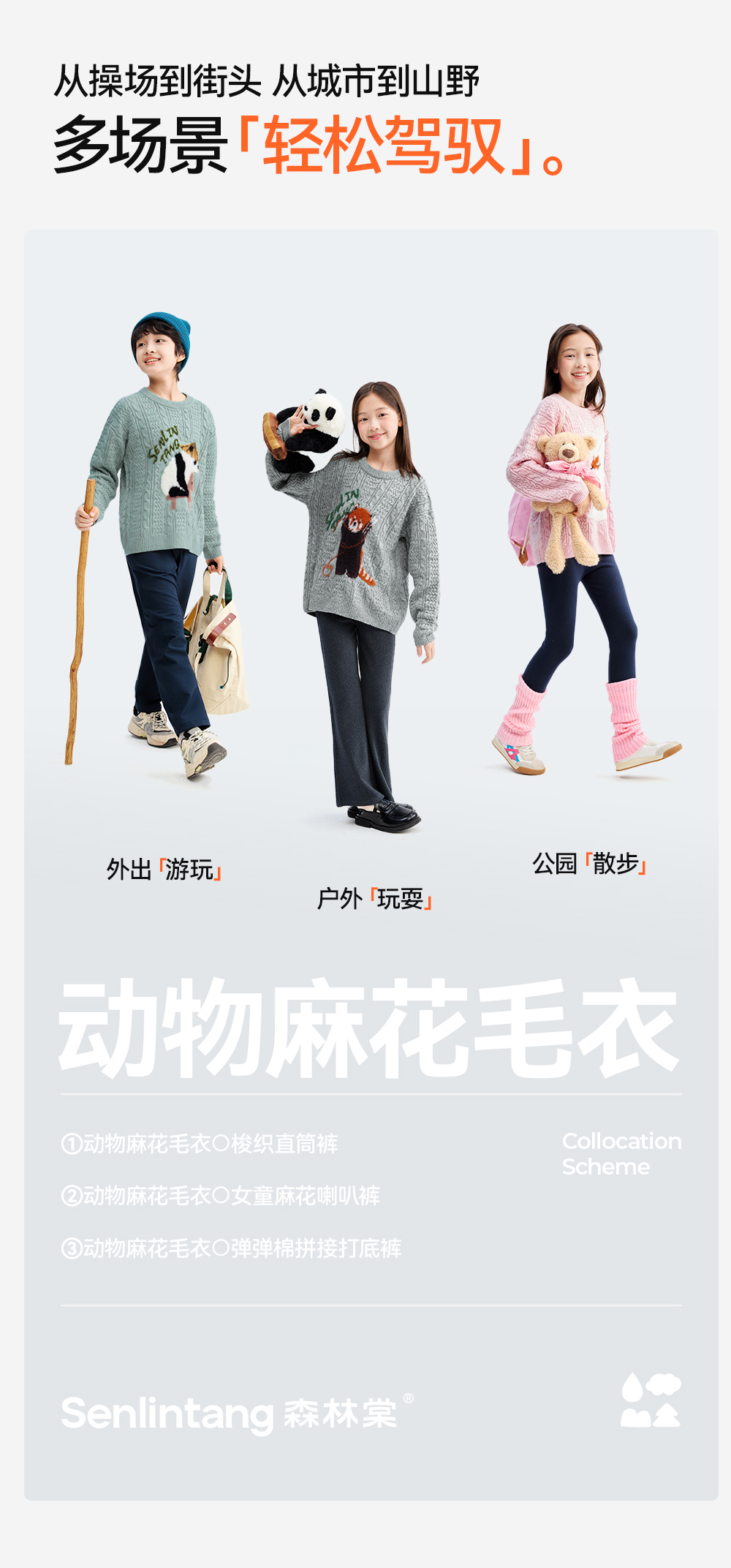 【动物麻花毛衣】森林棠25秋冬新款儿童彩色卡通图案柔软厚实针织毛衣80612506