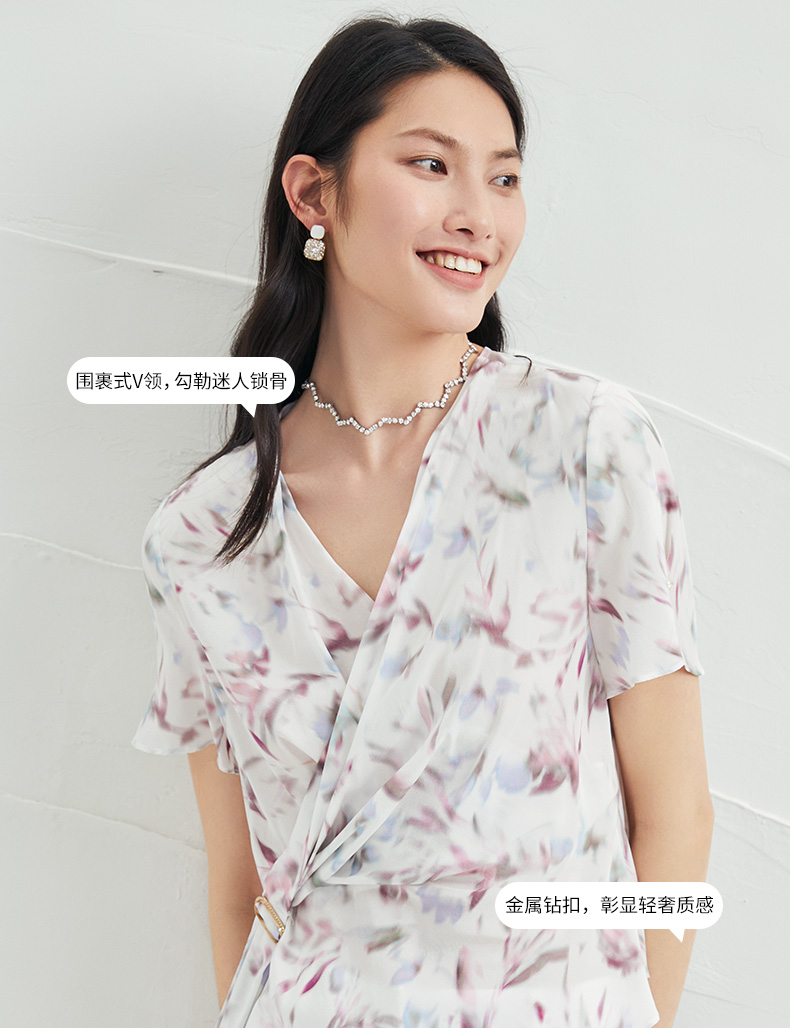 EITIE爱特爱女装早秋系领蕾丝镂空勾花喇叭袖大红连衣裙C1807150