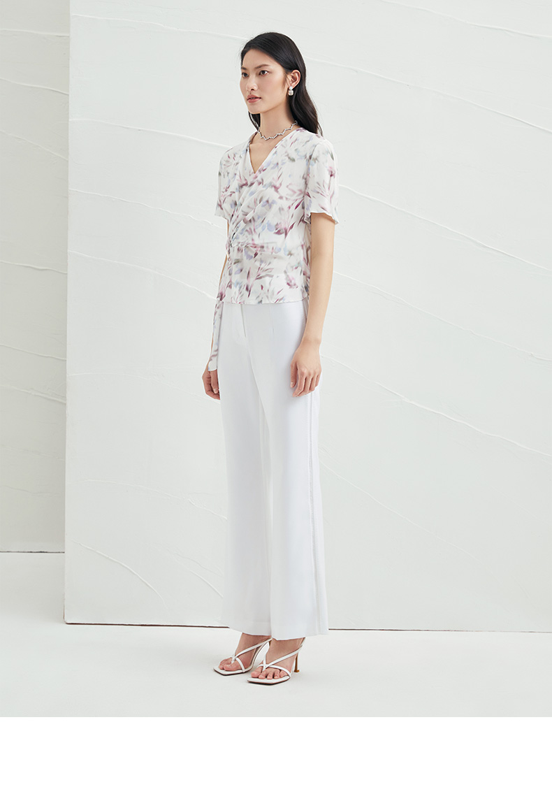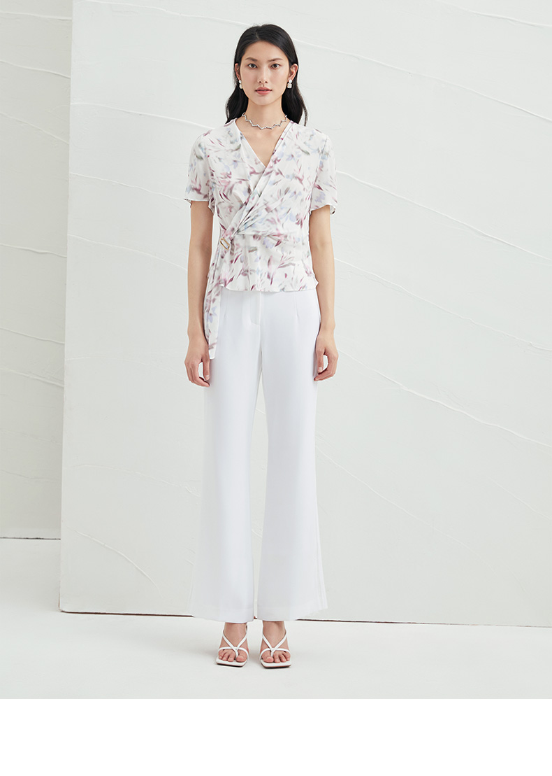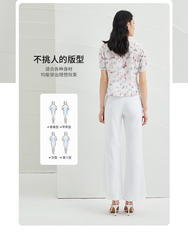 EITIE爱特爱春季新款高腰显瘦黑色微喇休闲裤女气质通勤时尚裤子A2205907