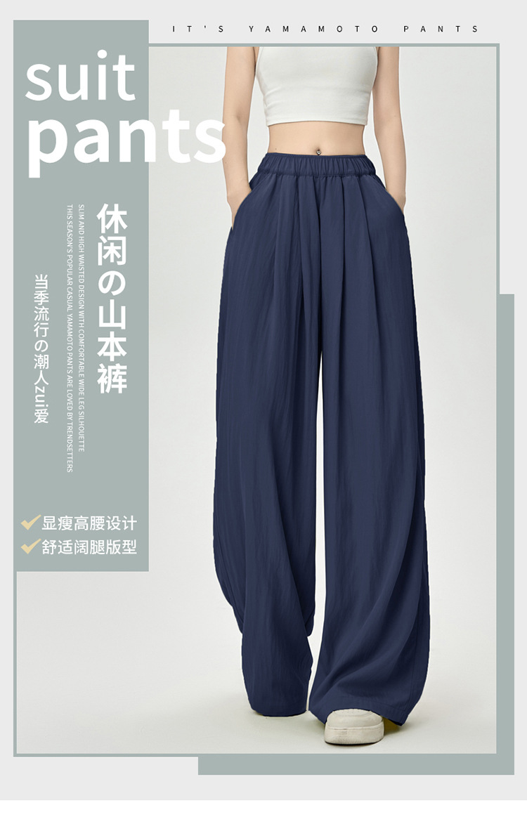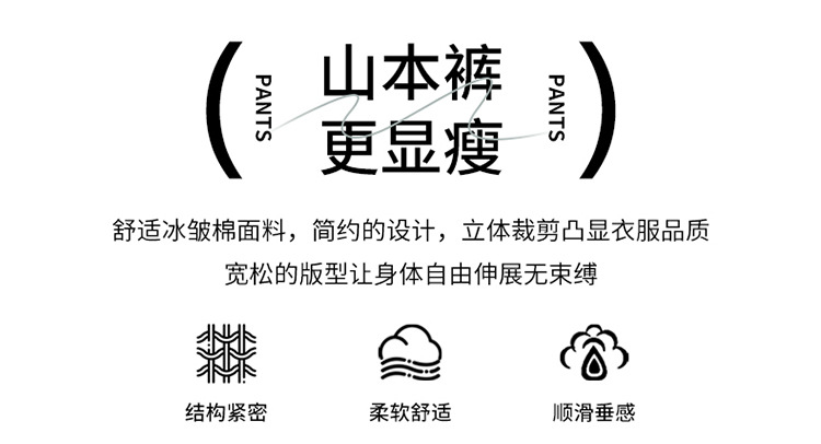 丁摩 冰丝阔腿裤女夏季薄款冰皱棉休闲山本裤禅意风垂感裤子5ZF-LSR