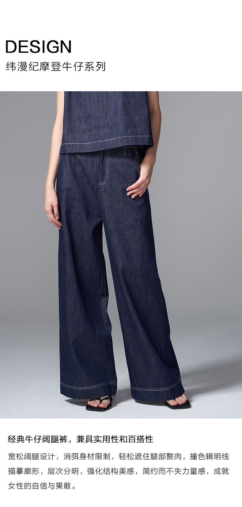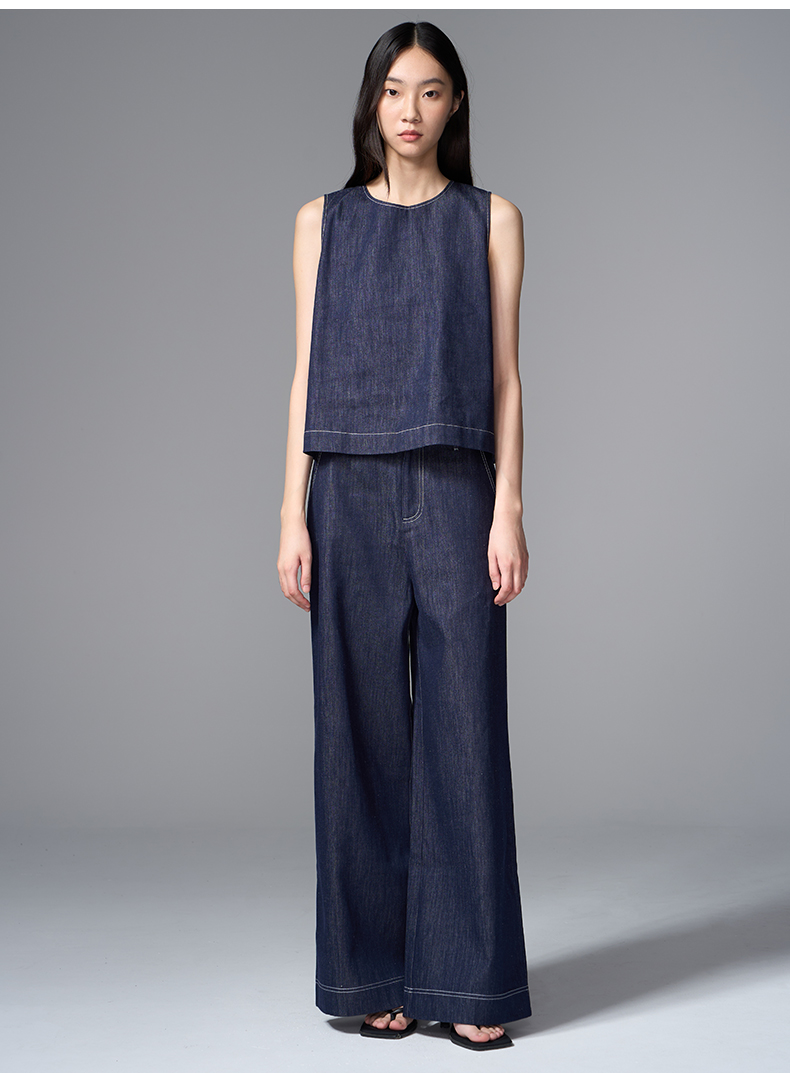 VIMAGE纬漫纪经典牛仔阔腿裤V2405103
