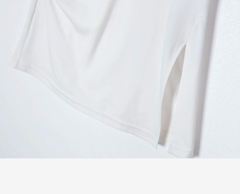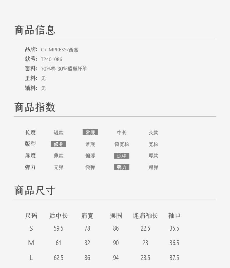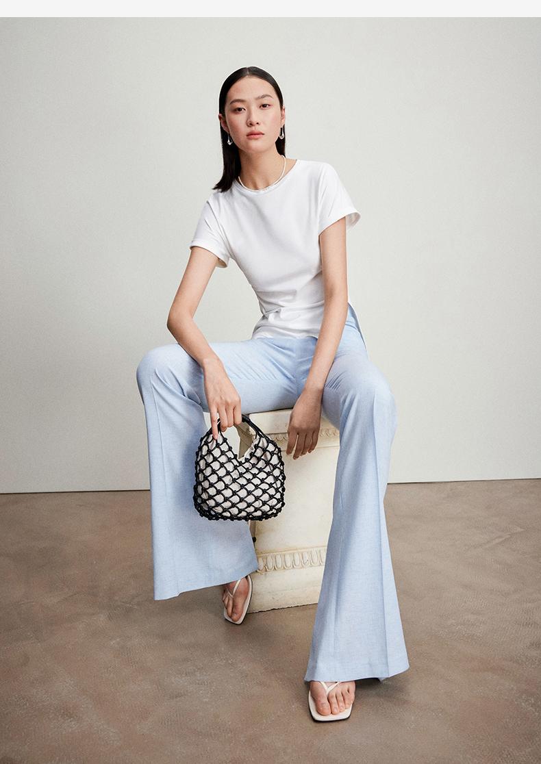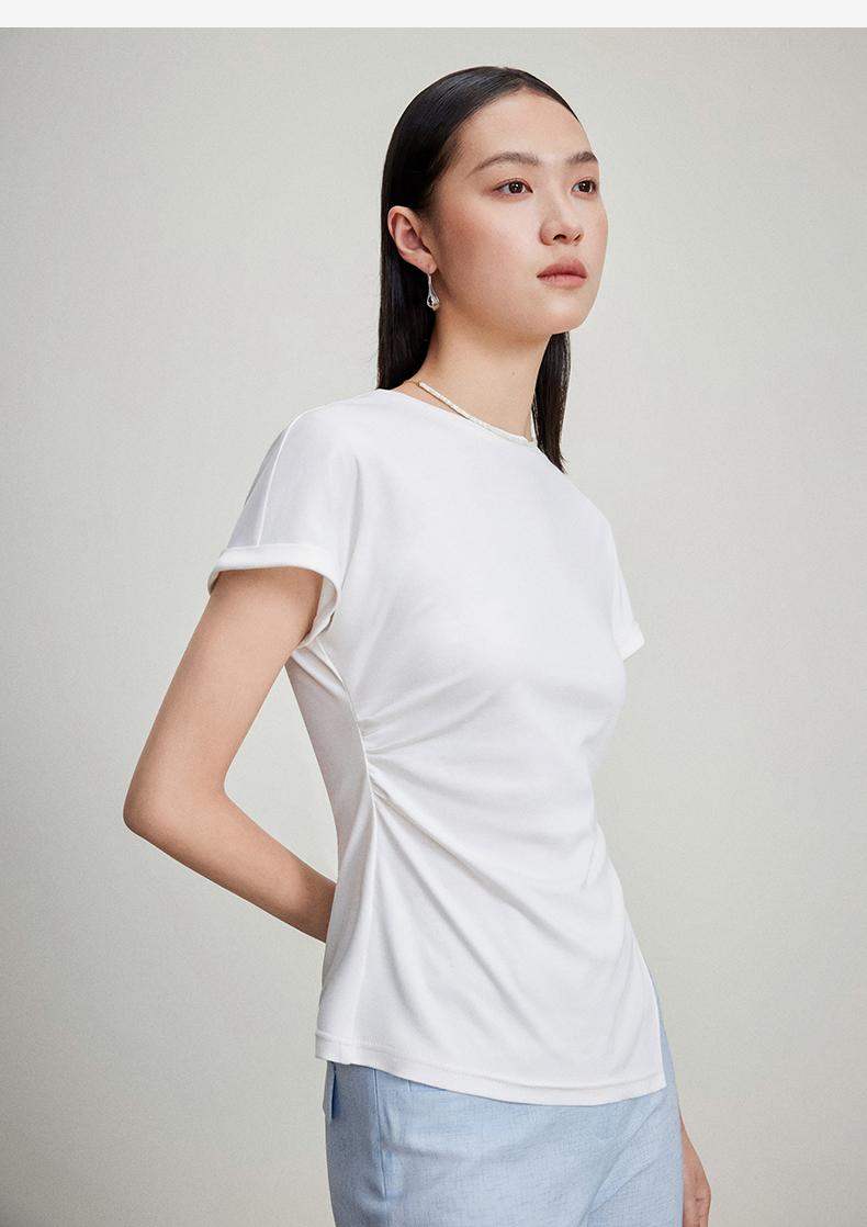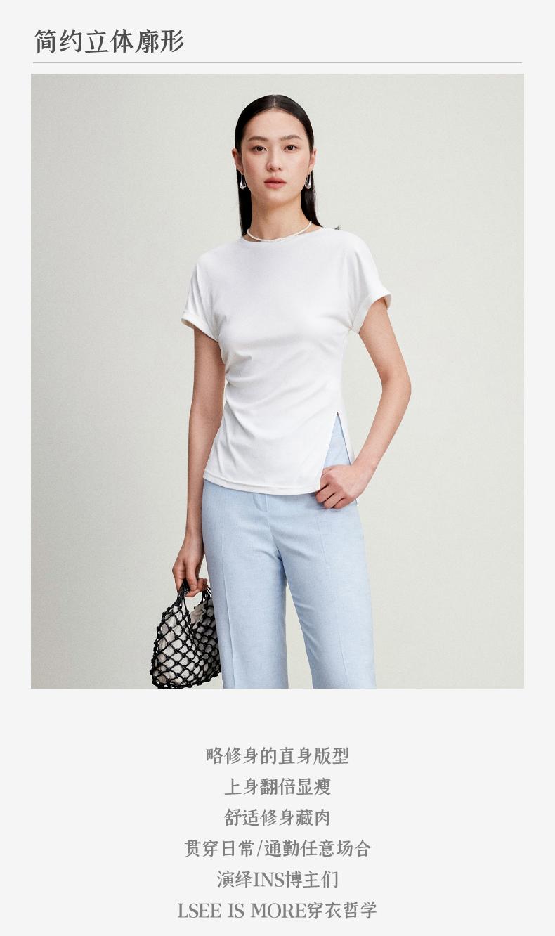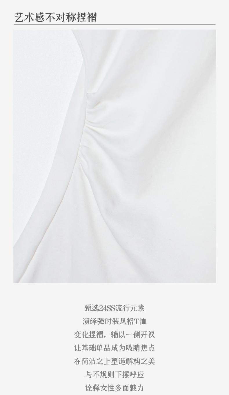 西嘉C+IMPRESS/西嘉时髦不对称侧开衩圆领短袖百搭显瘦高支醋酸棉T恤T2401086