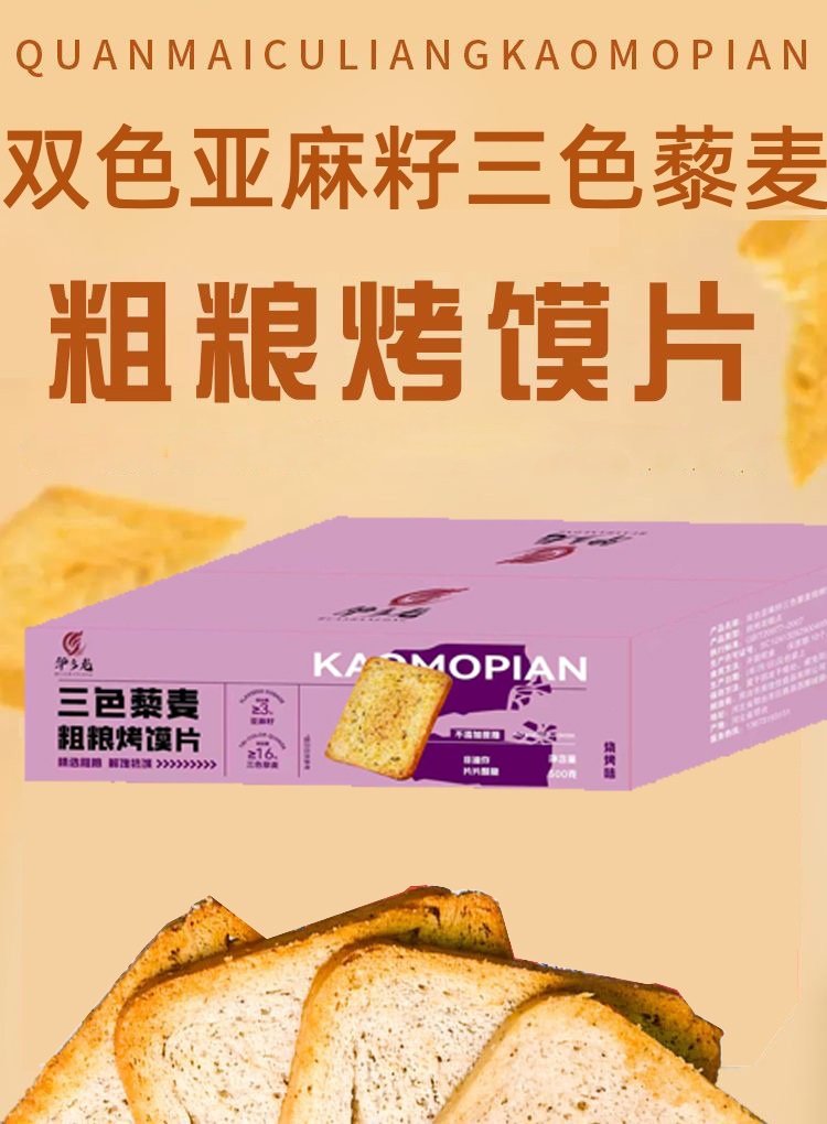 【4箱减10元】双色亚麻籽三色藜麦粗粮馍片 全麦粉+16%三色藜麦+3%双色奇亚籽 高蛋白质高膳食纤维 鲜香酥脆 营养美味 烧烤味 500克/箱