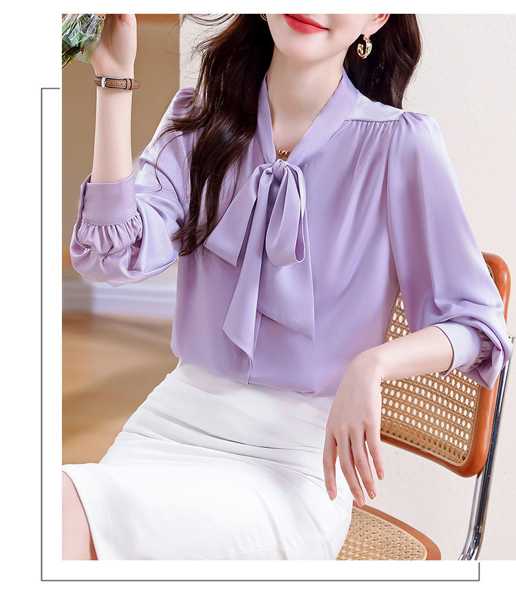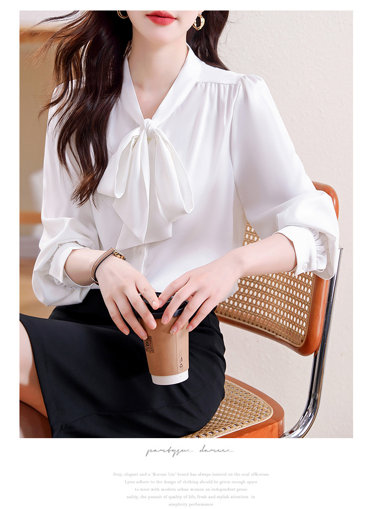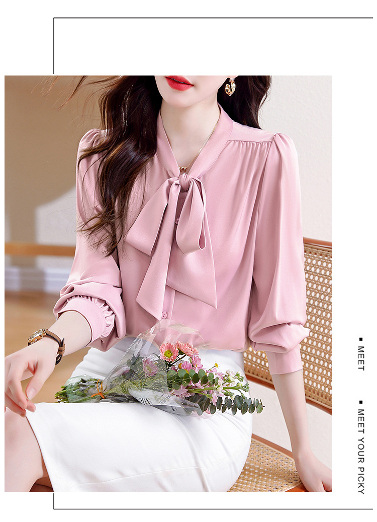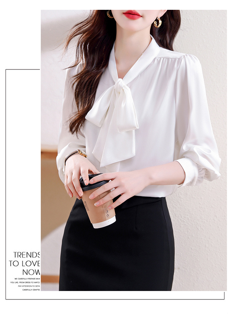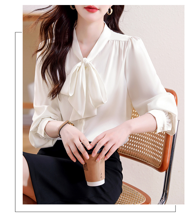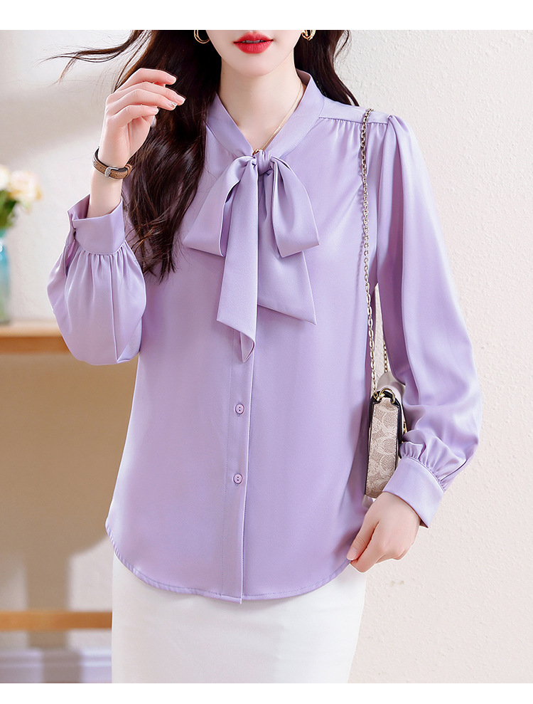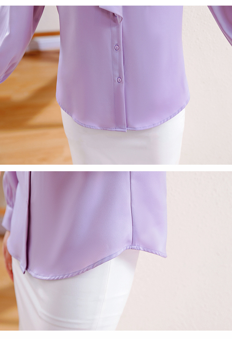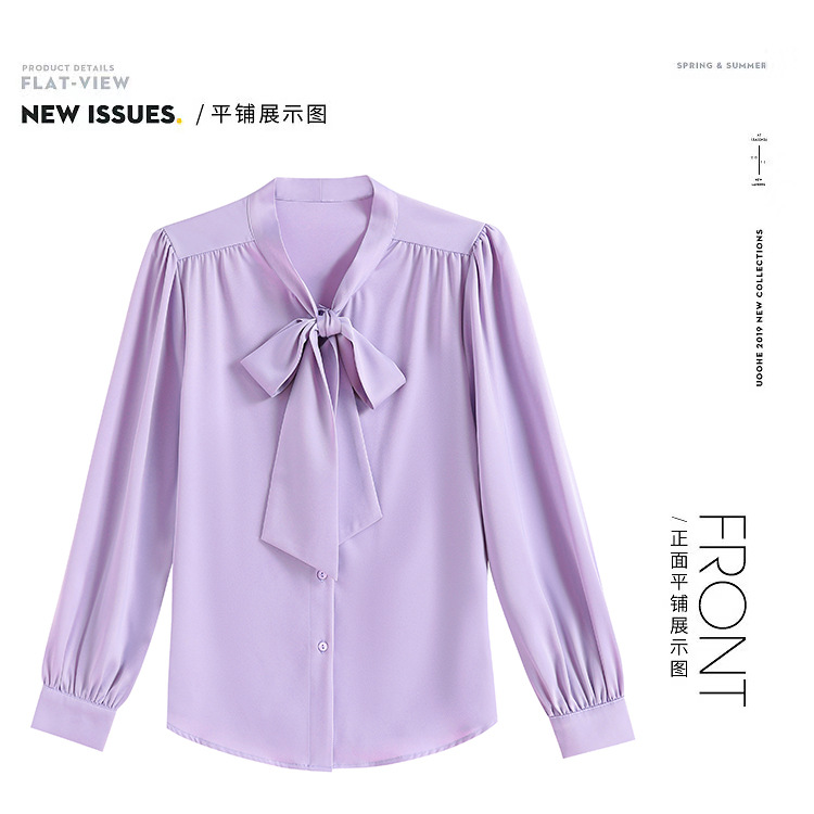 KQL现货时尚韩版系带衬衣2025春季新款休闲缎面OL通勤单排扣职业衬衫