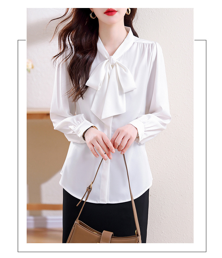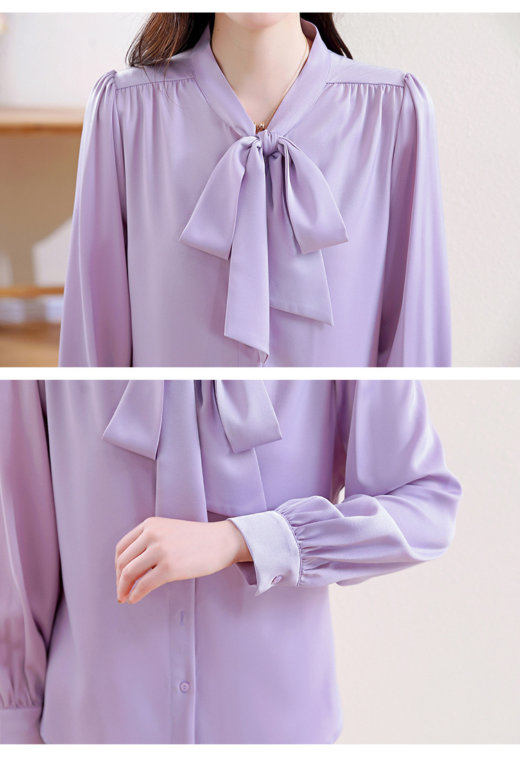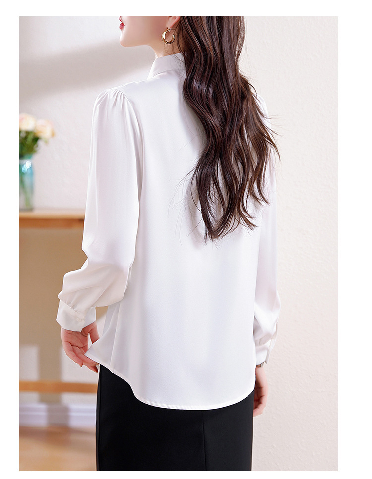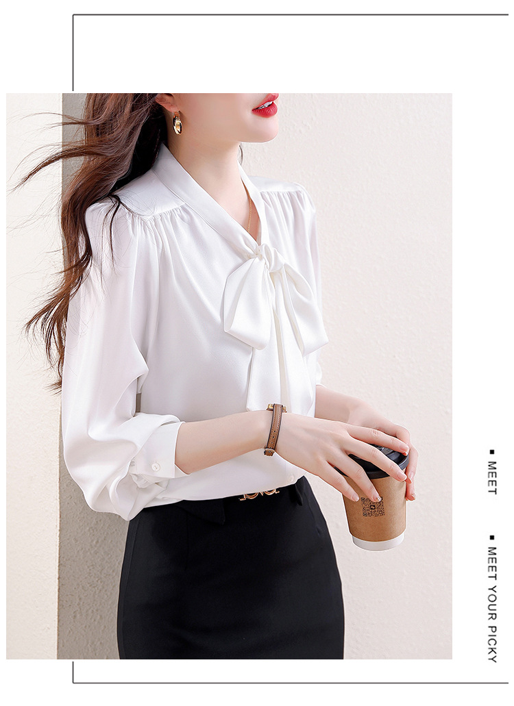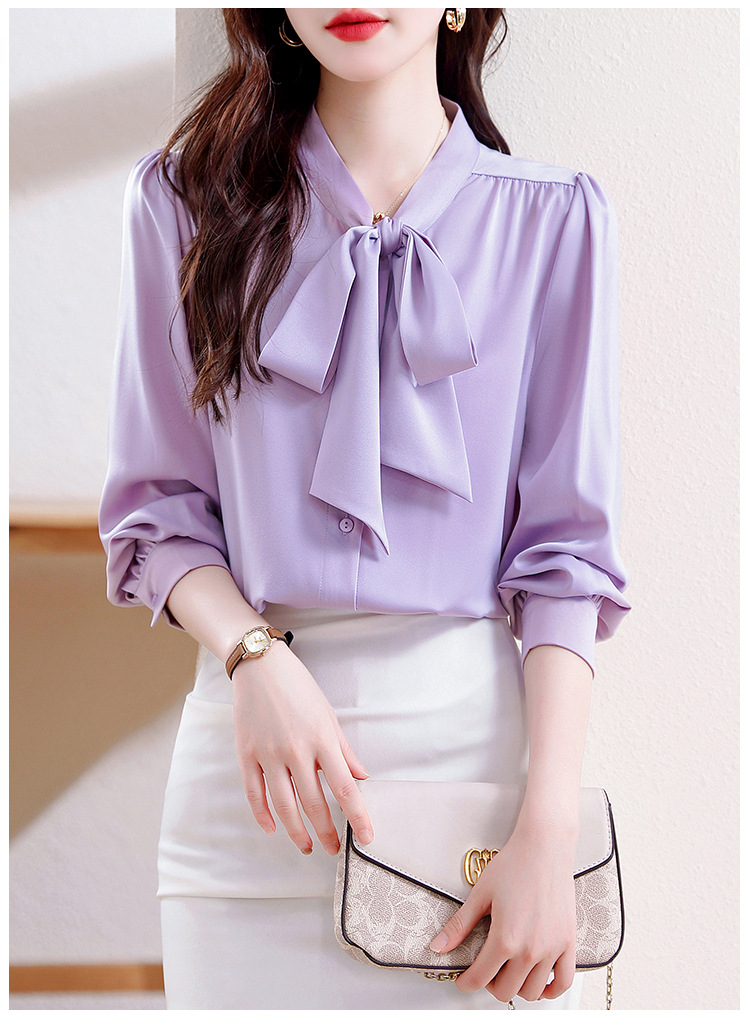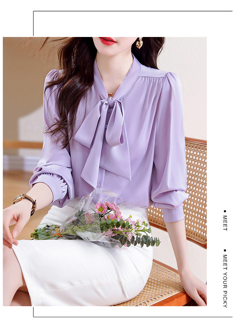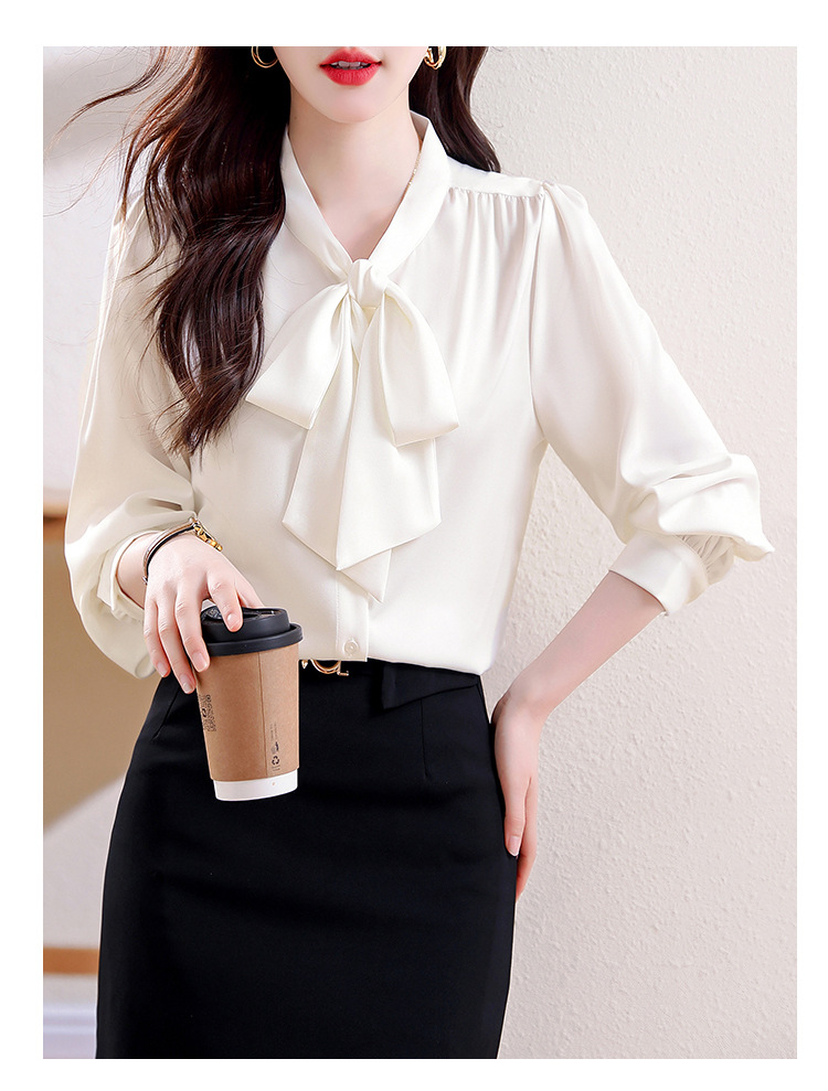 KQL现货时尚韩版系带衬衣2025春季新款休闲缎面OL通勤单排扣职业衬衫