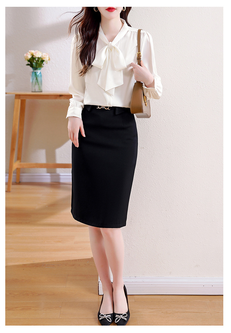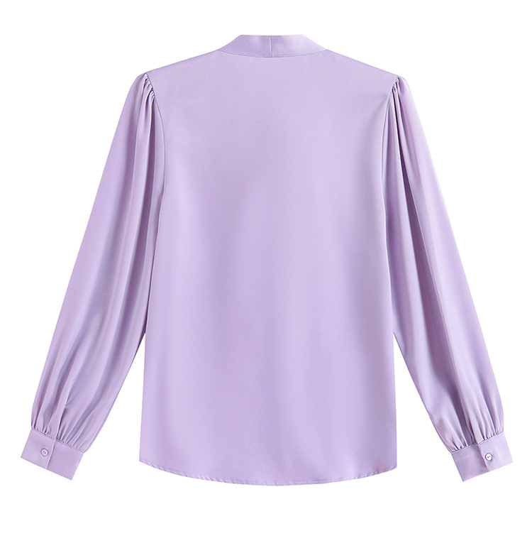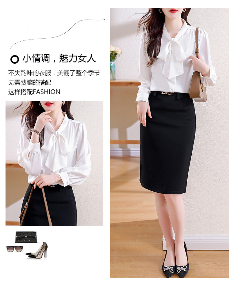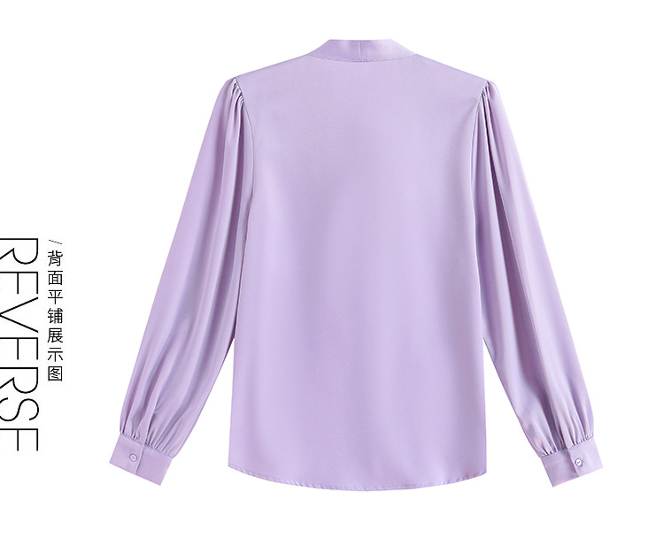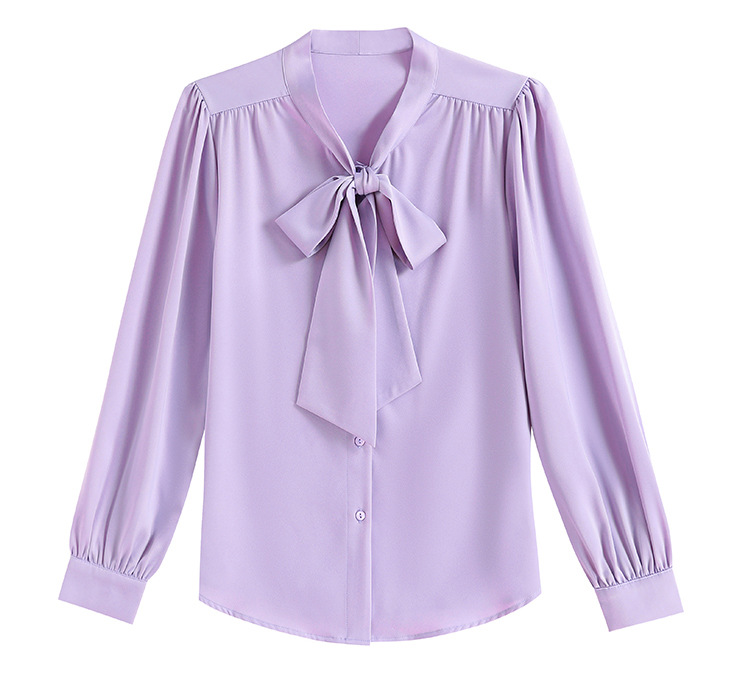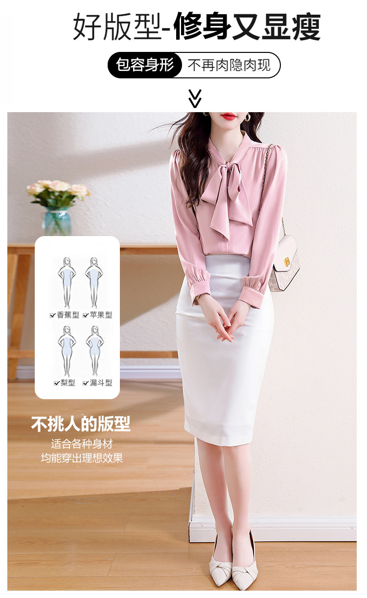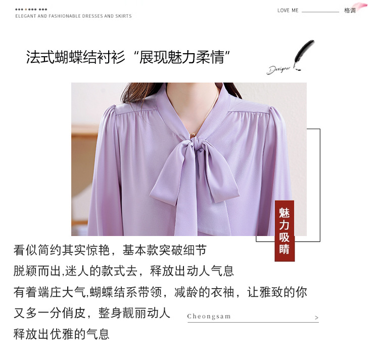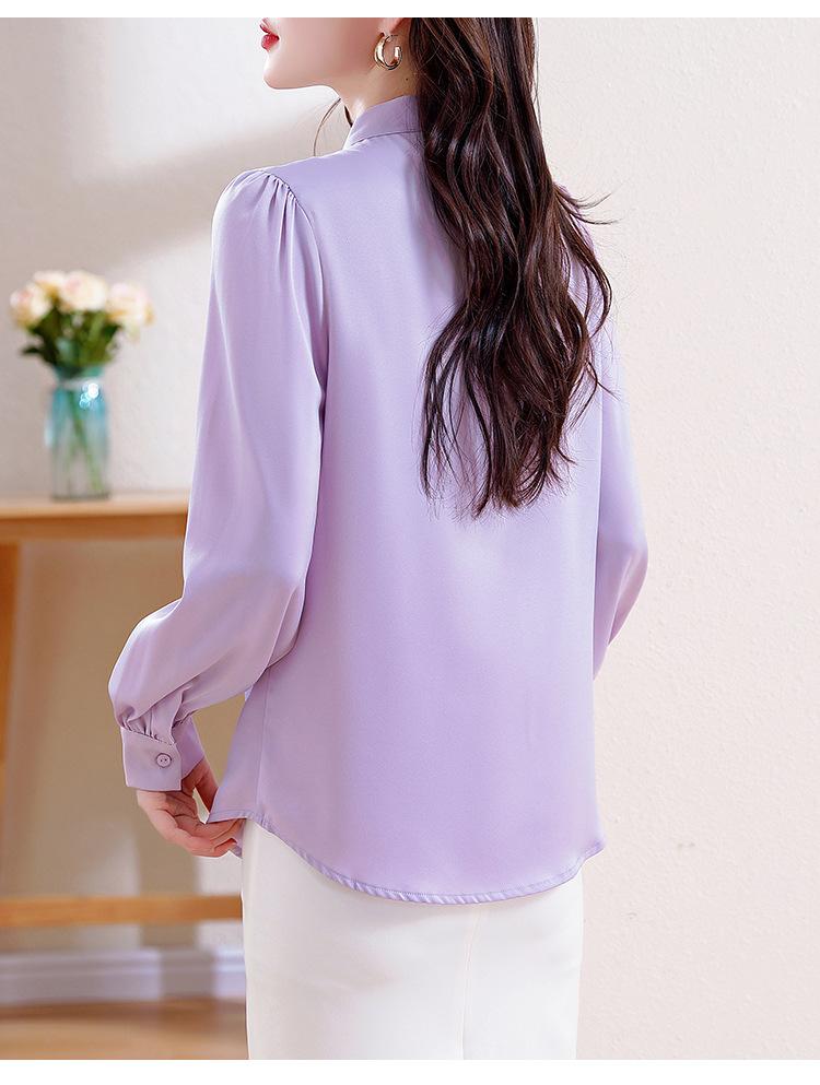 KQL现货时尚韩版系带衬衣2025春季新款休闲缎面OL通勤单排扣职业衬衫