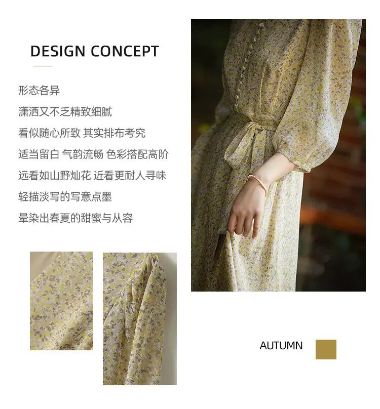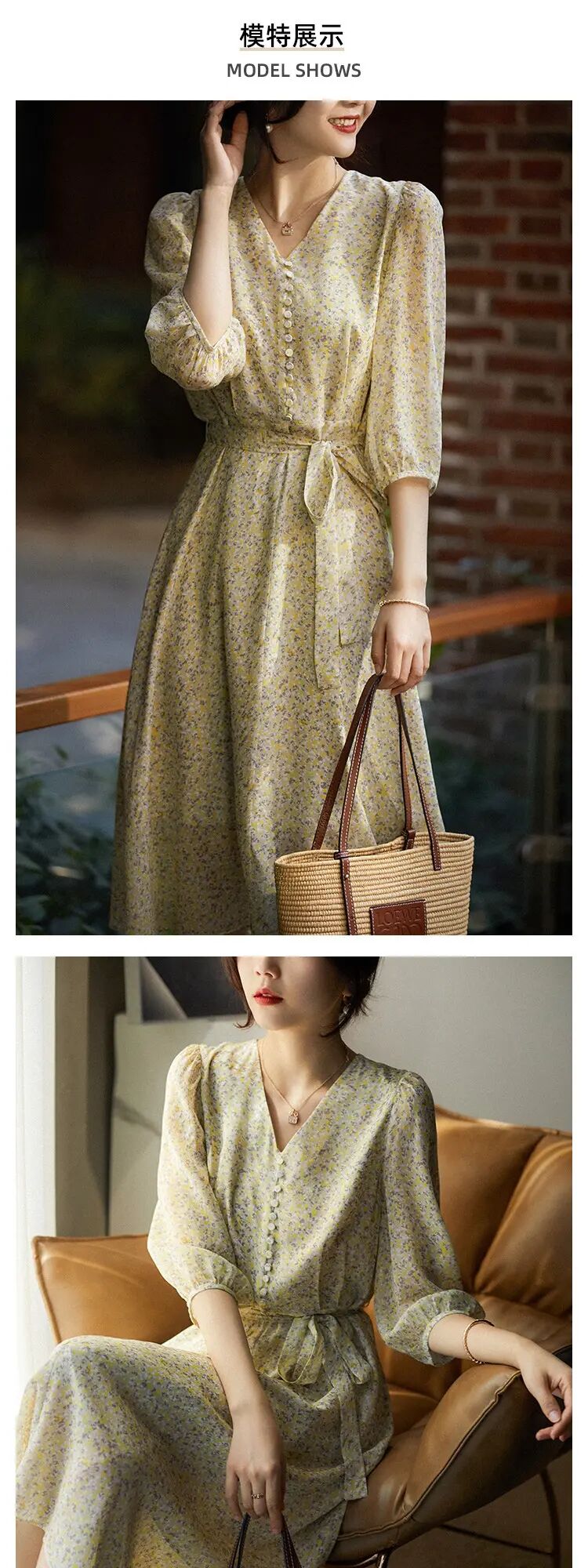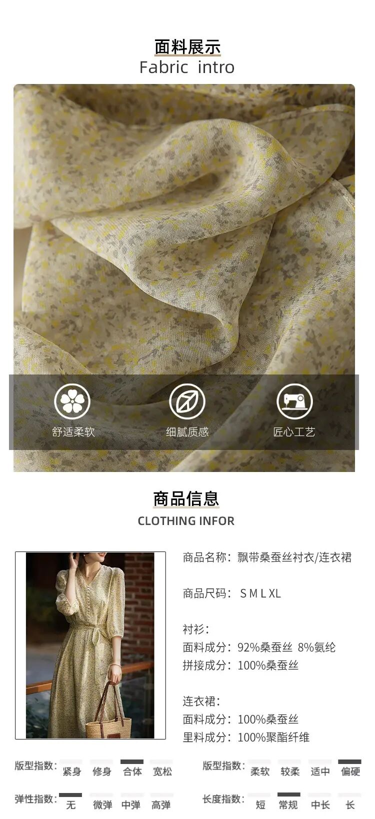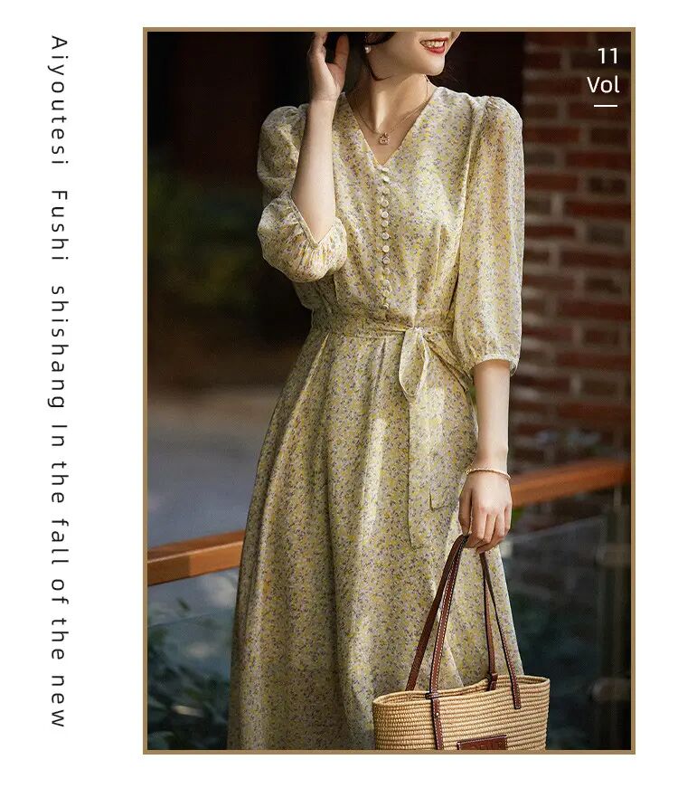 【高货ayts】全新升级【铂金会员431/天猫579/差价148】(12153) 洛诗琳25春季桔梗裙中长款飘带收腰桑蚕丝碎花连衣裙
