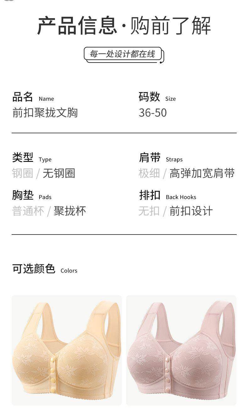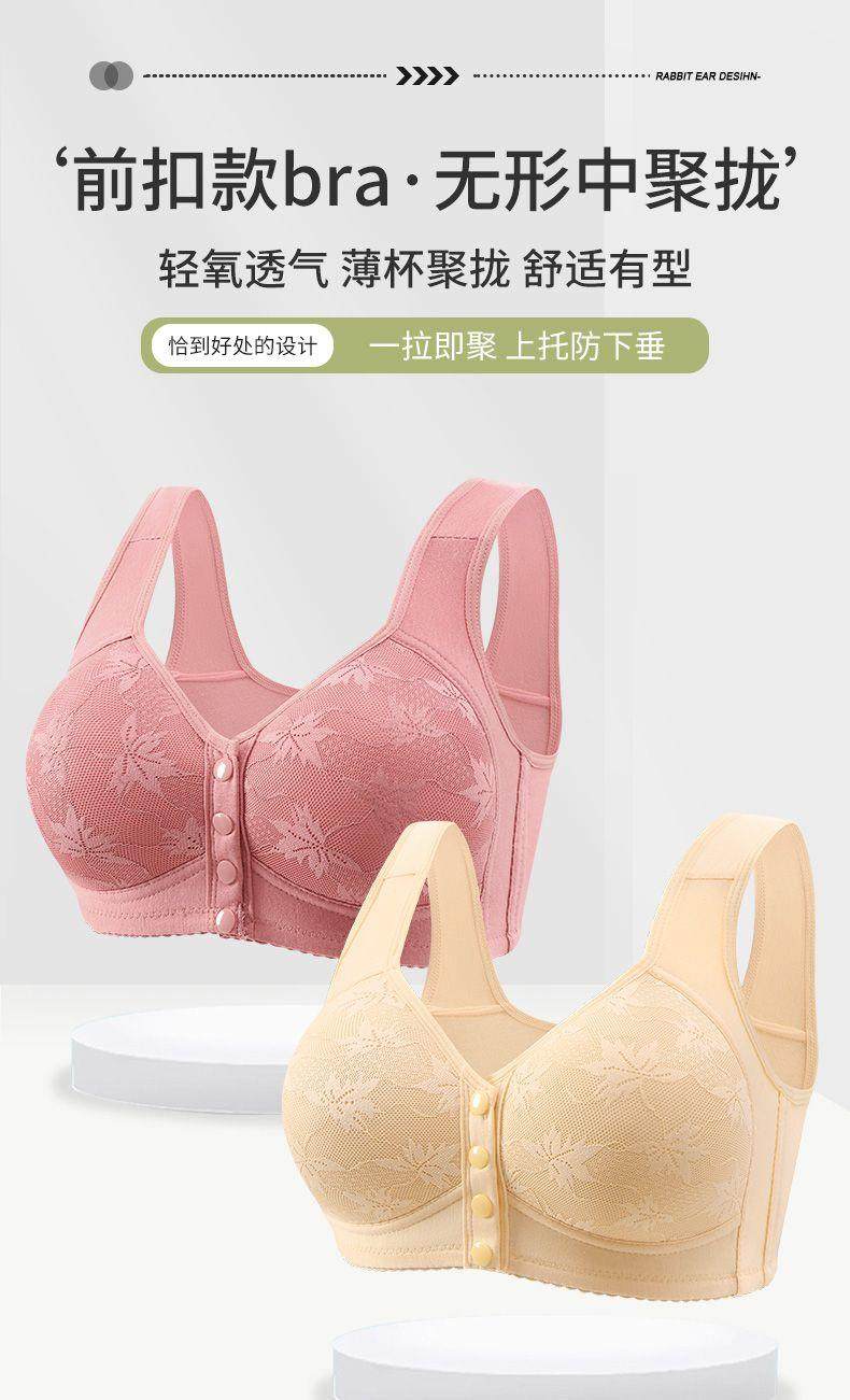 A609中老年棉前开扣薄款美背心无痕妈妈聚拢无钢圈舒适文胸罩内衣女