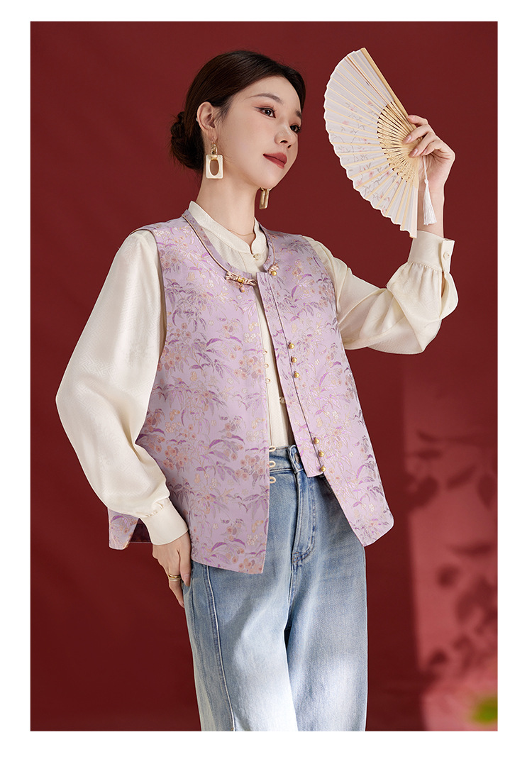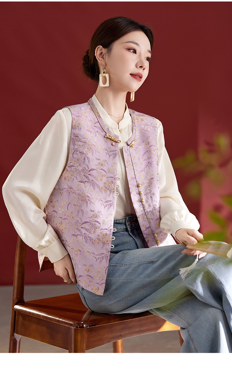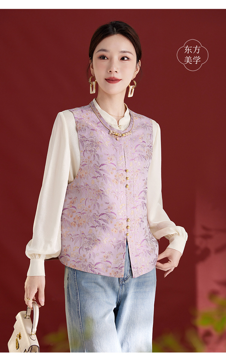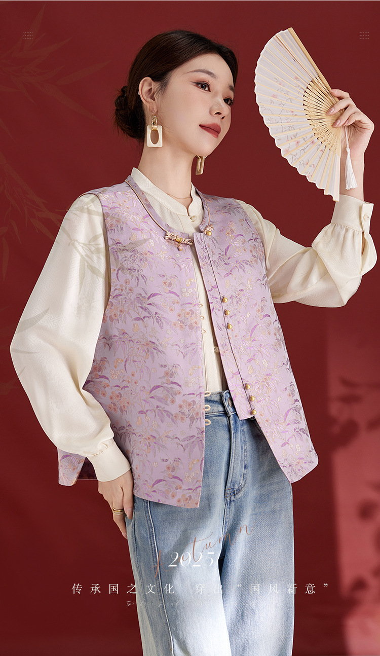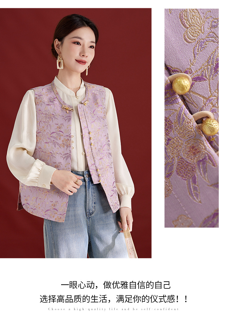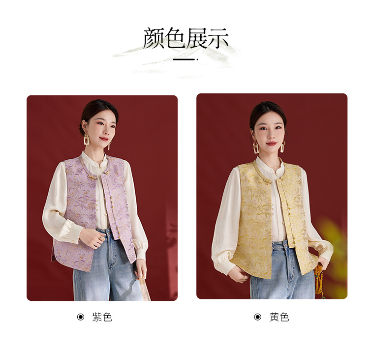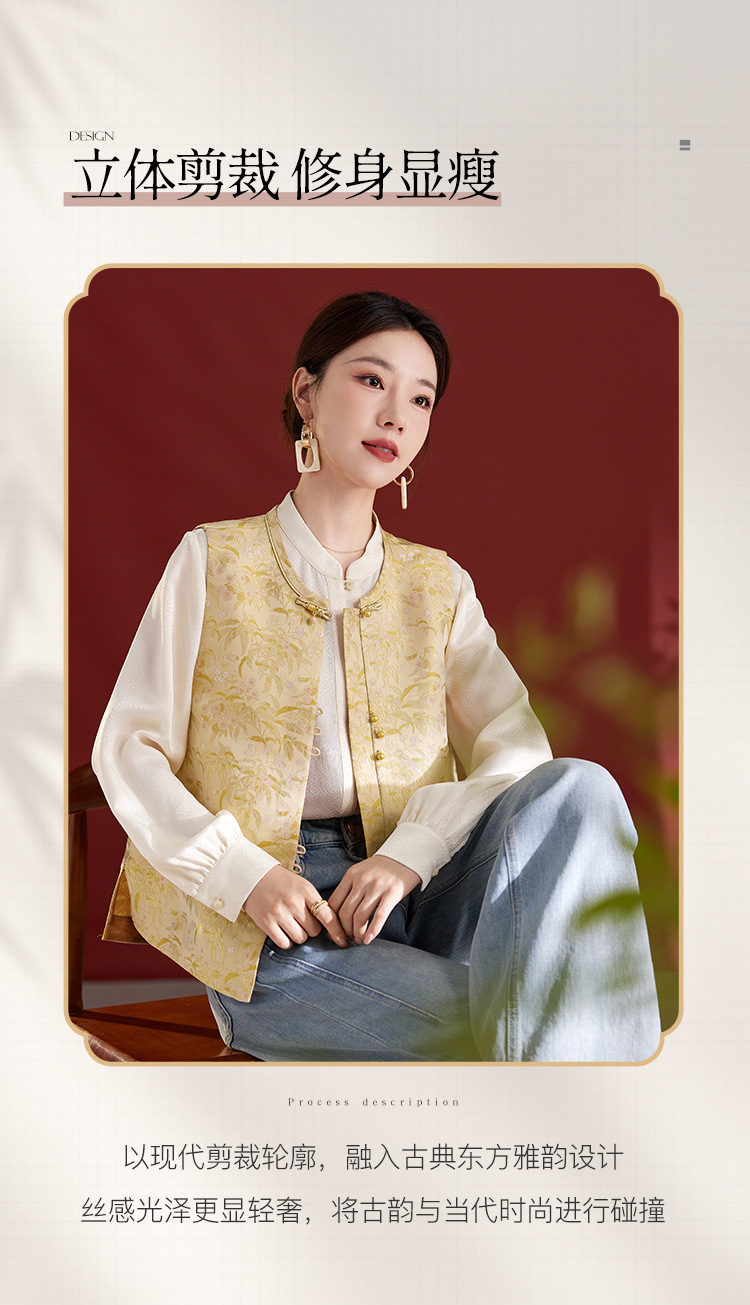 QS新中式个性提花盘扣桑蚕丝马甲女装显瘦遮肉2025秋季新款气质1321