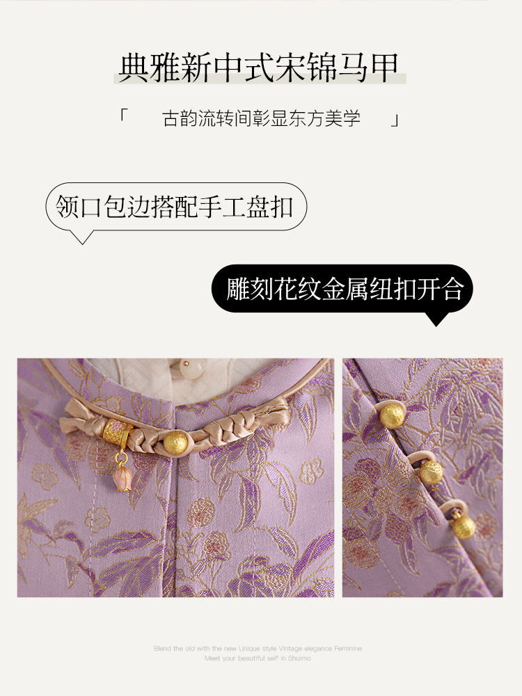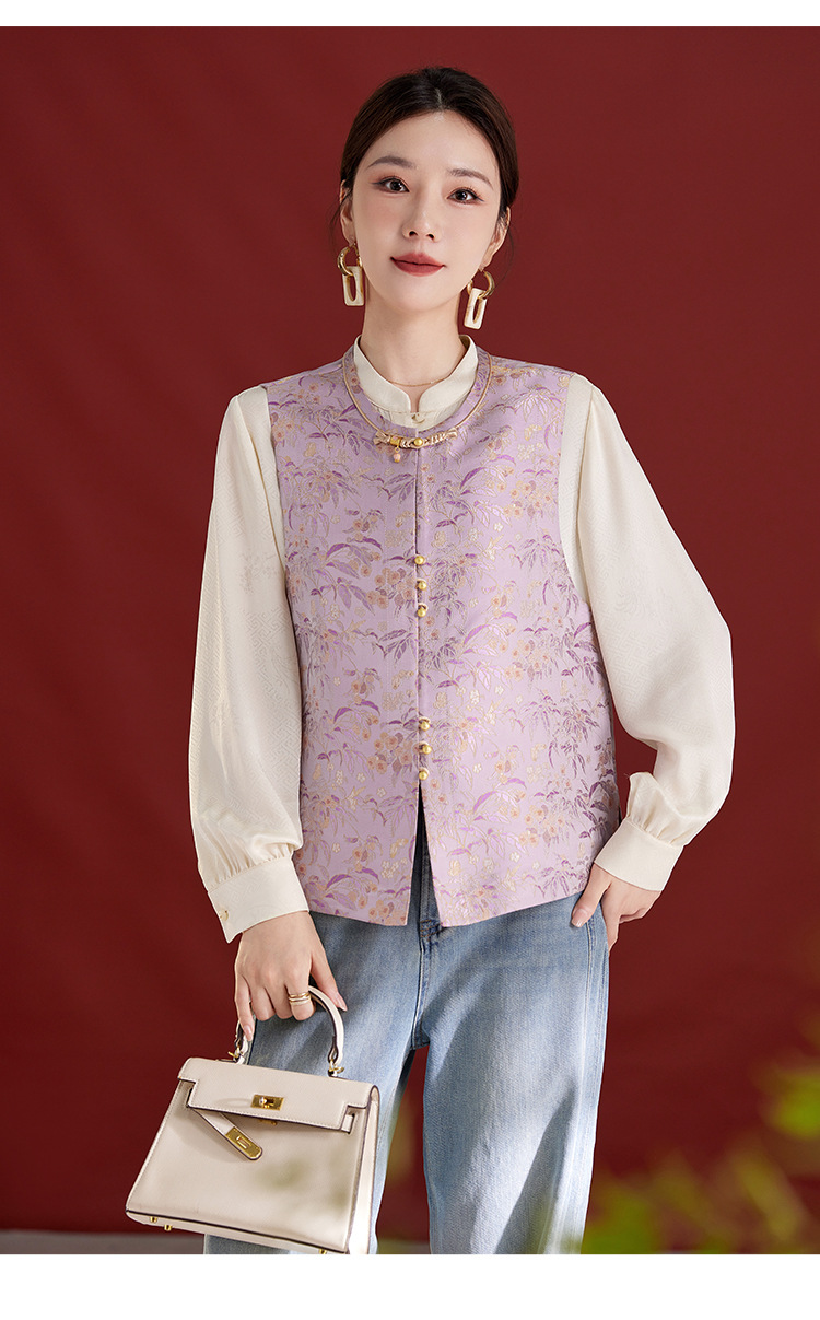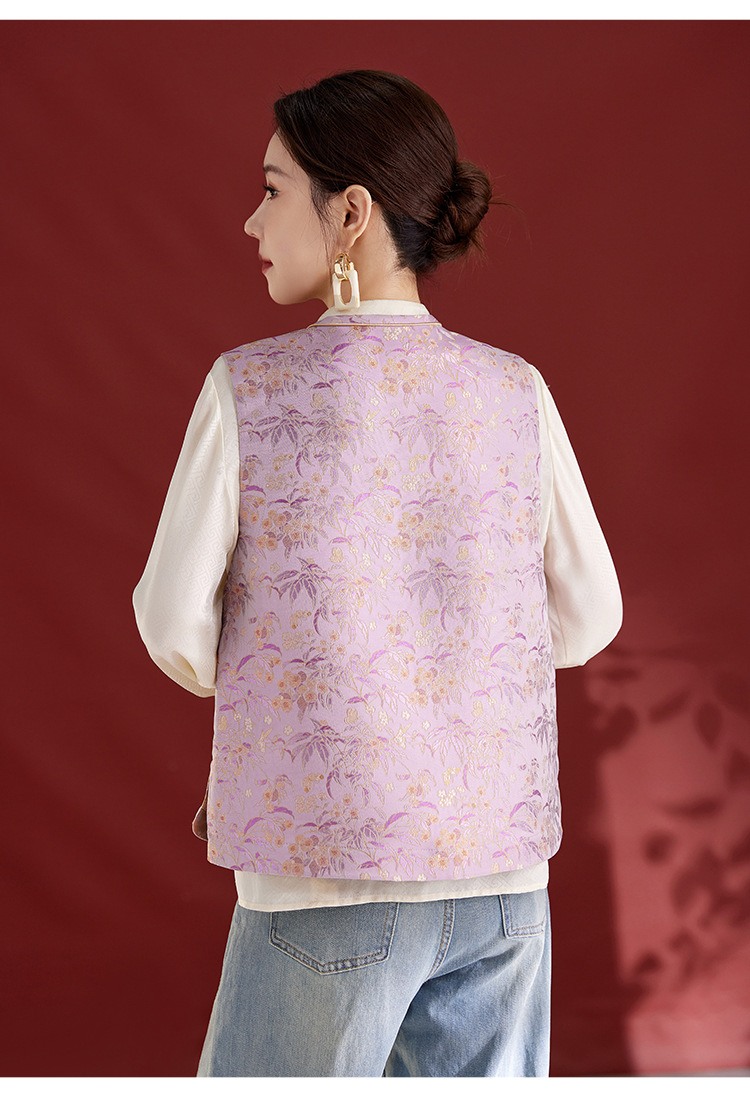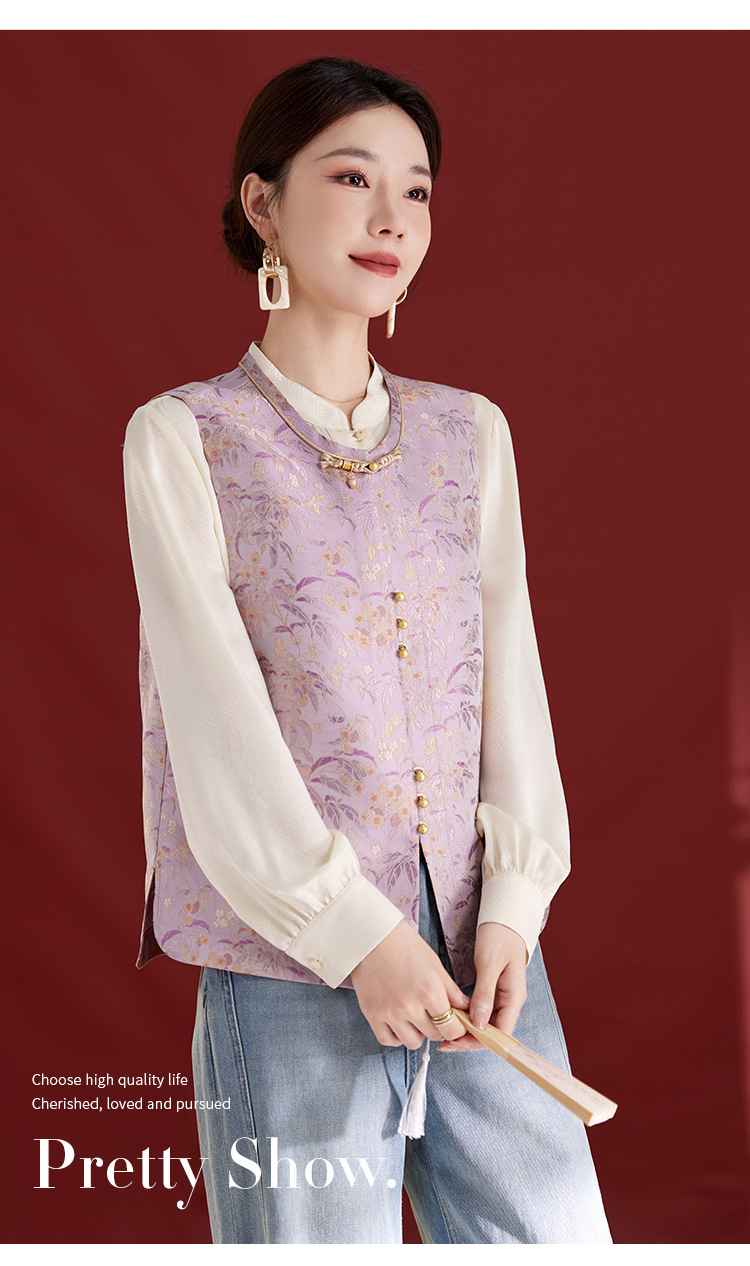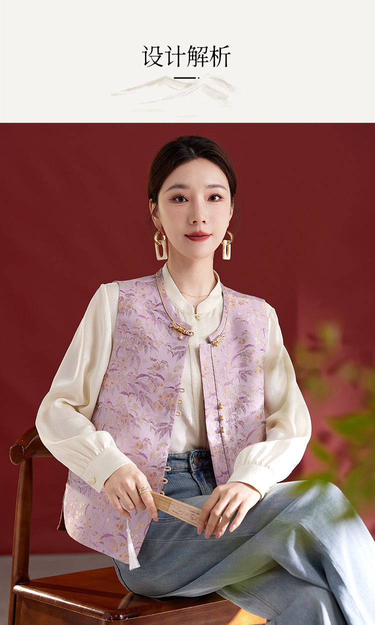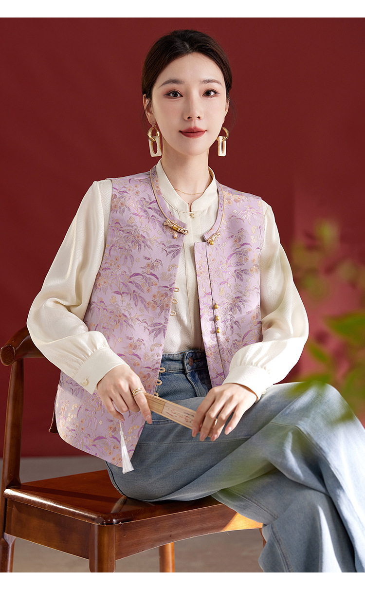 QS新中式个性提花盘扣桑蚕丝马甲女装显瘦遮肉2025秋季新款气质1321