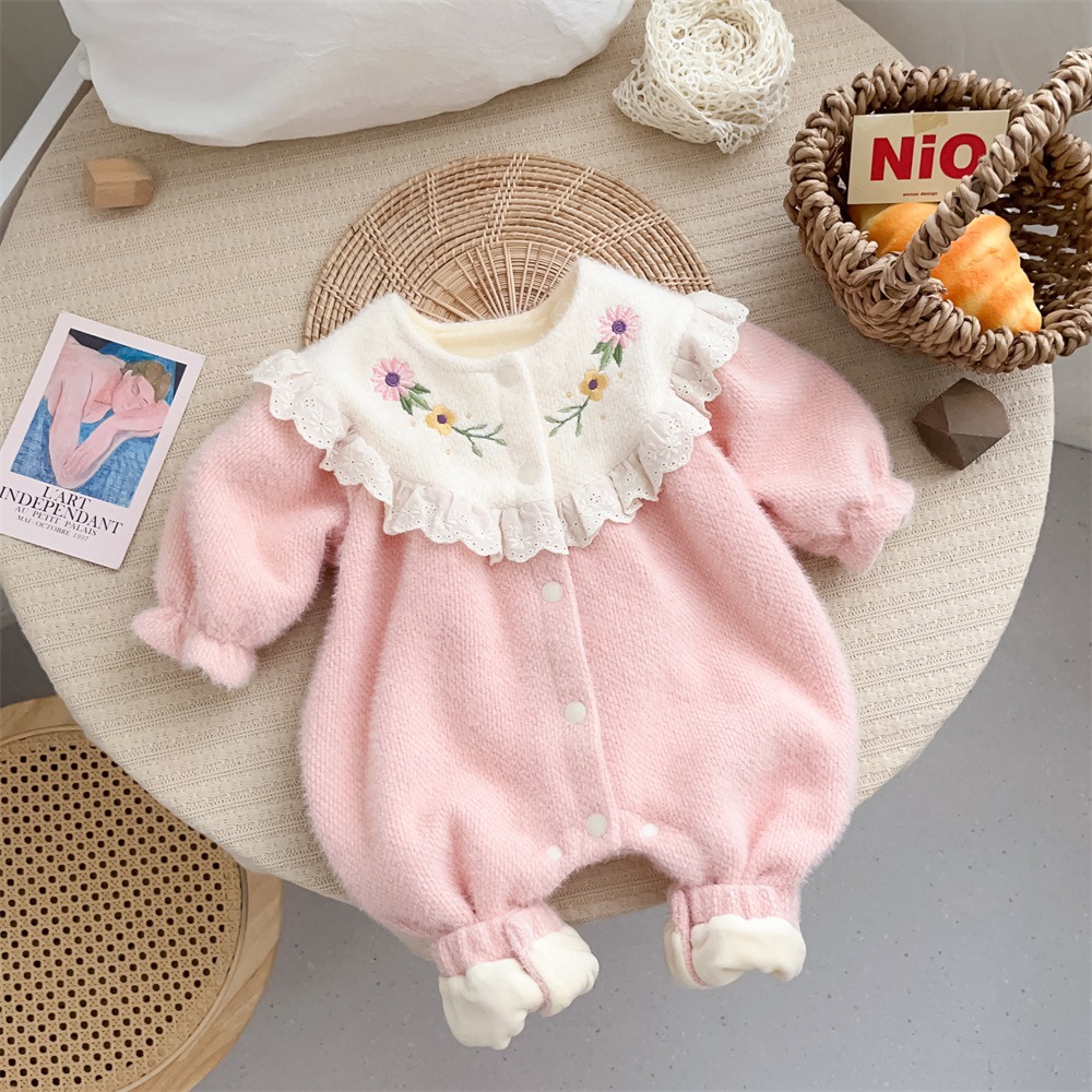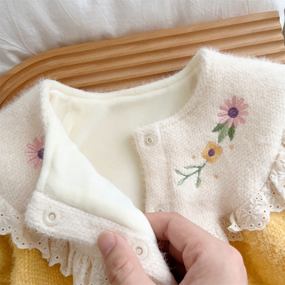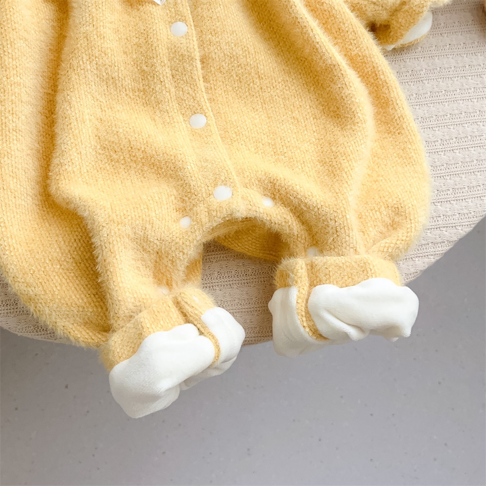 【韩版潮范加绒爬服!尽显宝宝秋冬萌趣可耐】婴儿冬季外出服韩版加绒加厚包屁衣女宝宝秋冬保暖毛衣外出爬爬服。ha