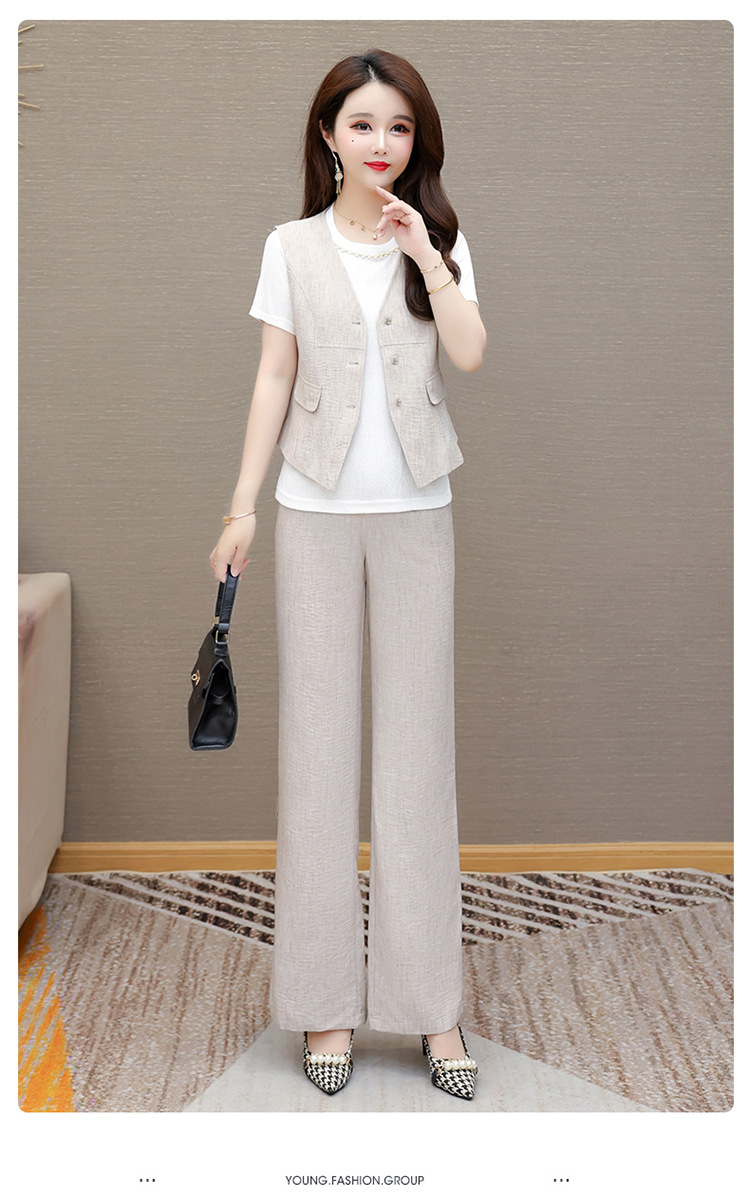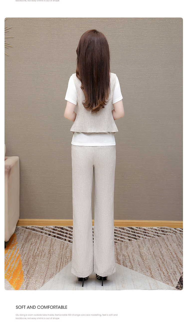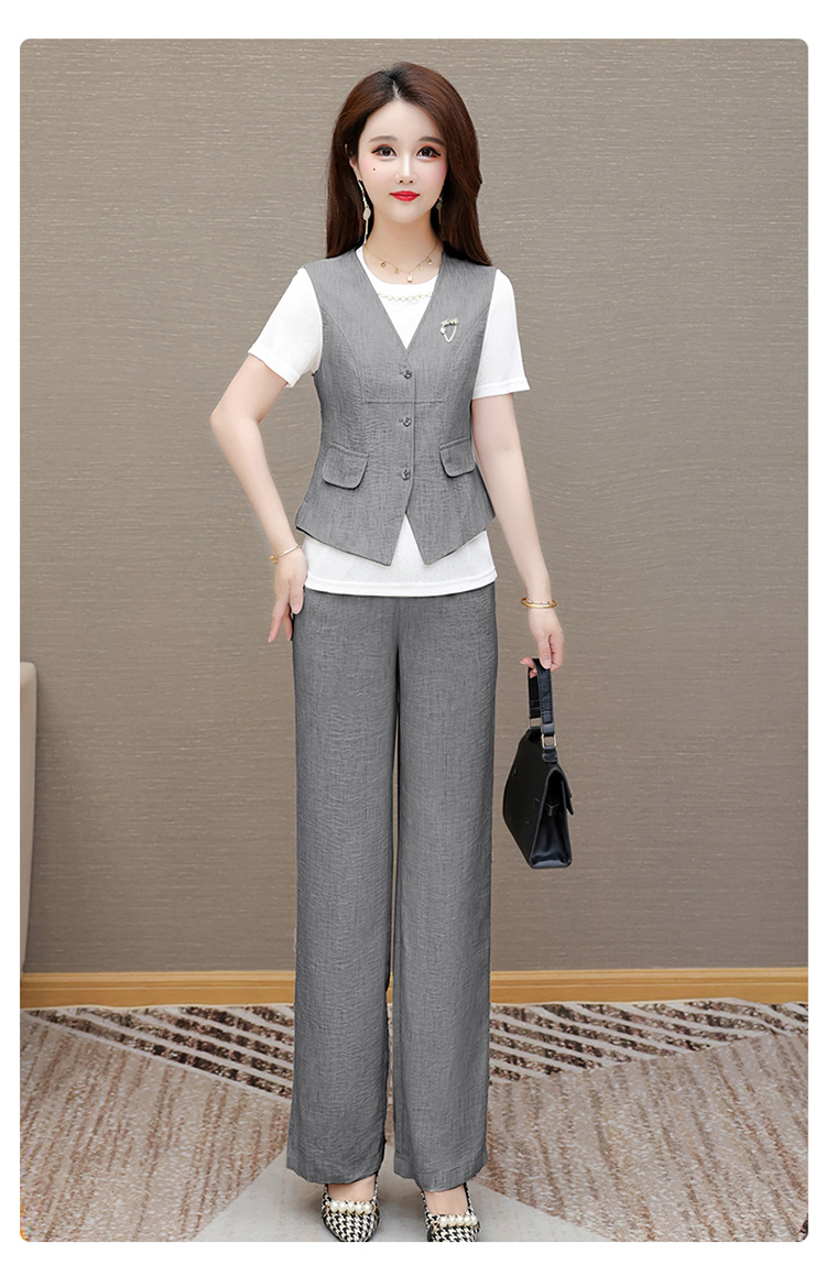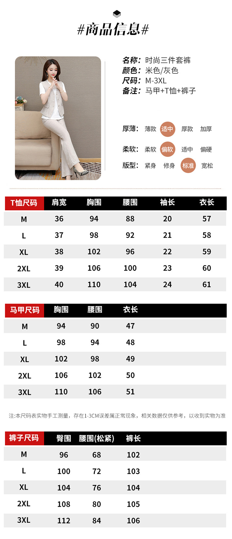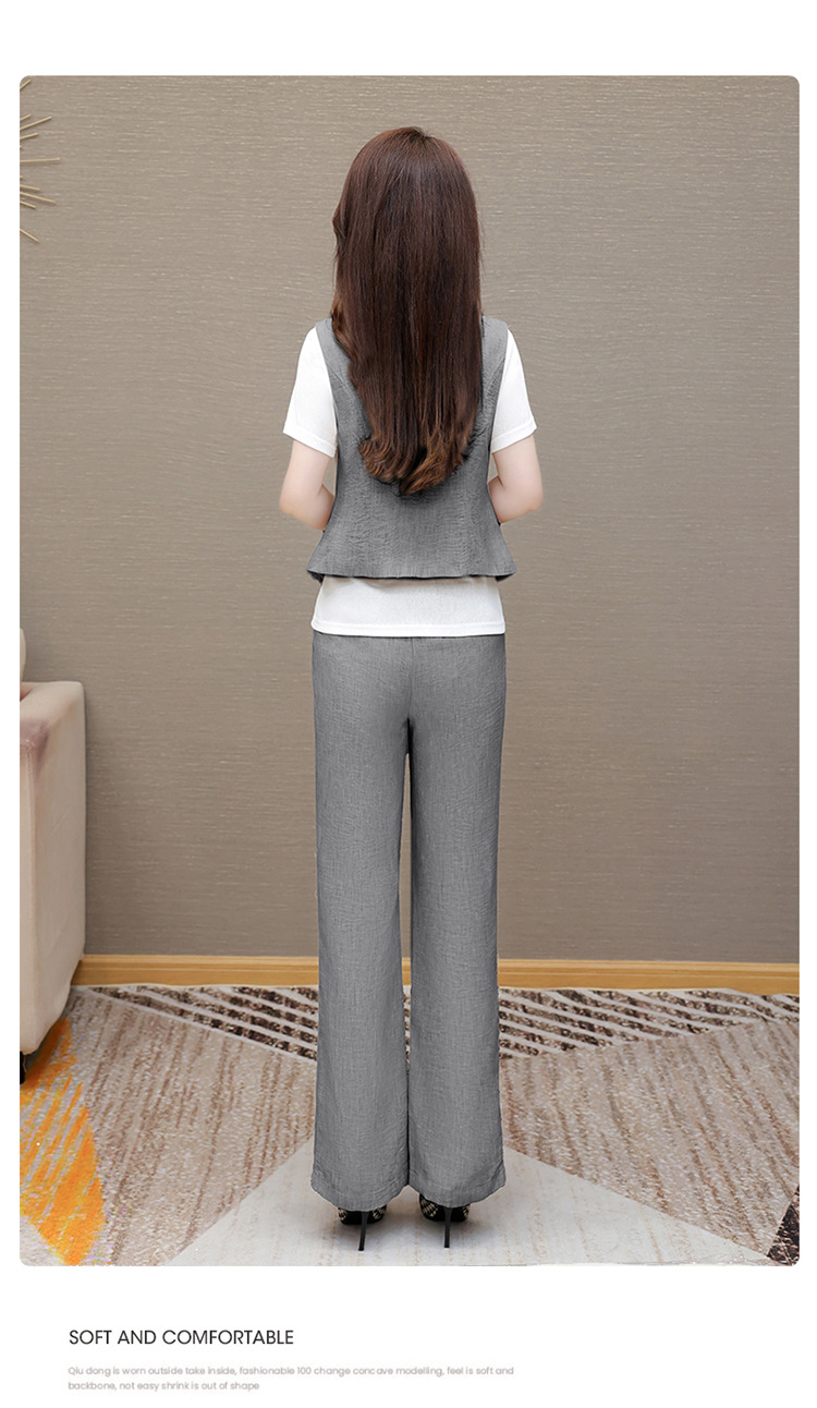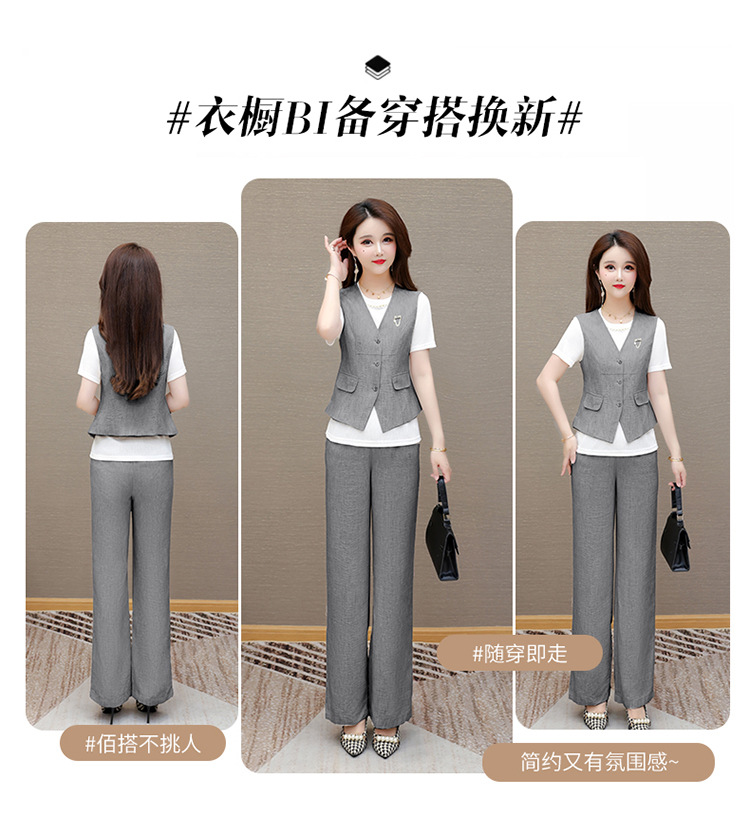 QYMAH-5169YX37-L2025年夏款短袖内搭T恤衫通勤修身显瘦马甲垂感直筒阔腿裤三件套 商品图1