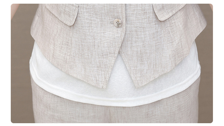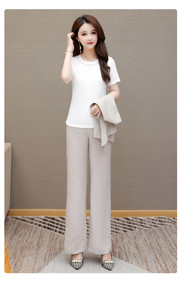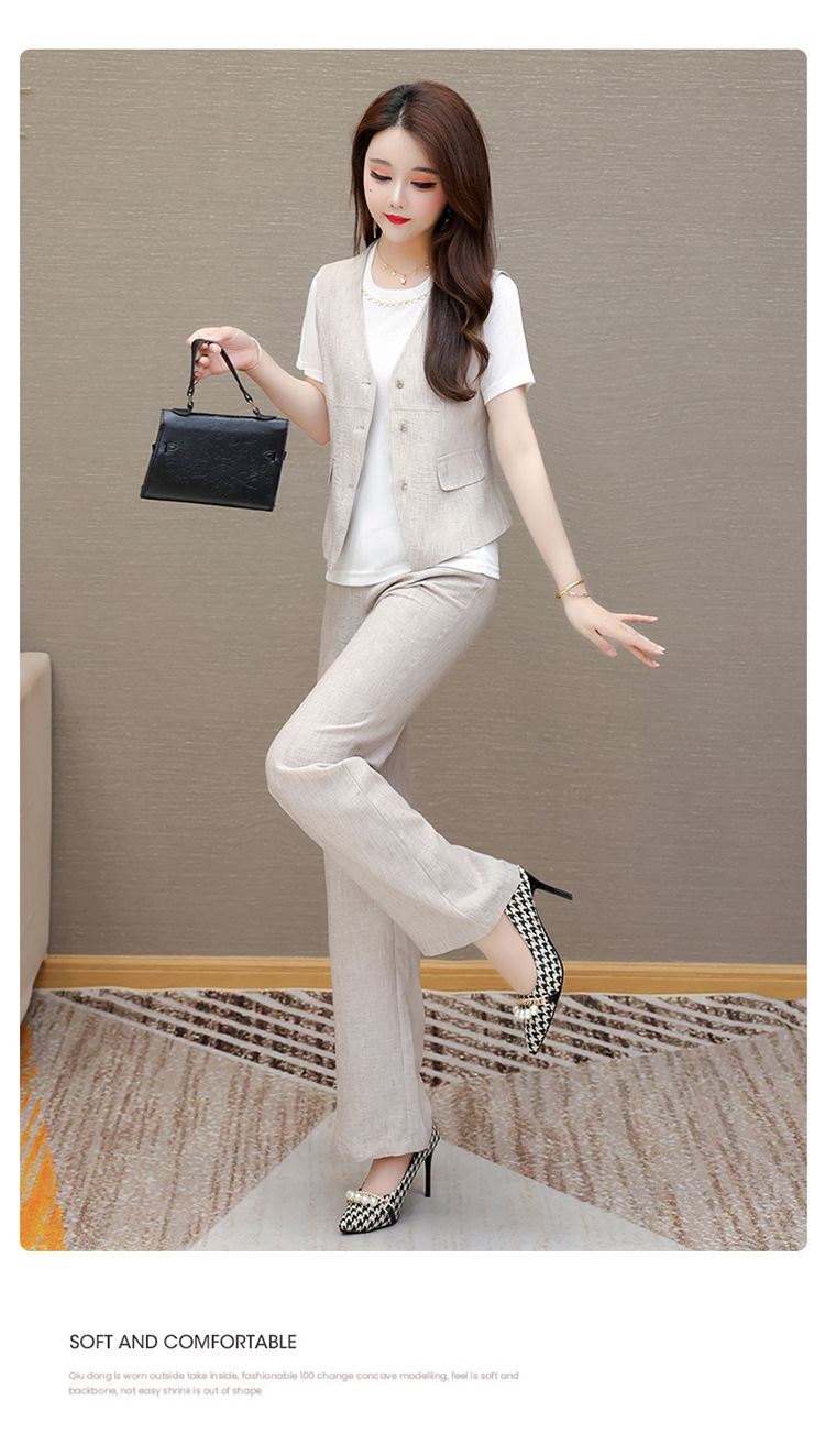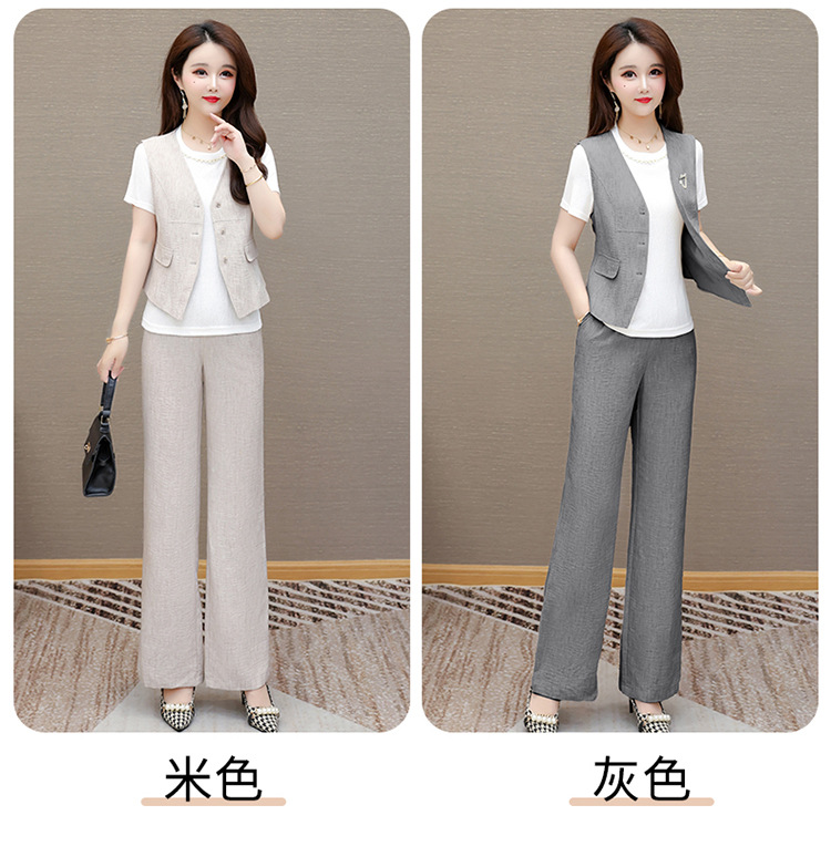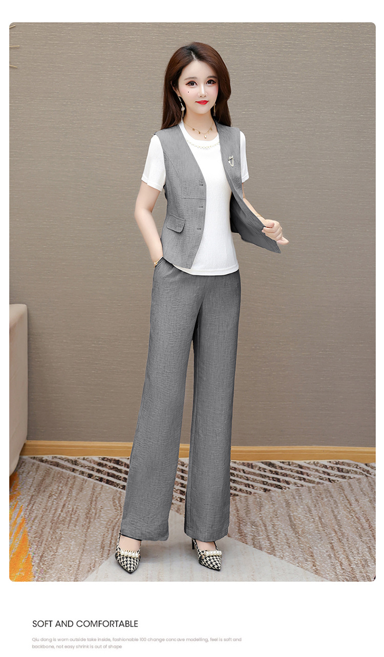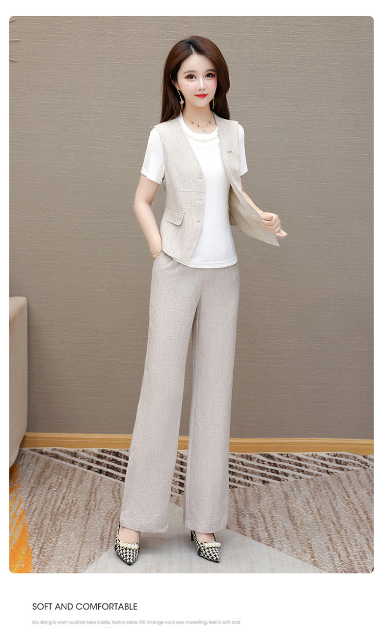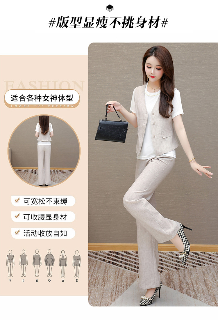 QYMAH-5169YX37-L2025年夏款短袖内搭T恤衫通勤修身显瘦马甲垂感直筒阔腿裤三件套 商品图1