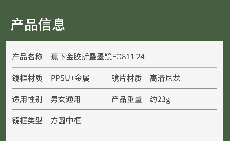 【25年新品】蕉下方形中框折叠墨镜FD429