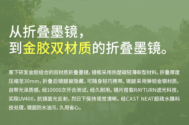 蕉下男款折叠墨镜FO81124金胶中框潮流开车防紫外线太阳眼镜防晒