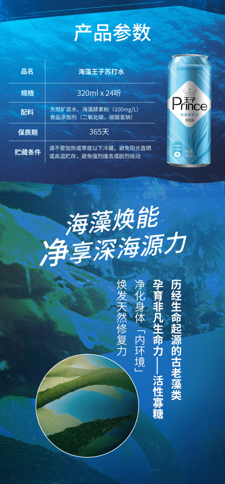 新品上市青岛啤酒旗下王子品牌苏打汽水海藻风味320ml*24听 商品缩略图0 新品上市青岛啤酒旗下王子品牌苏打汽水海藻风味320ml*24听 商品缩略图1