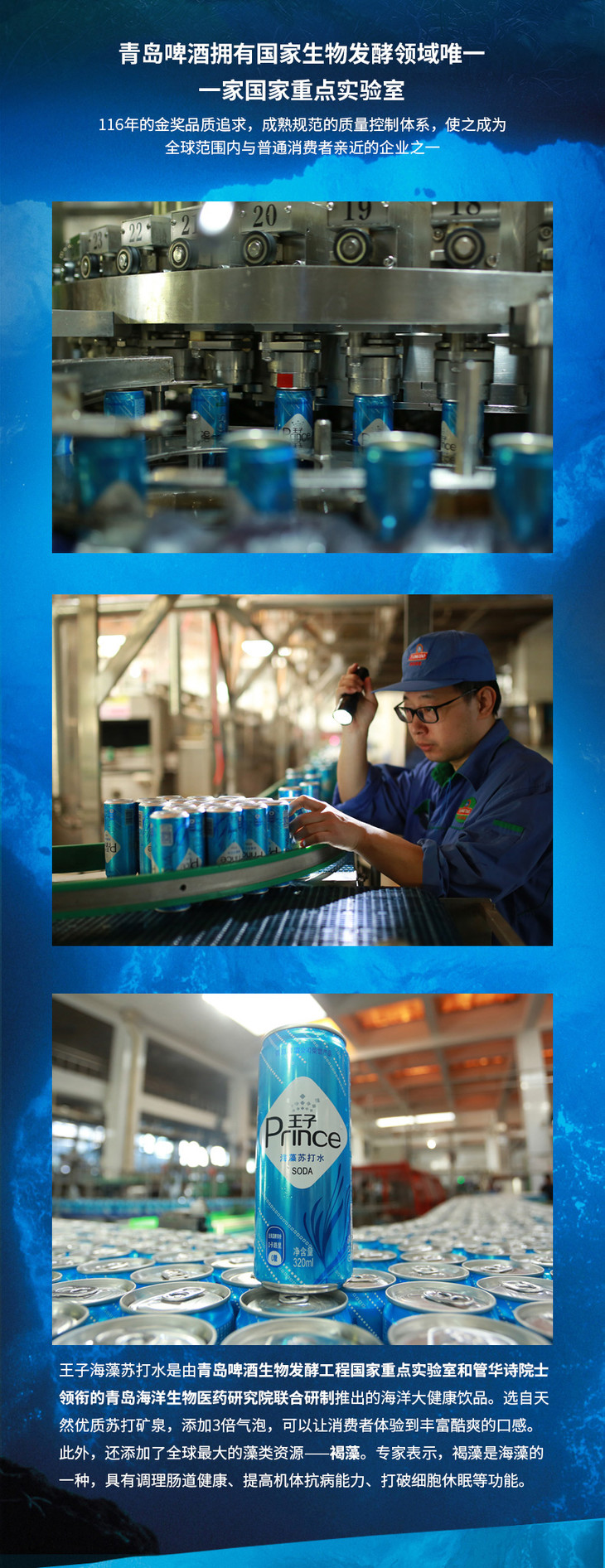 新品上市青岛啤酒旗下王子品牌苏打汽水海藻风味320ml*24听 商品图1