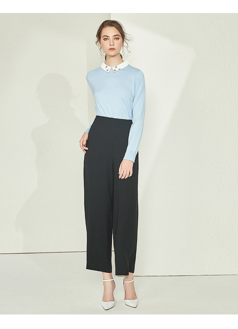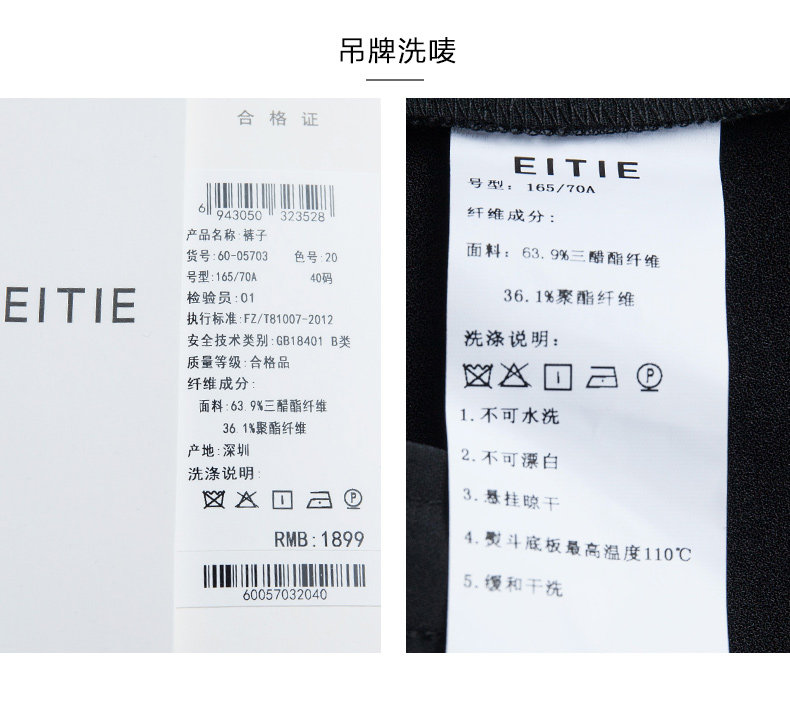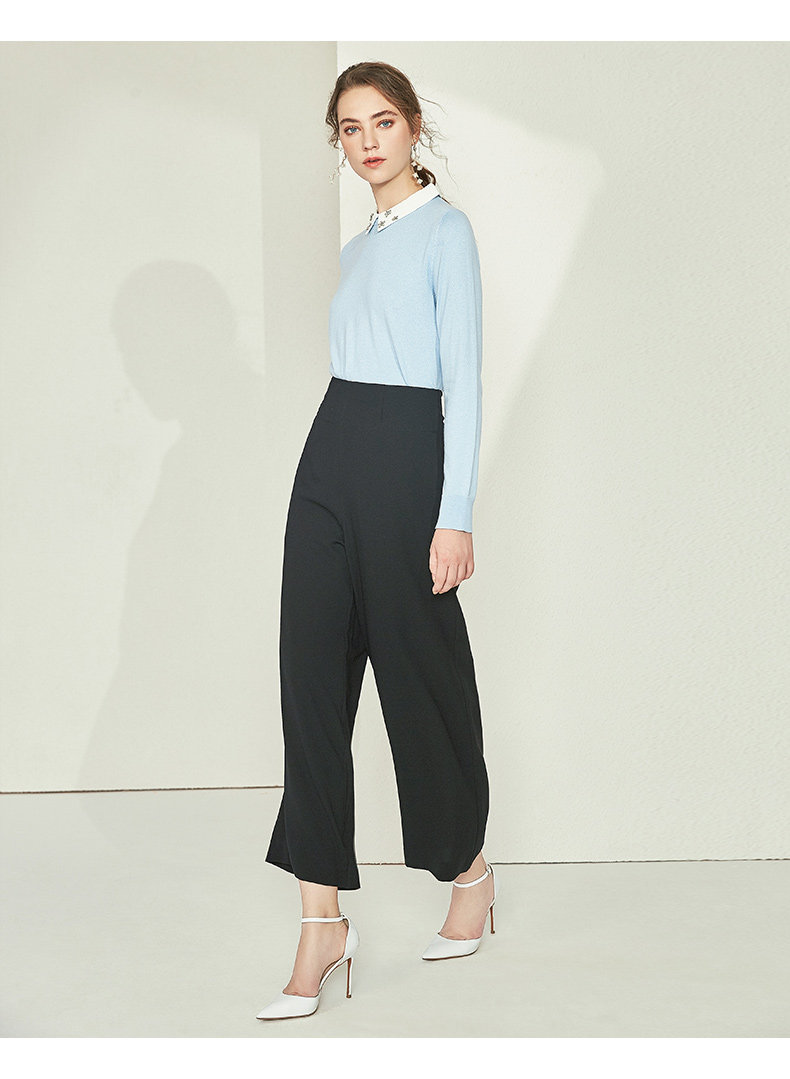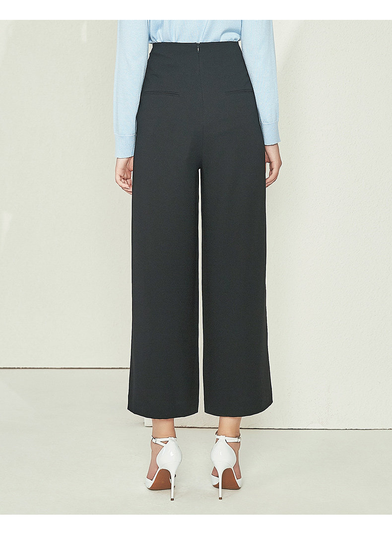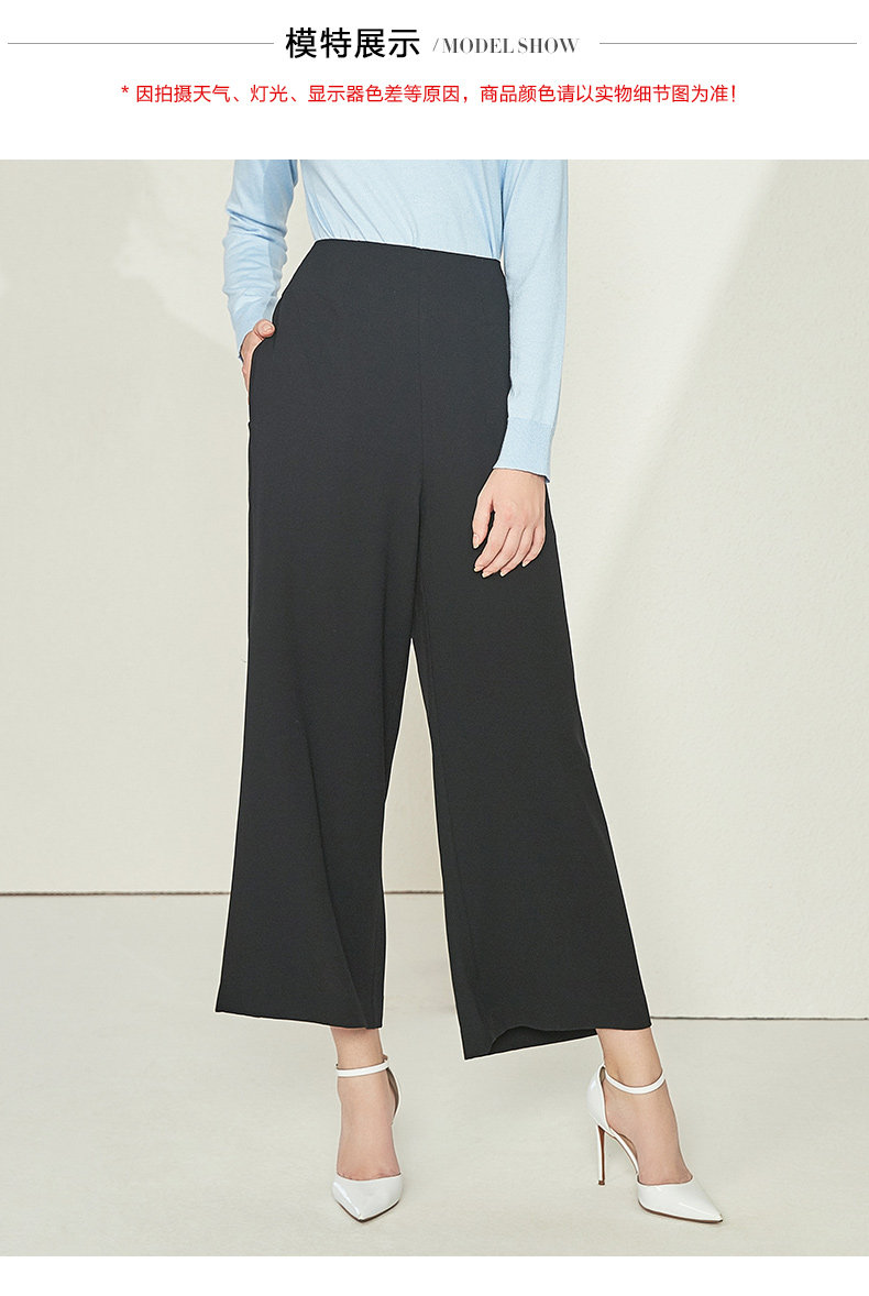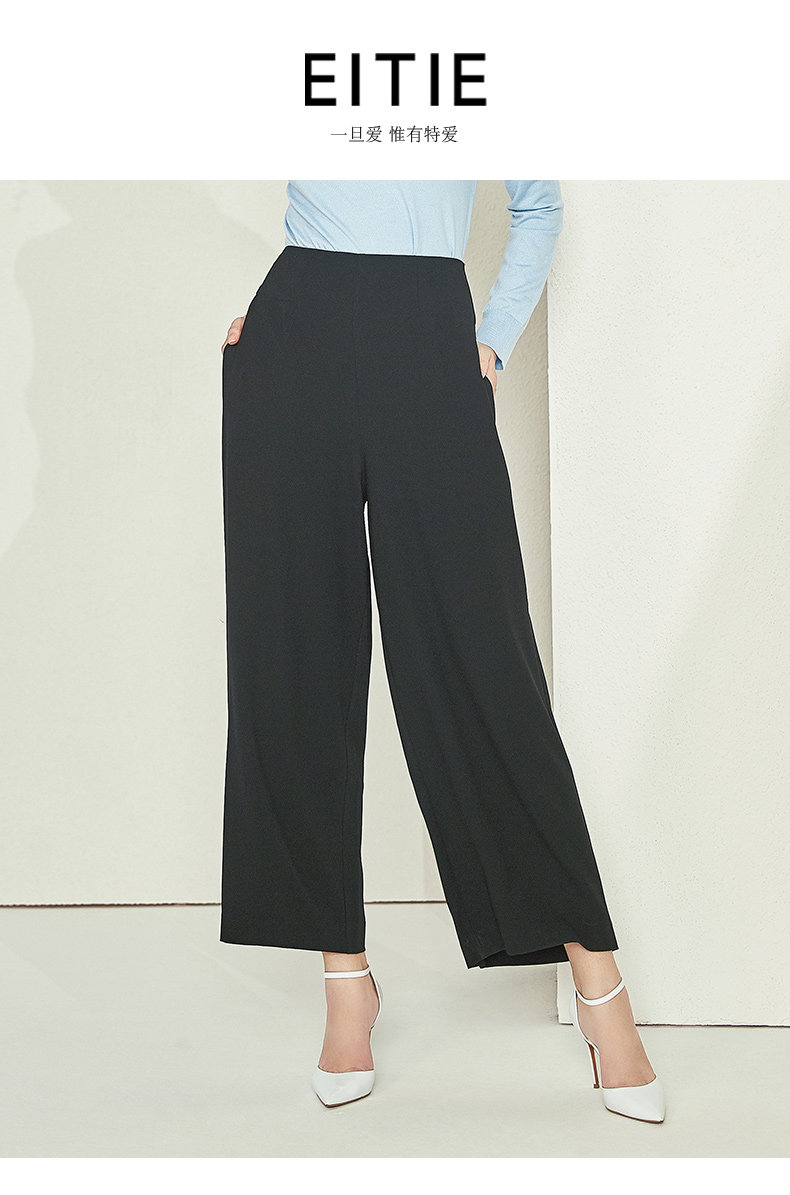 EITIE爱特爱女装初新品气质显瘦直筒高腰阔腿裤垂坠黑6005703