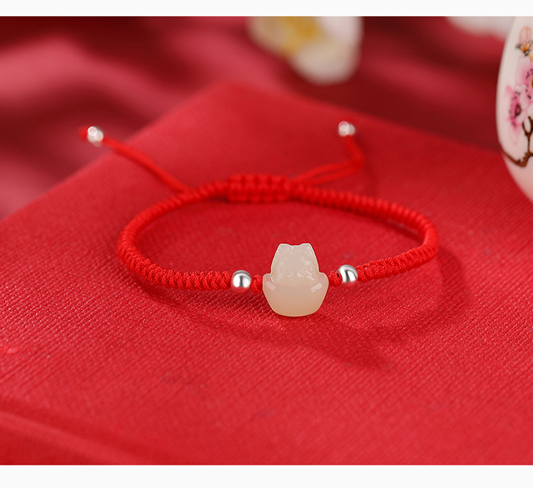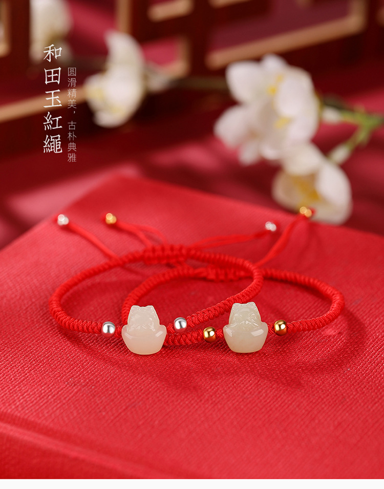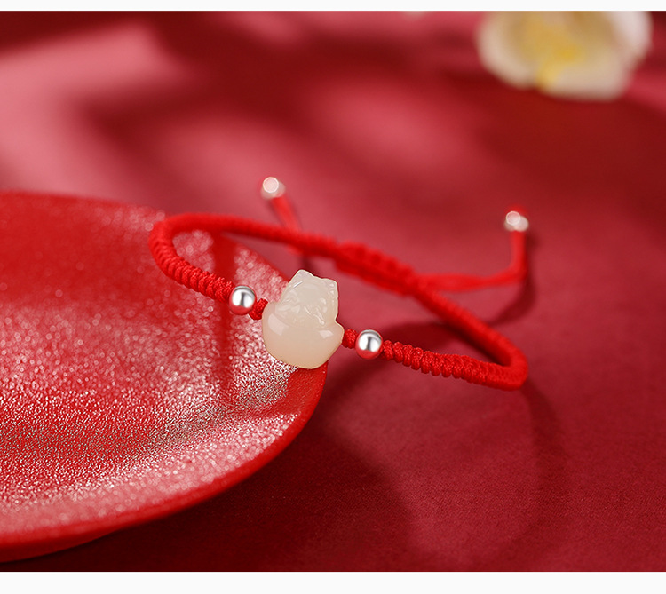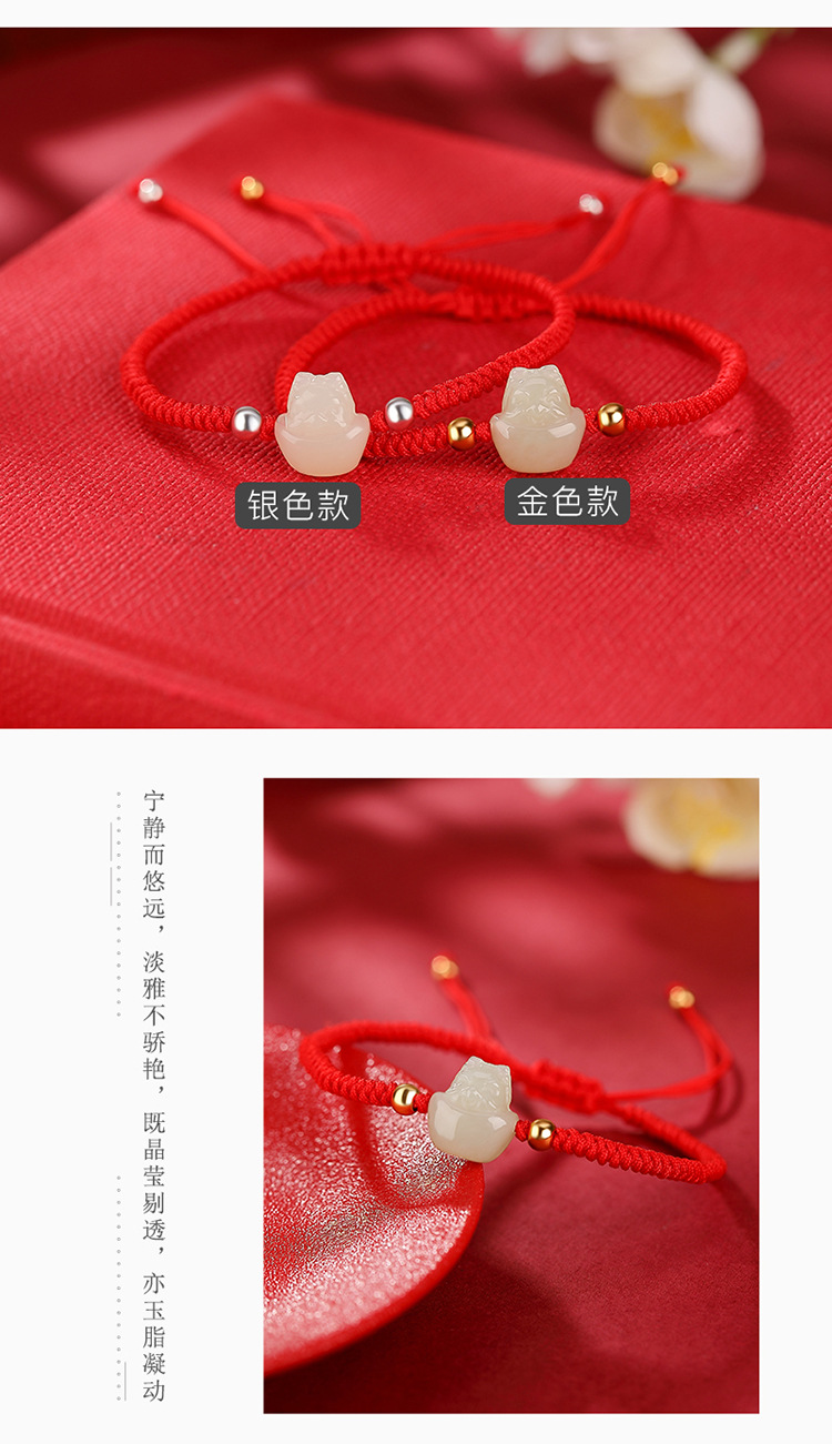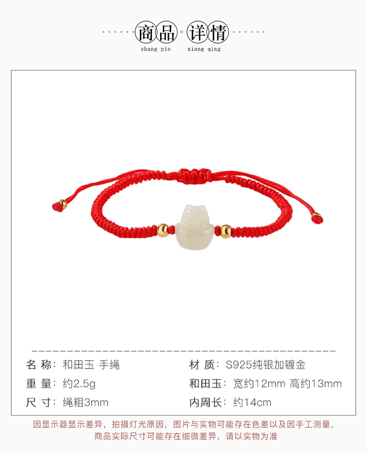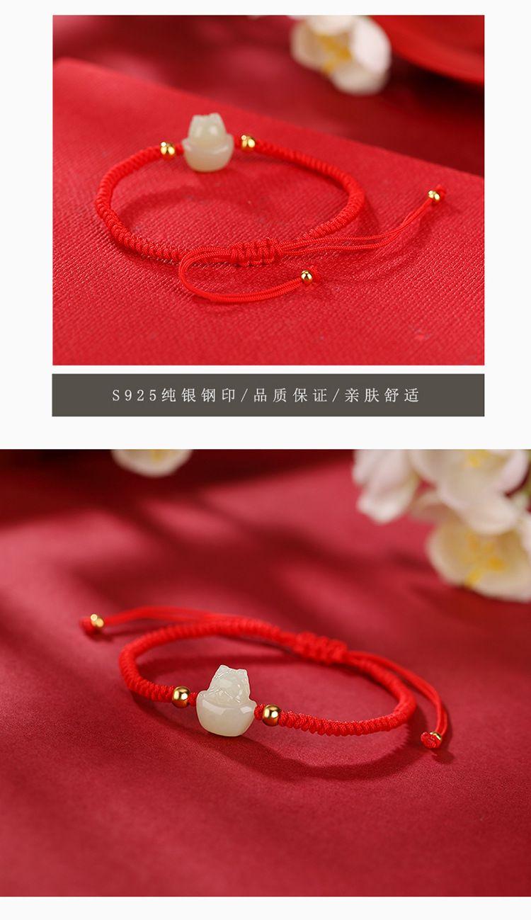 S925纯银镀金和田玉本命年龙元宝红绳手链龙年编织手绳CW