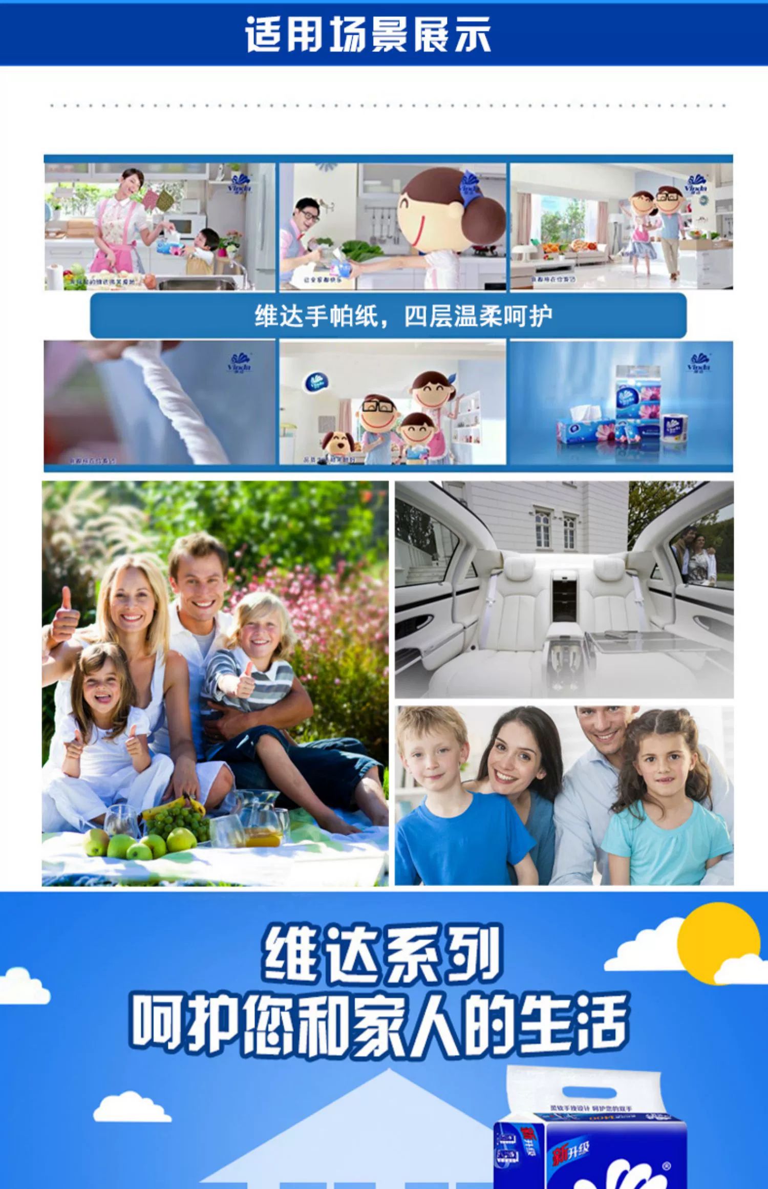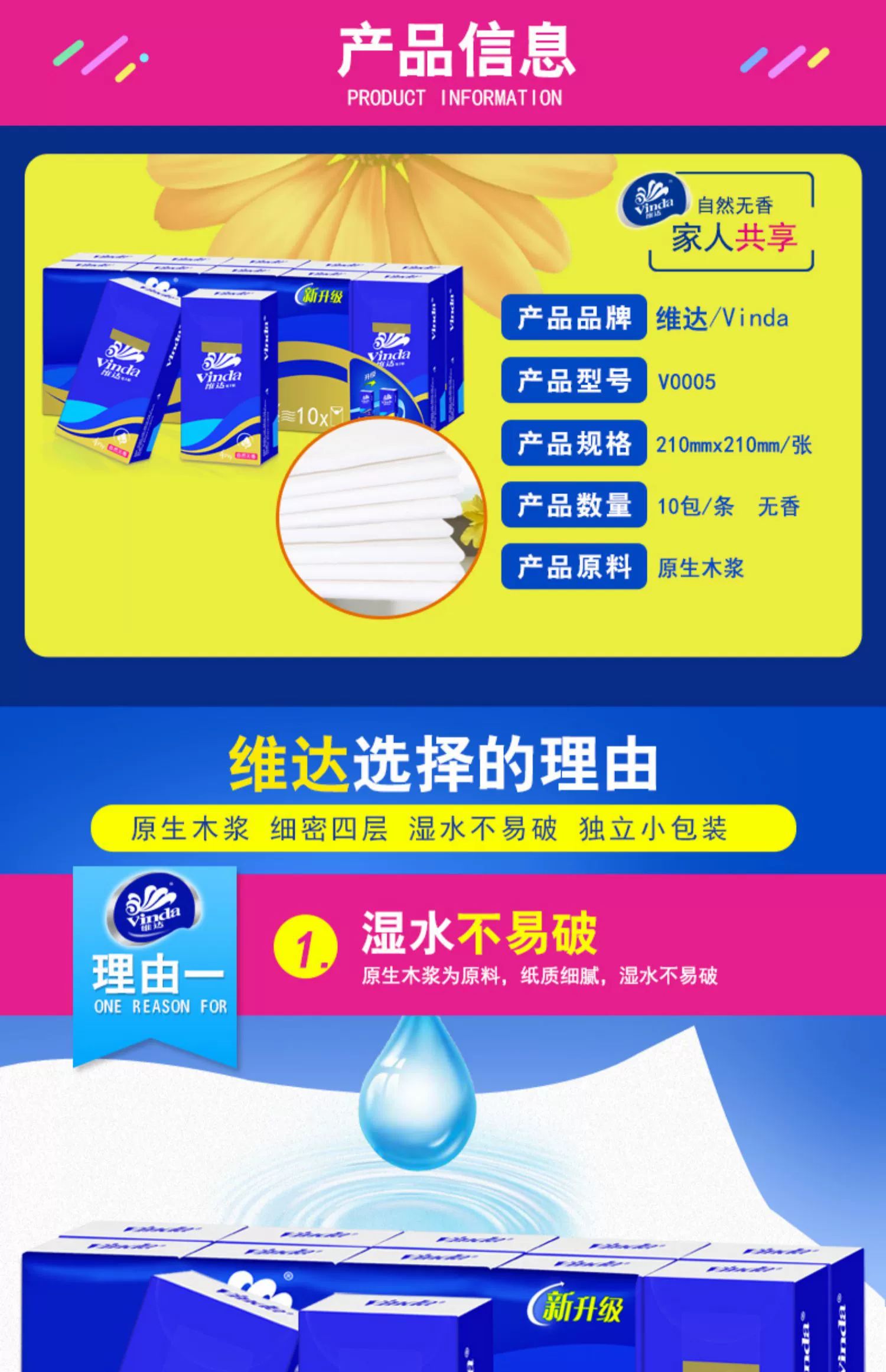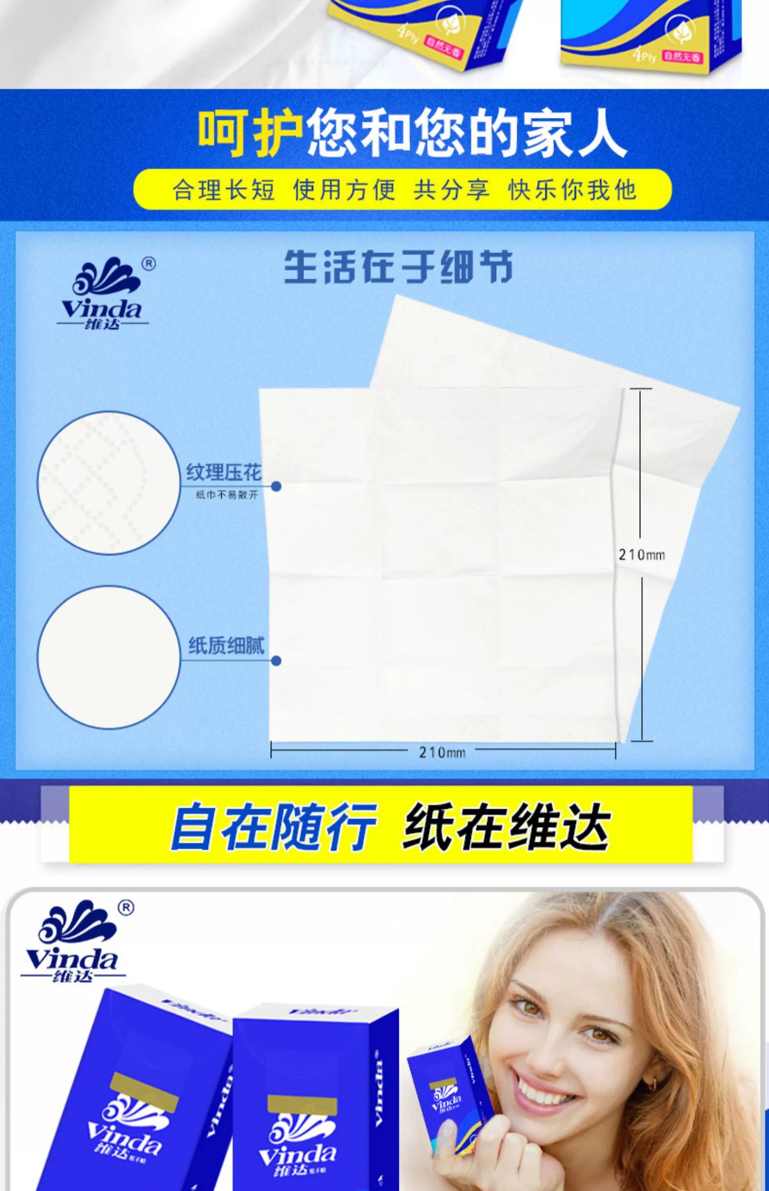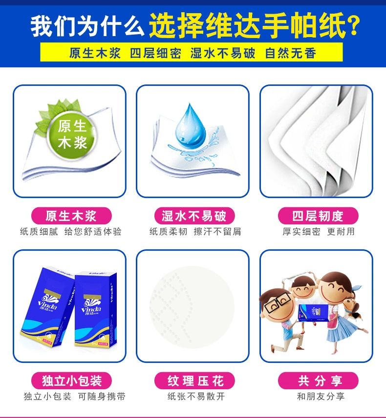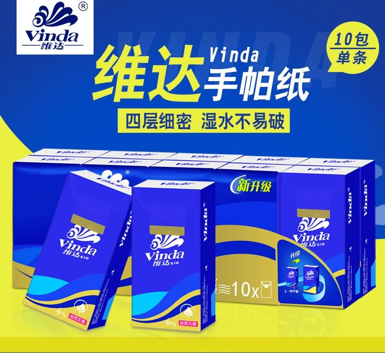 维达蓝色经典4层10包无香手帕纸 V0005