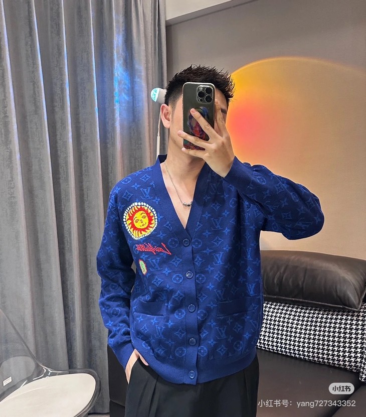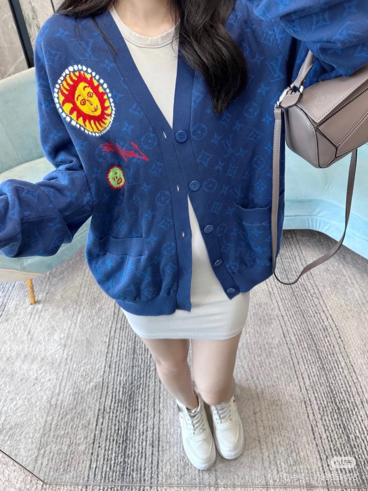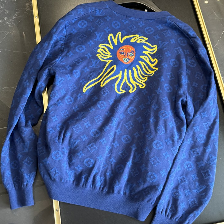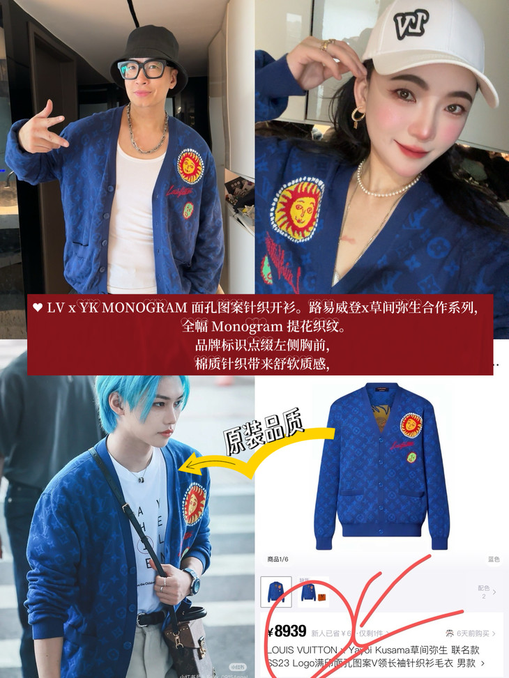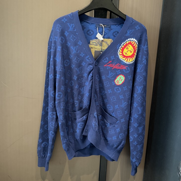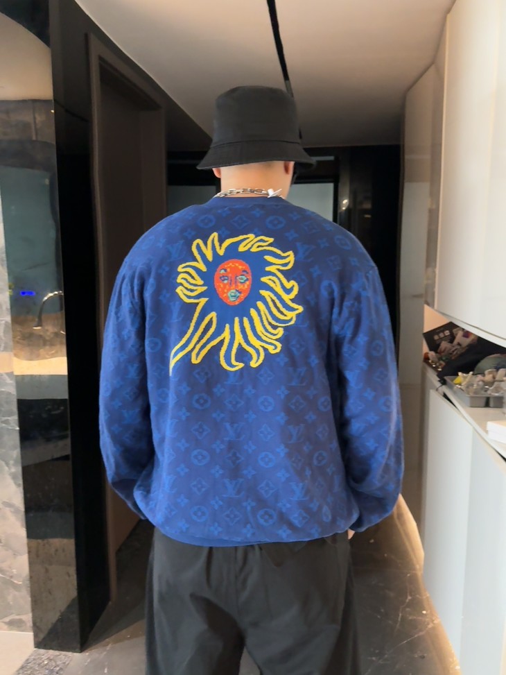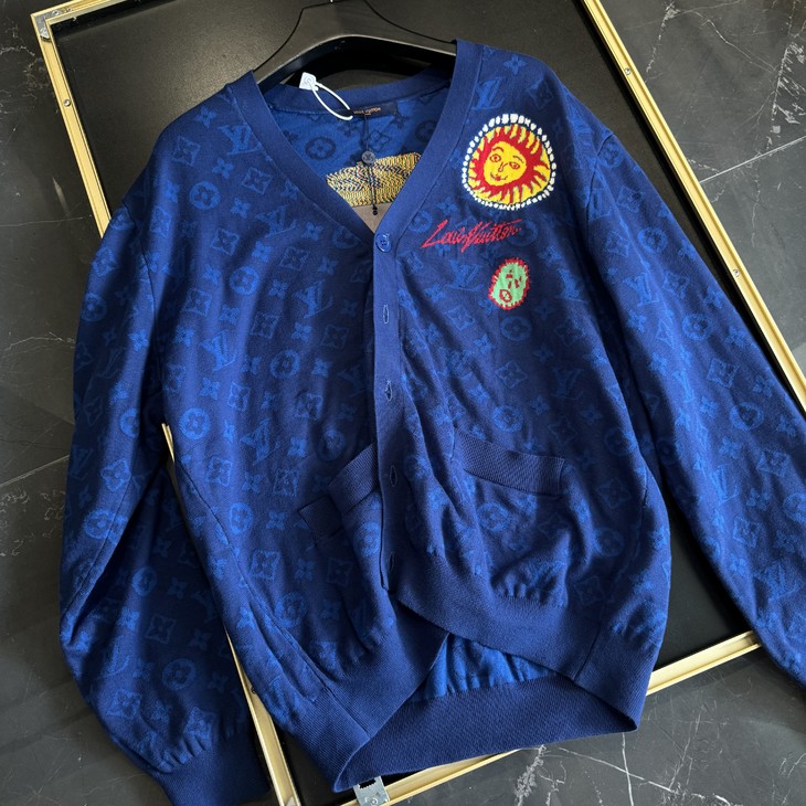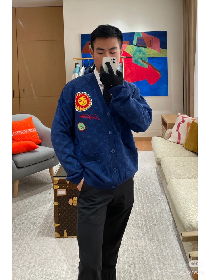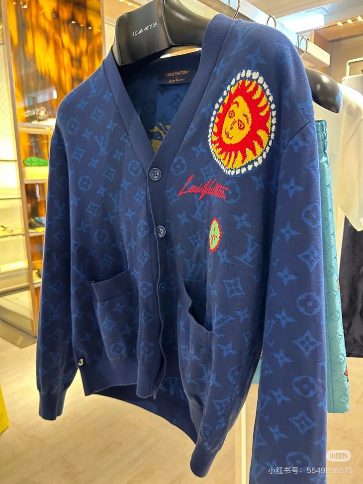 顶级高端‼️ L**V x YK MONOGRAM 面孔图案针织开衫。