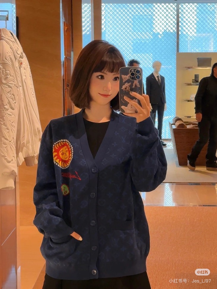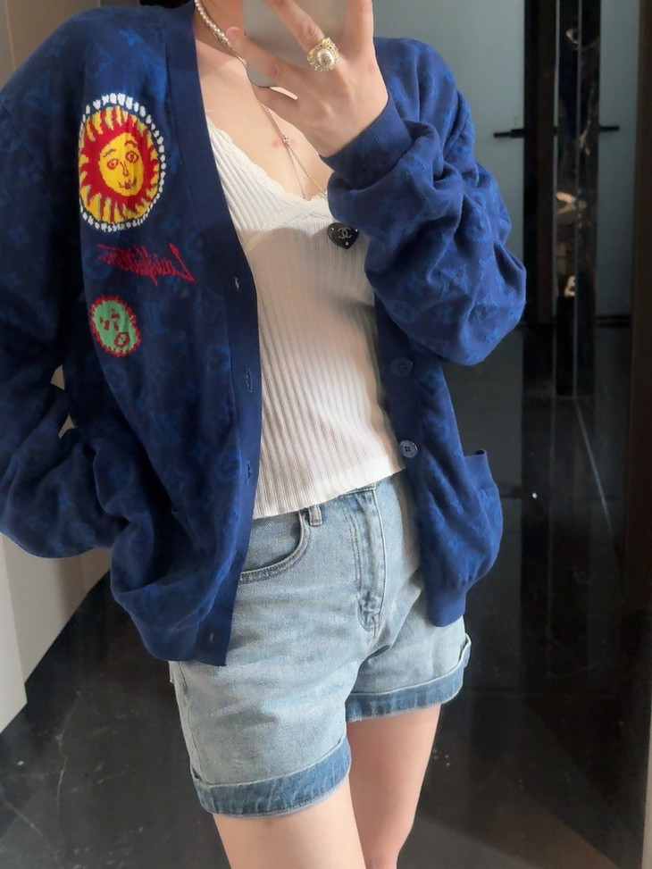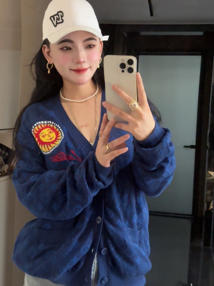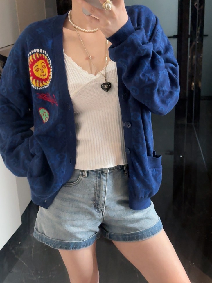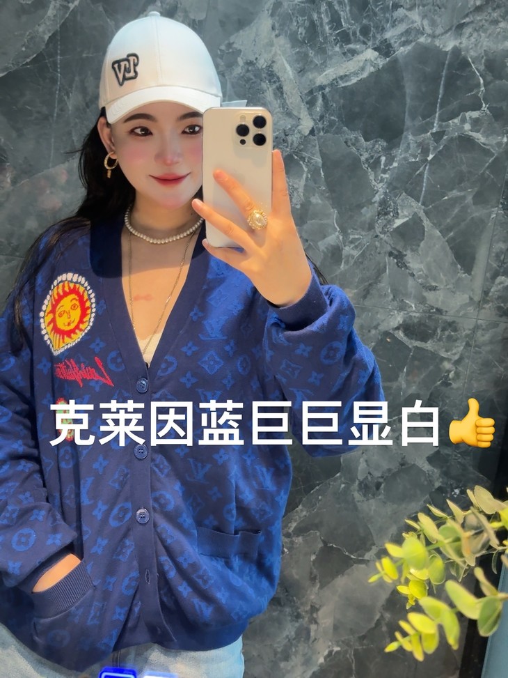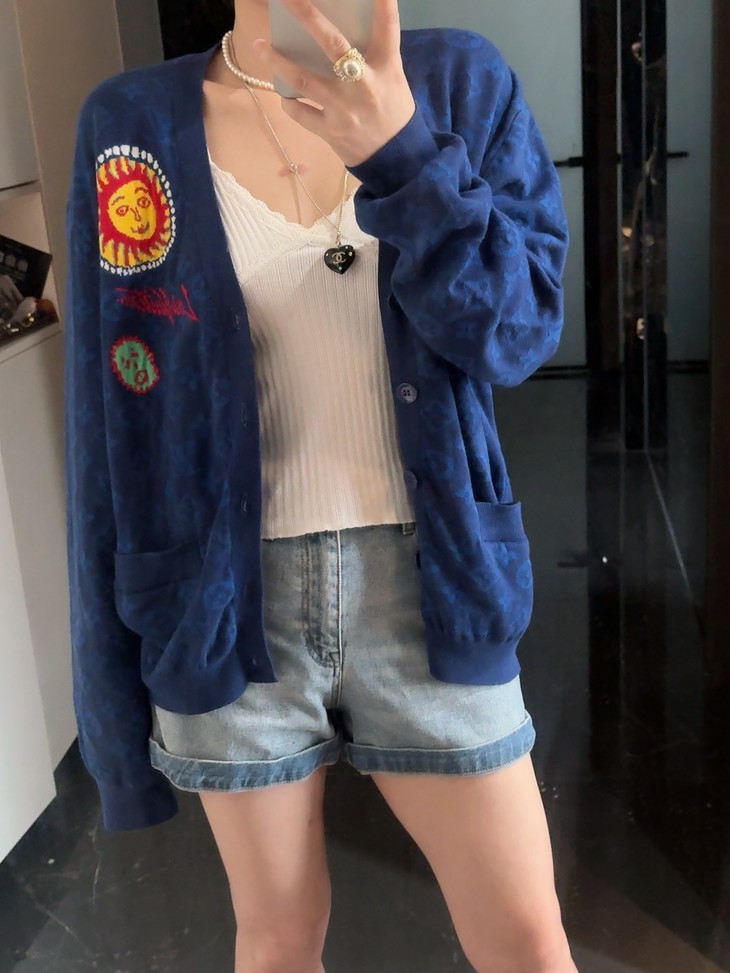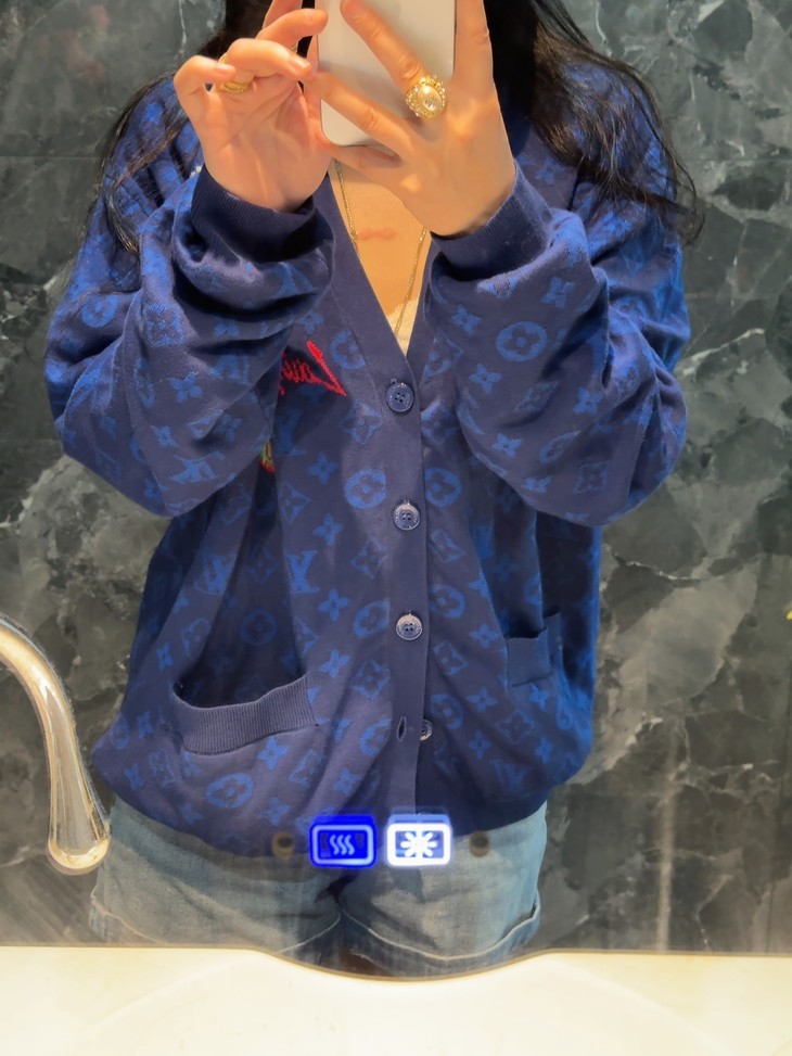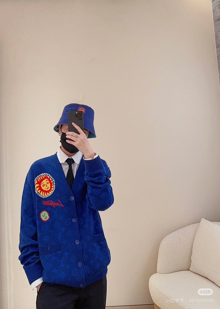 顶级高端‼️ L**V x YK MONOGRAM 面孔图案针织开衫。