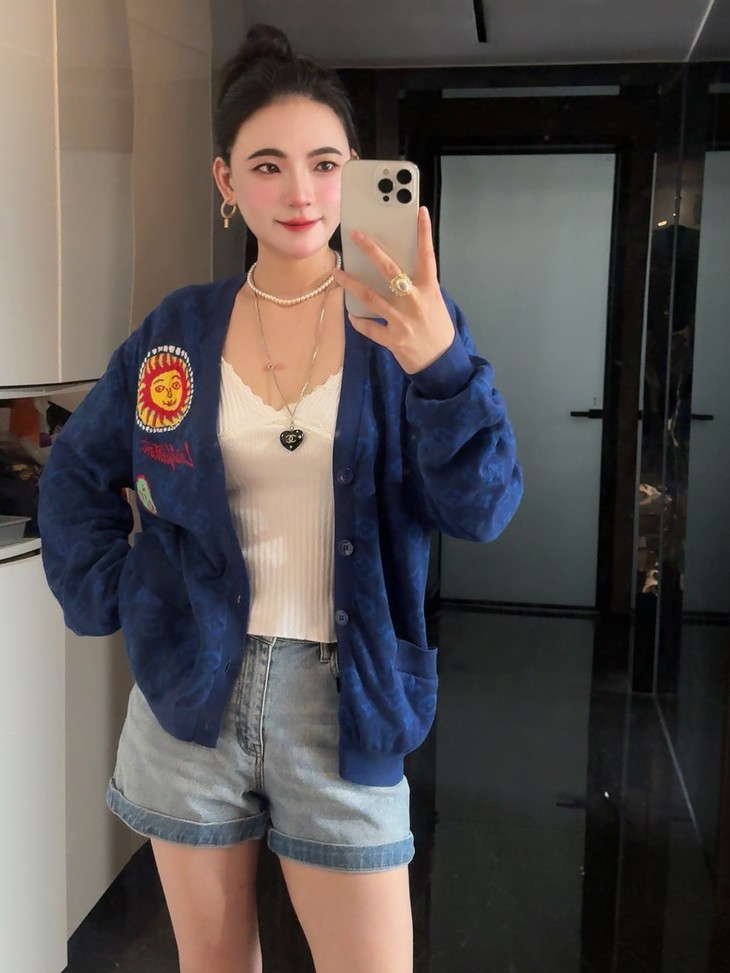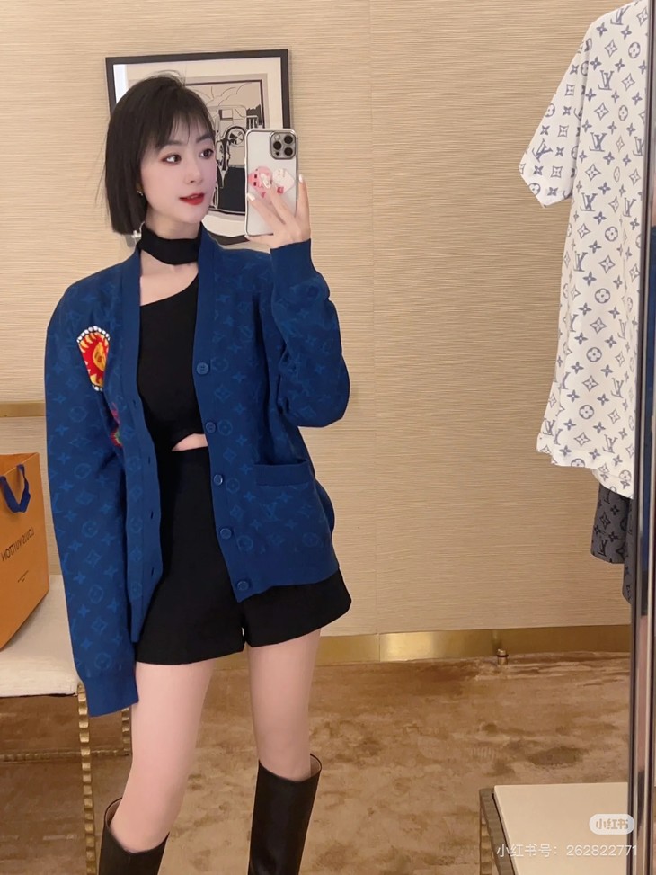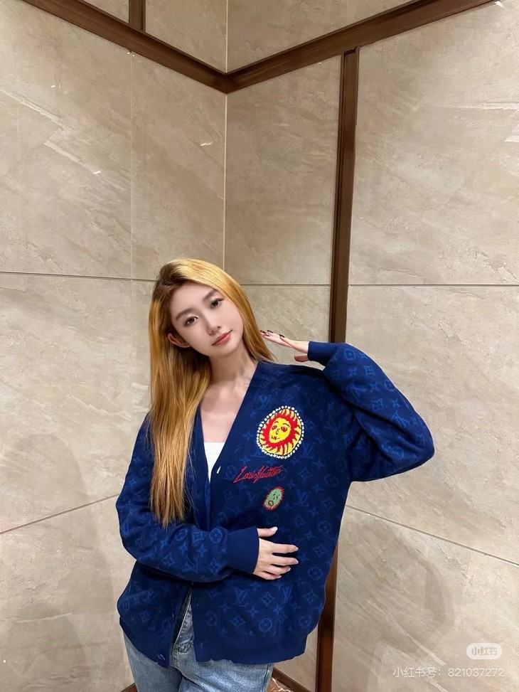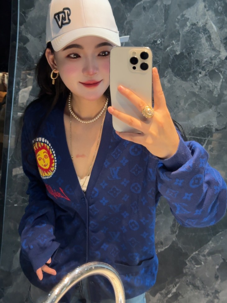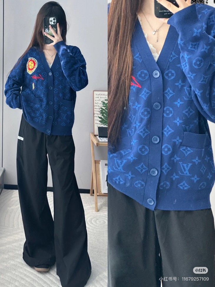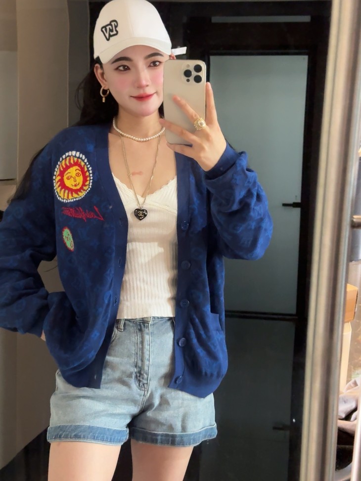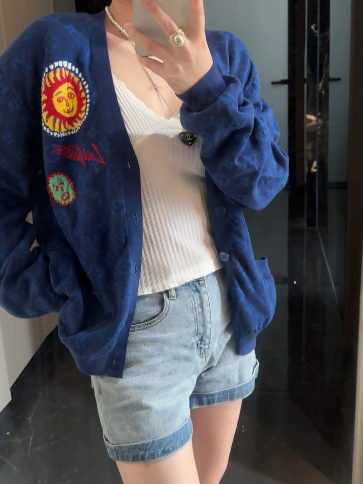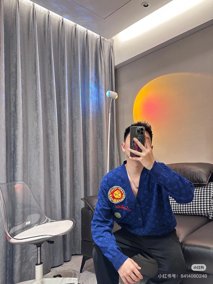 顶级高端‼️ L**V x YK MONOGRAM 面孔图案针织开衫。
