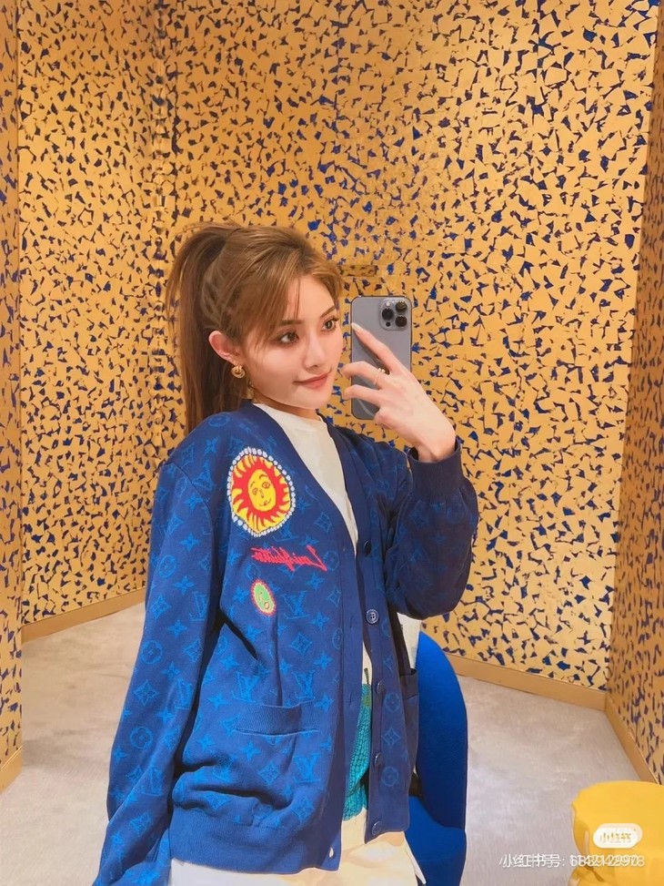 本款开衫出自路&易威登x草间弥生合作系列。将这位艺术家自2009年起创作于《My Eternal Soul》系列绘画的缤纷意象化为面孔图案,辅以全幅 Monogram 提花织纹。