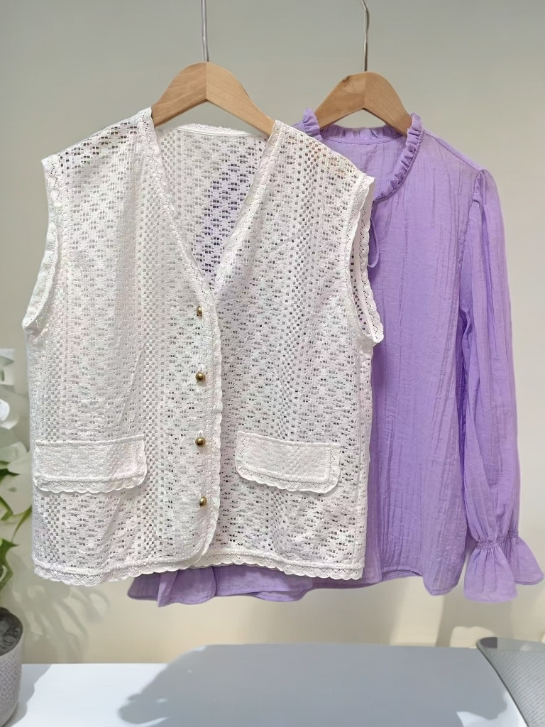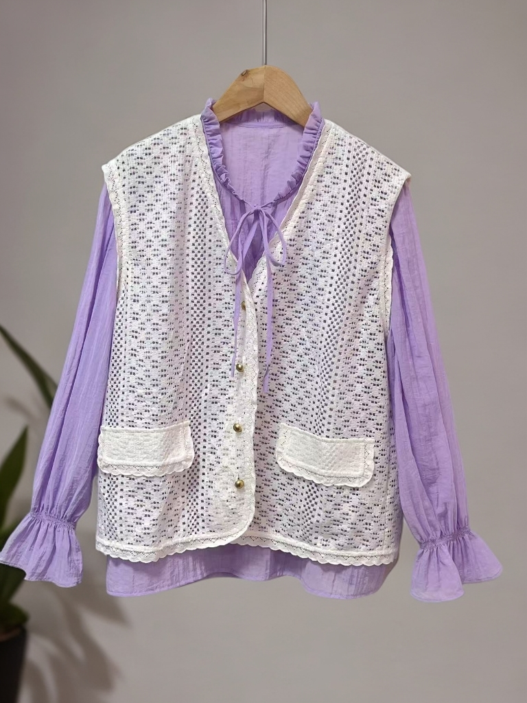 冰点价!仅限11.11!退货勿拍(两件套)木耳边马甲长袖薄款套装-喜出