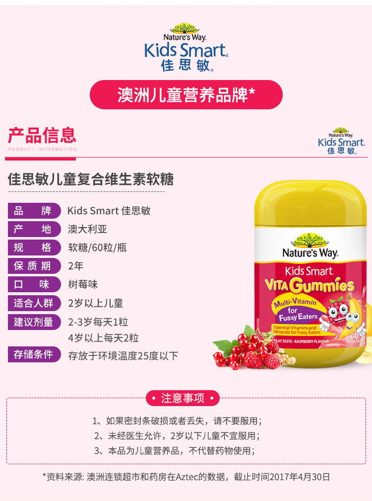 澳洲Nature’s way佳思敏儿童复合维生素软糖 厌食专用-60粒