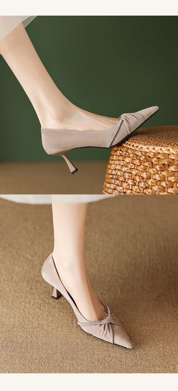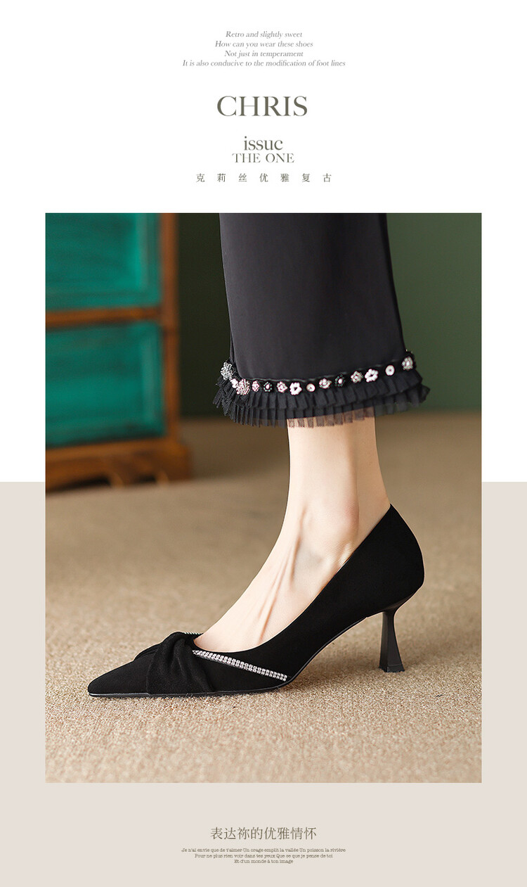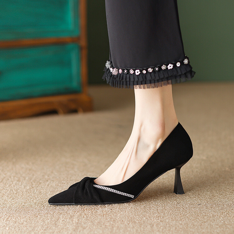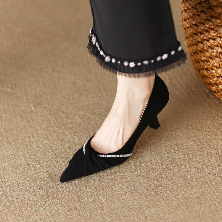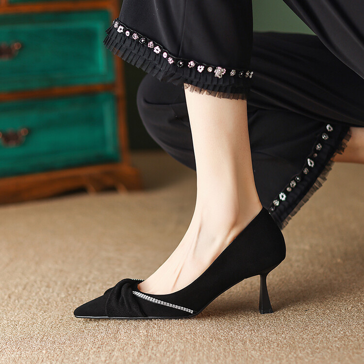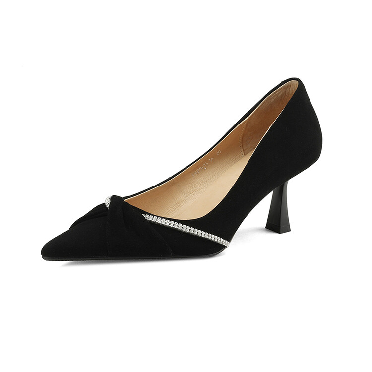 优雅气质高跟女鞋,羊翻皮欧美尖头细跟水钻单鞋HTK-F1088-13