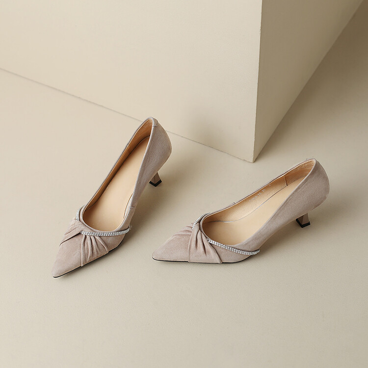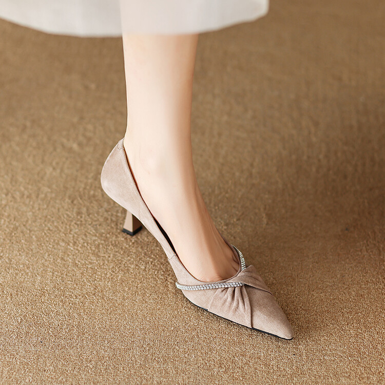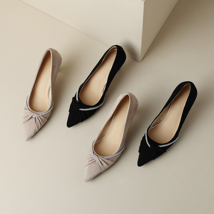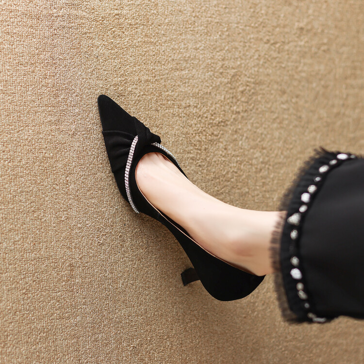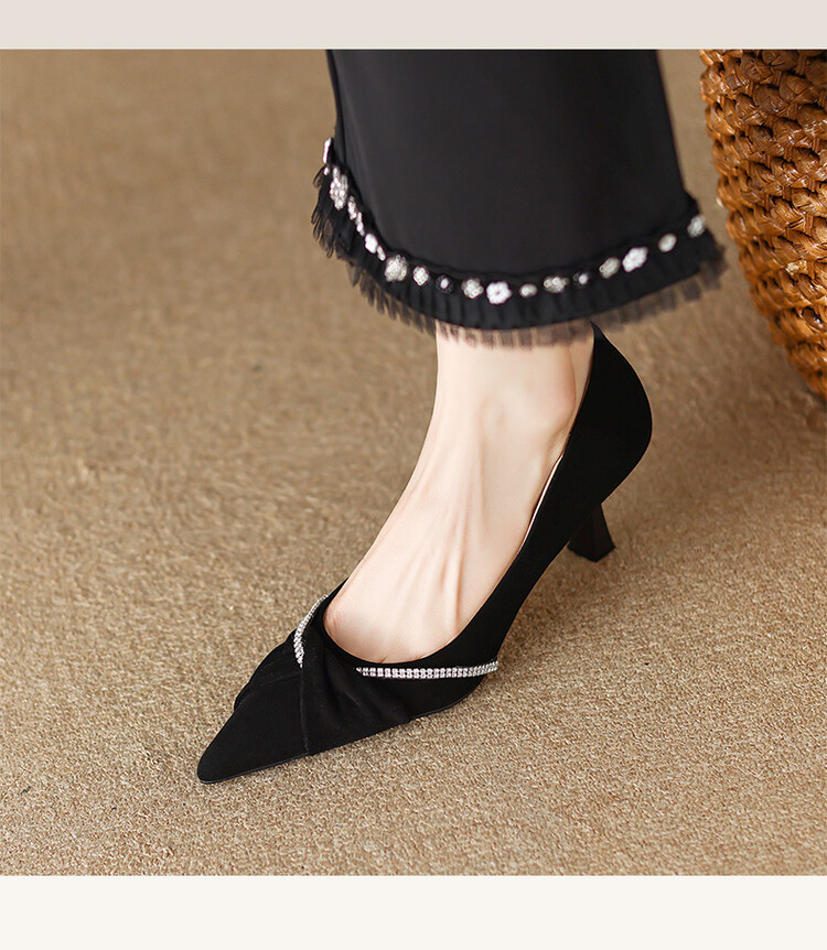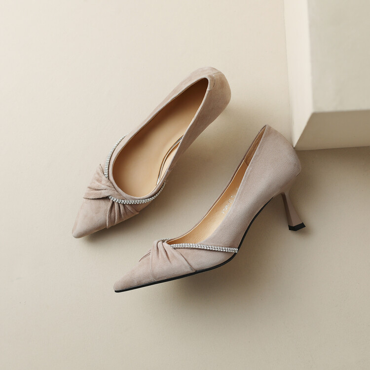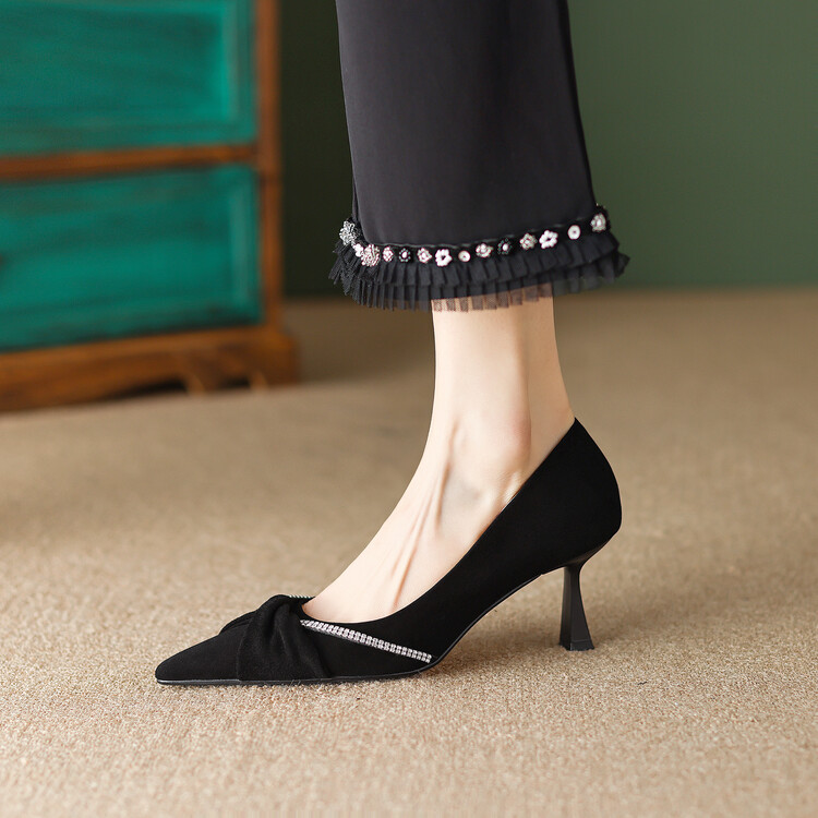 优雅气质高跟女鞋,羊翻皮欧美尖头细跟水钻单鞋HTK-F1088-13