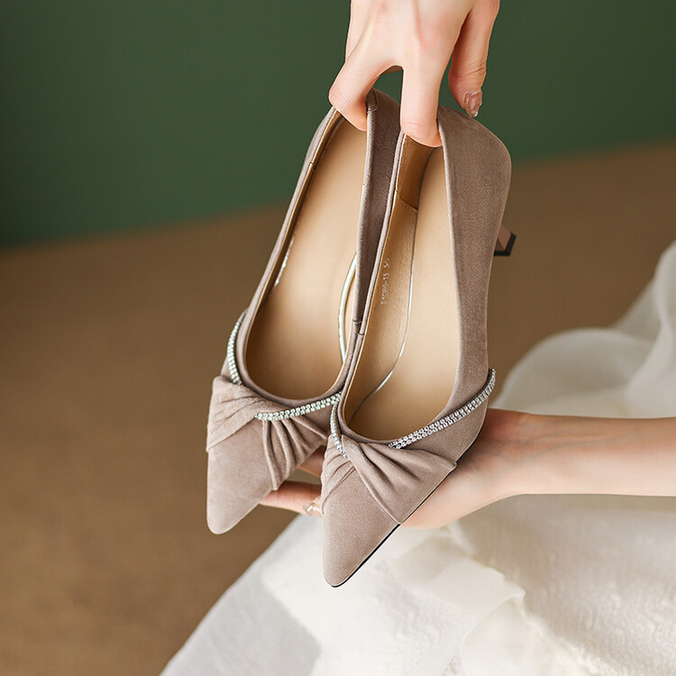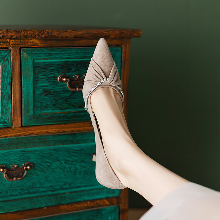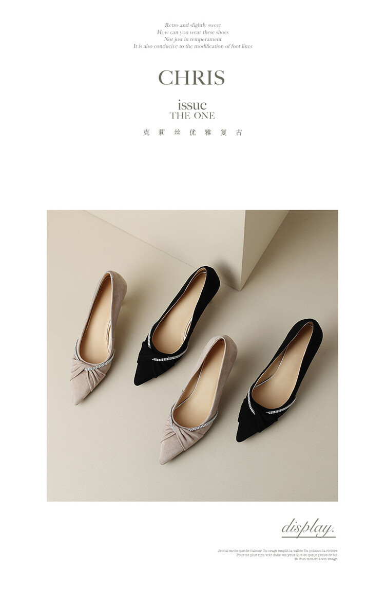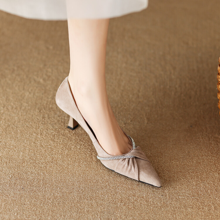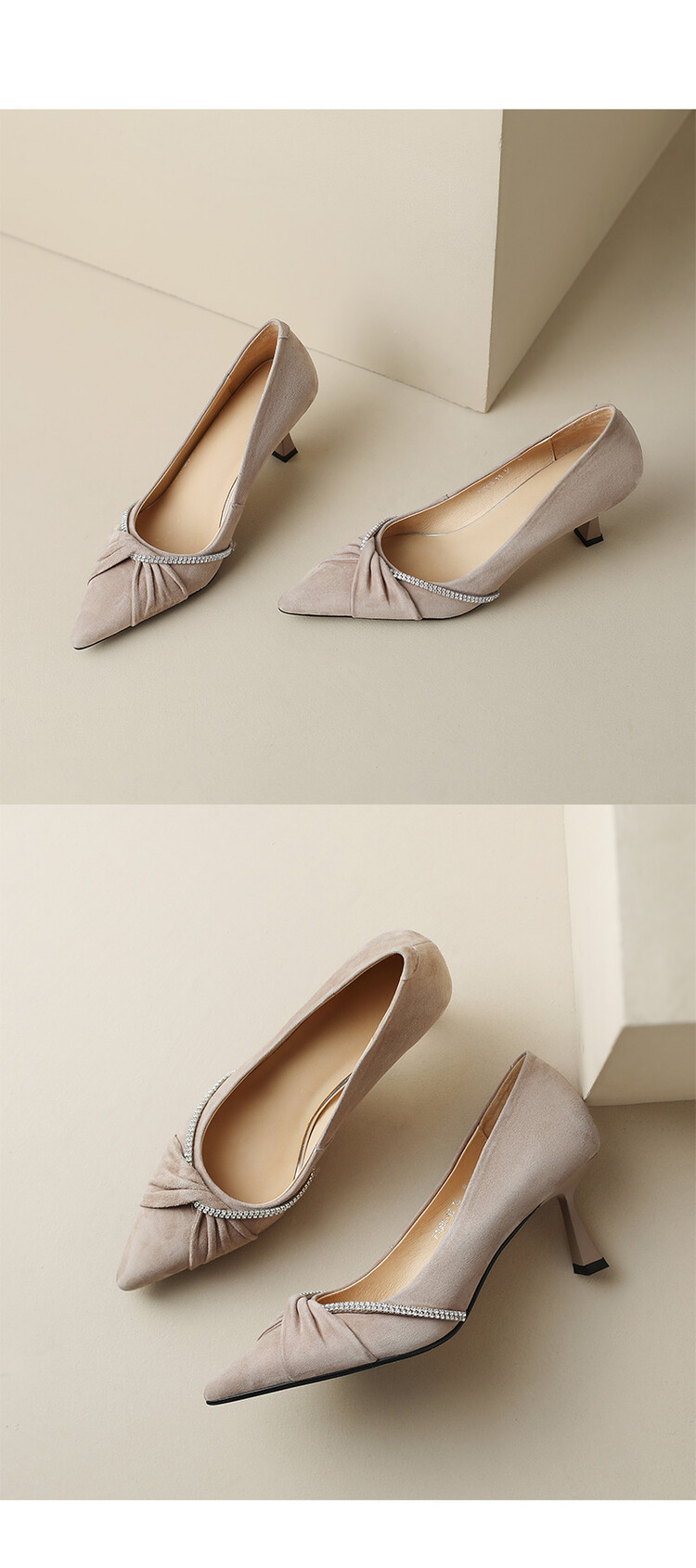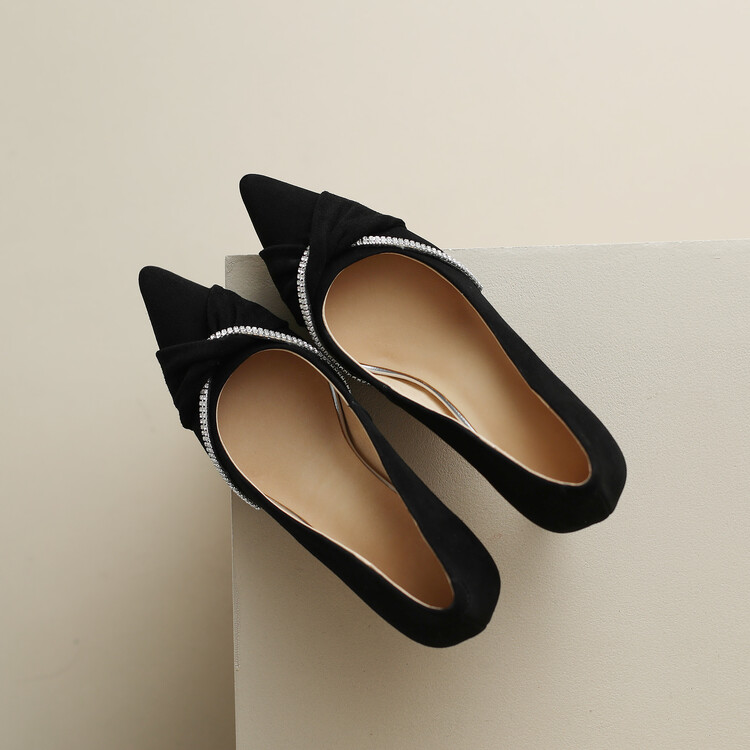 优雅气质高跟女鞋,羊翻皮欧美尖头细跟水钻单鞋HTK-F1088-13