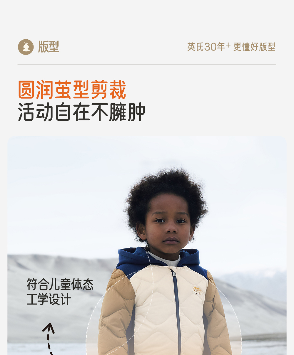 【商场同款】英氏童装秋冬保暖抗静电羽绒服男童外套撞色羽绒上衣超韧绒