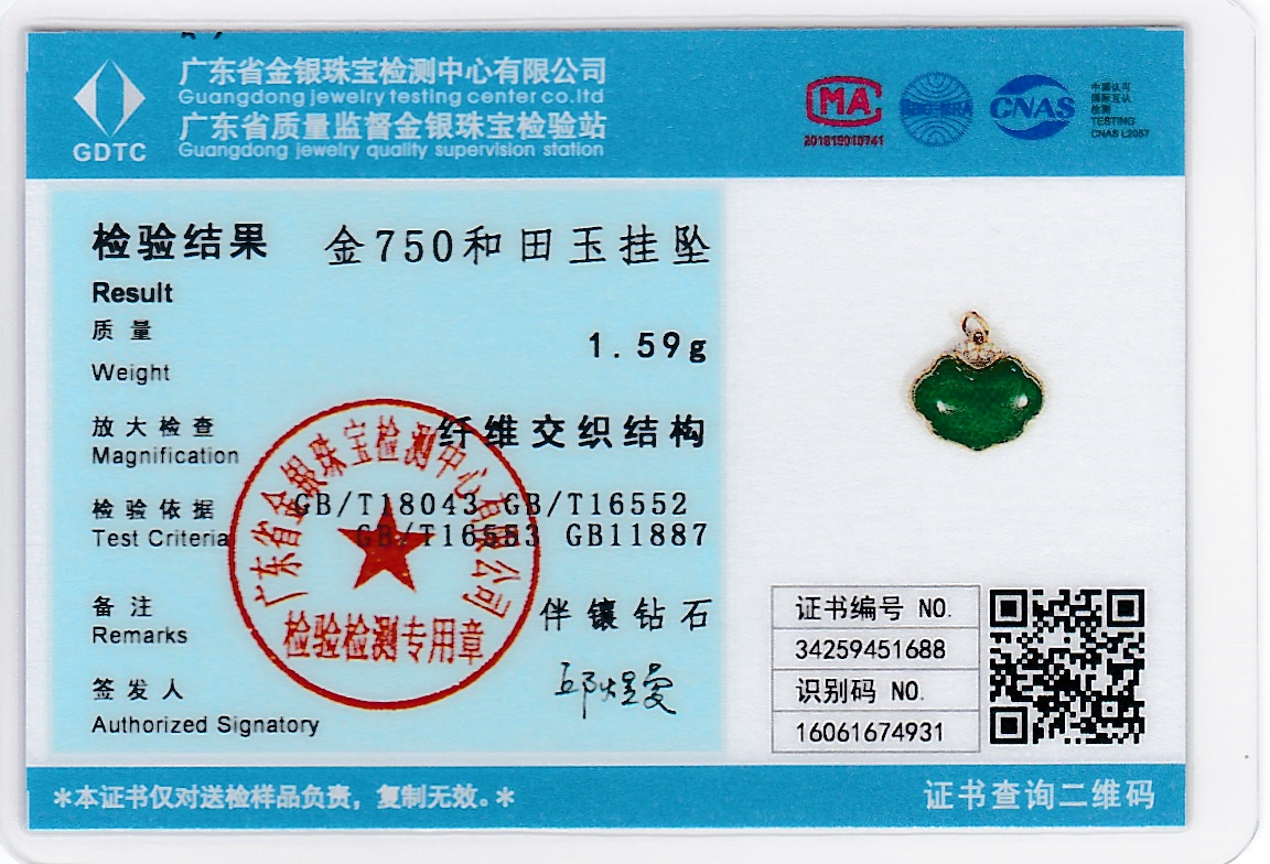 18K玫瑰金和田玉(碧玉)吊坠
