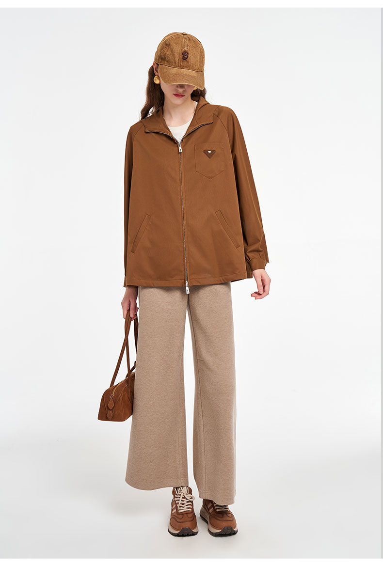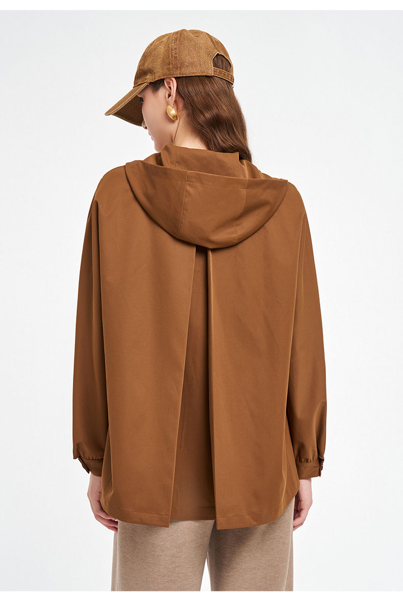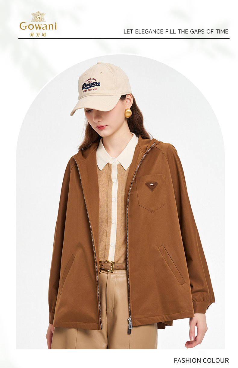 乔万尼新品2025秋挺括A版宽松连帽短款风衣外套ED3B233