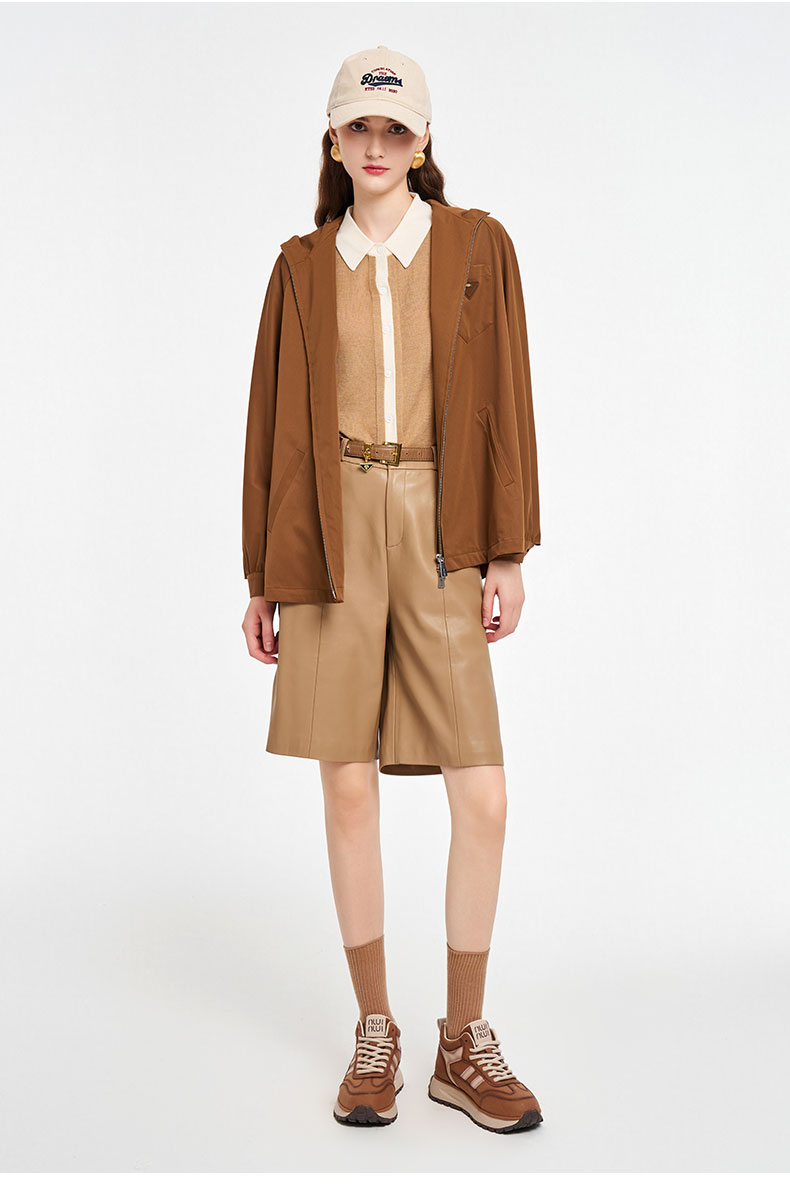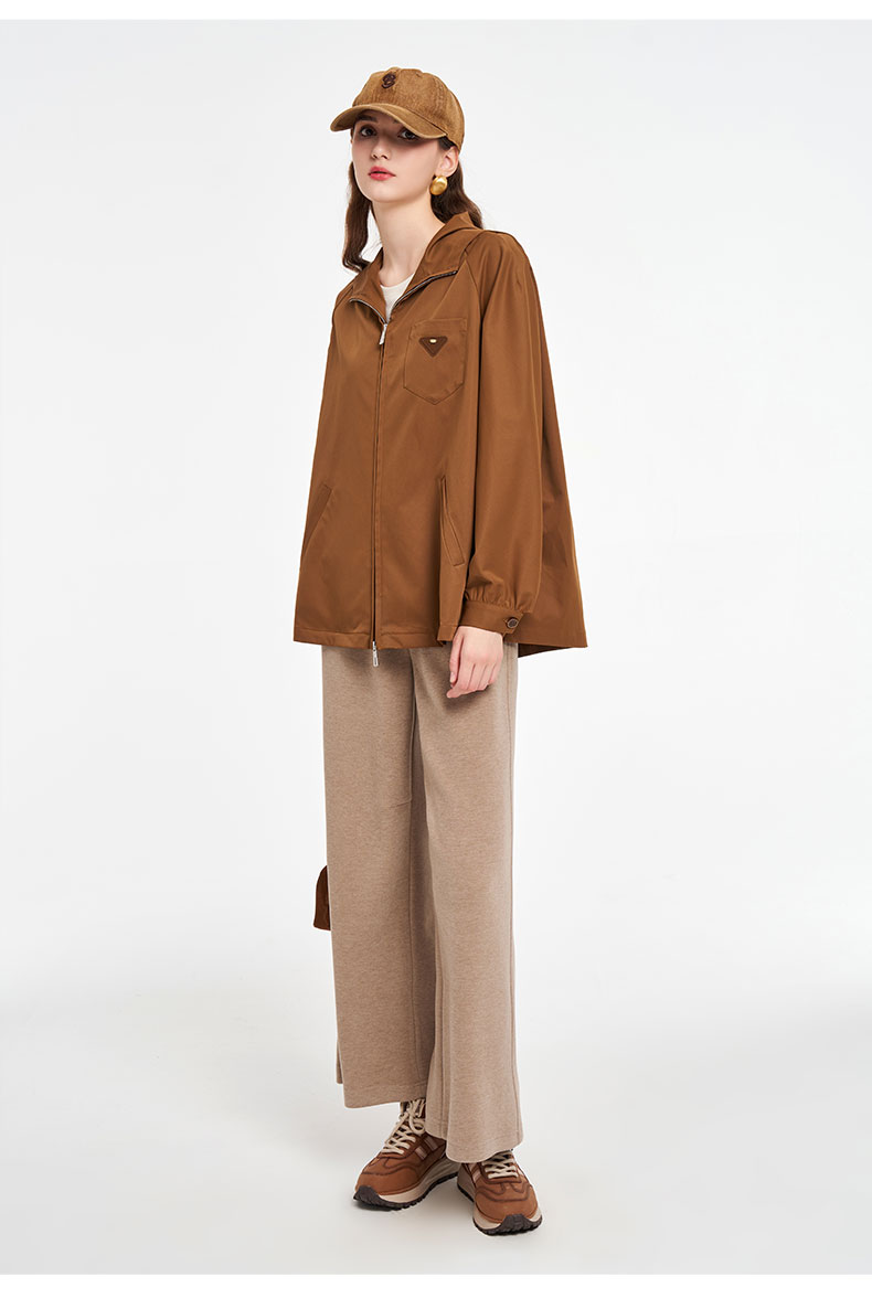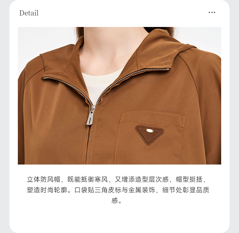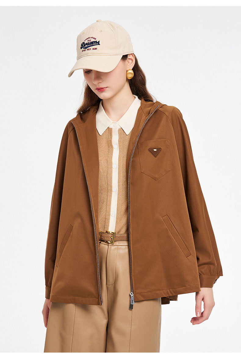 乔万尼新品2025秋挺括A版宽松连帽短款风衣外套ED3B233