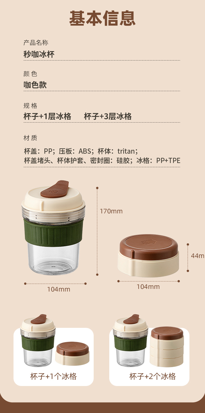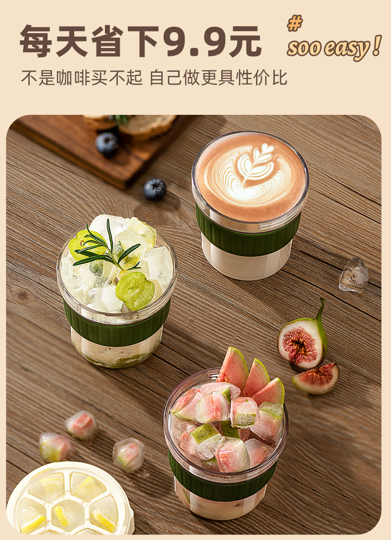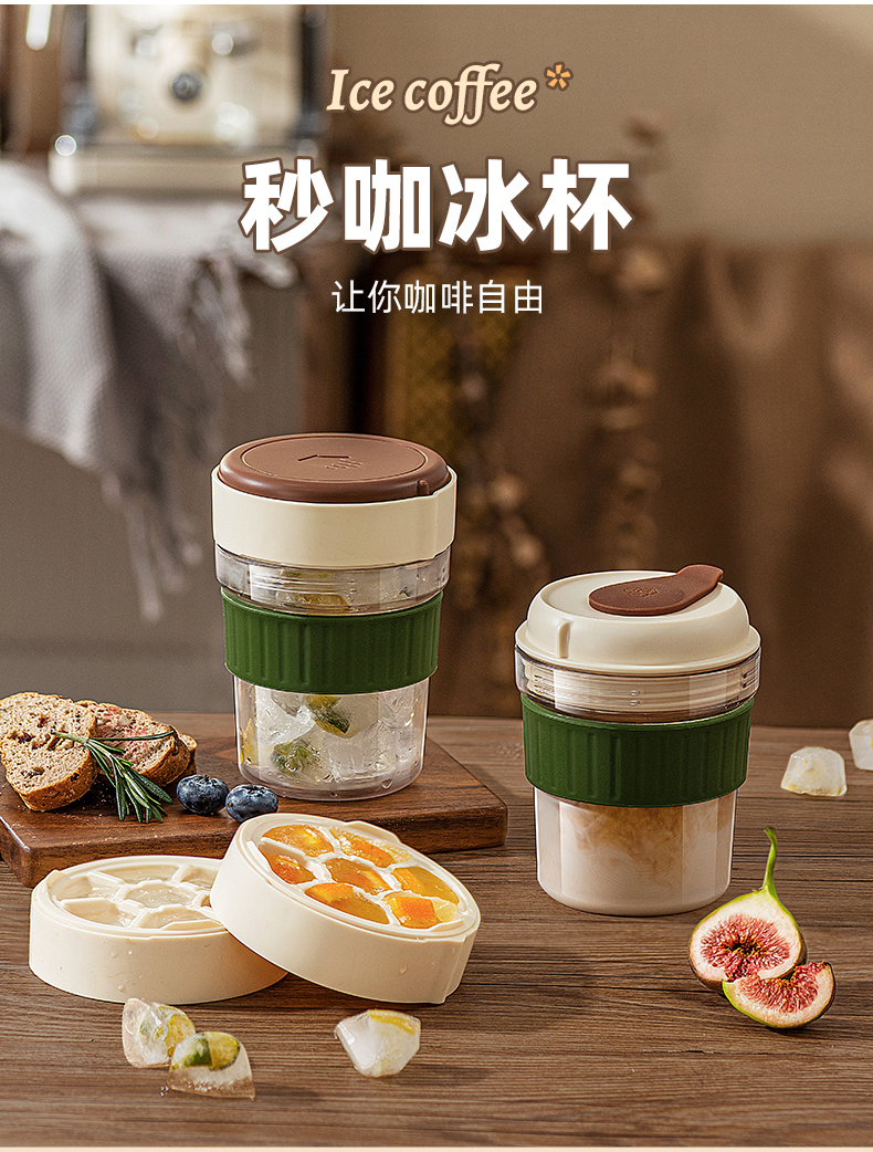 摩登主妇咖啡杯设计感杯子Tritan水杯自带冰格随手杯高级感拿铁杯