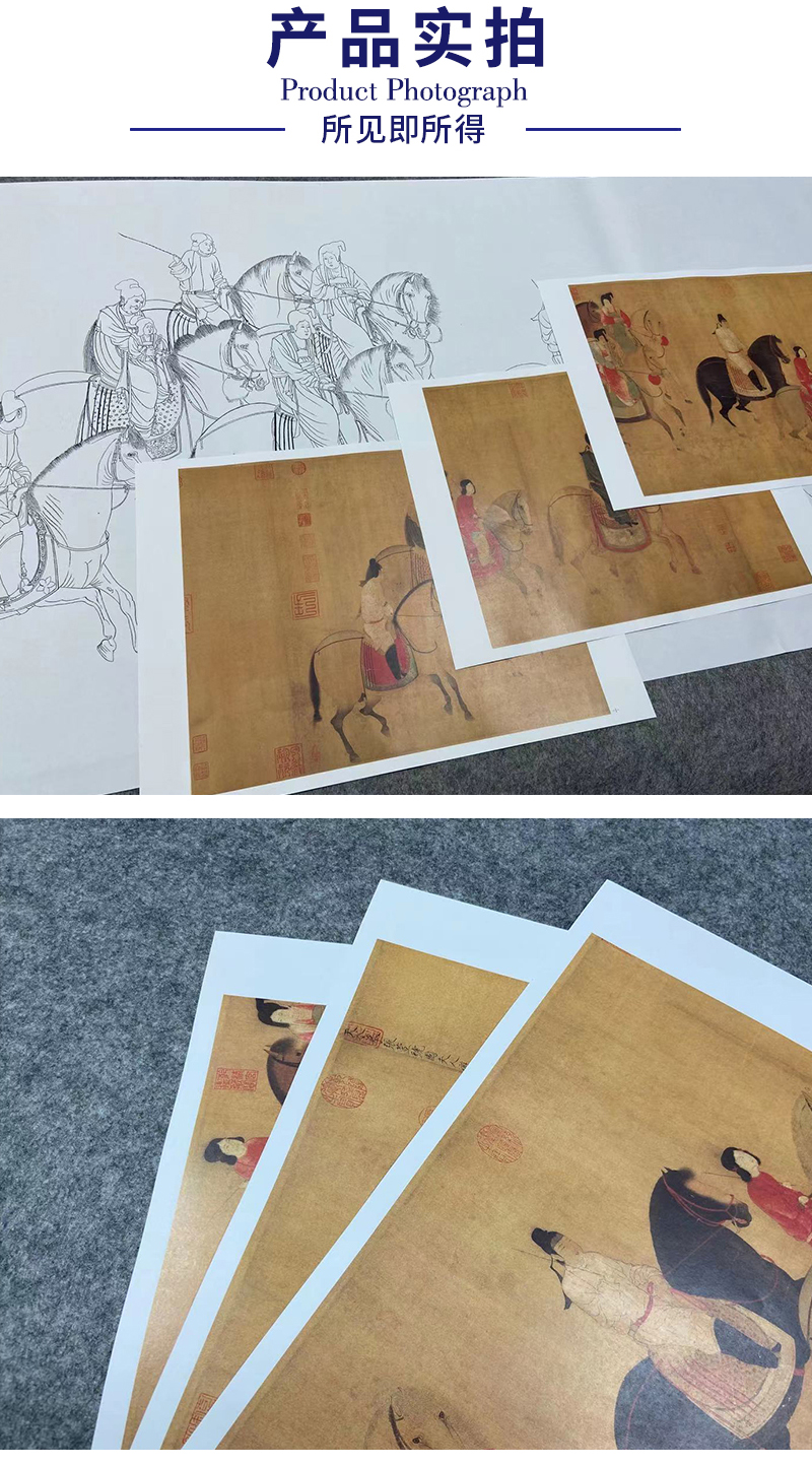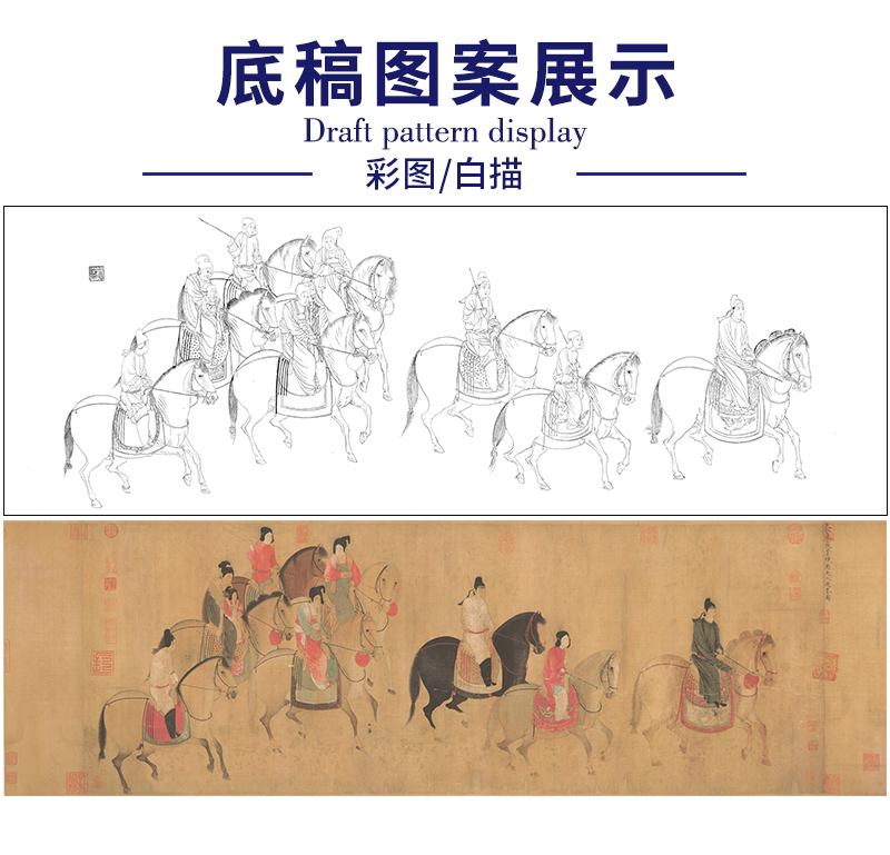【长卷】工笔人物画白描底稿古画长卷张暄《虢国夫人游春图》多种白描尺寸可选G009