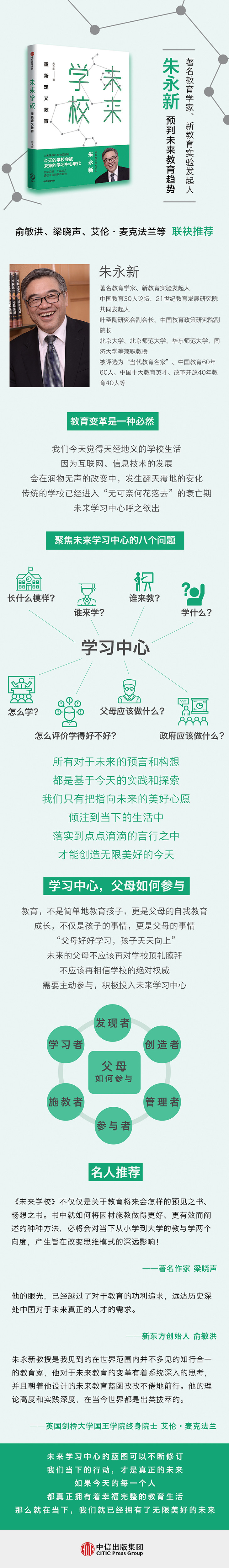 针对当下诸多教育痛点,朱永新对未来教育趋势做出了预判:今天的会被未来的学习取代。同时,他系统整理了关于未来学习的八个问题。