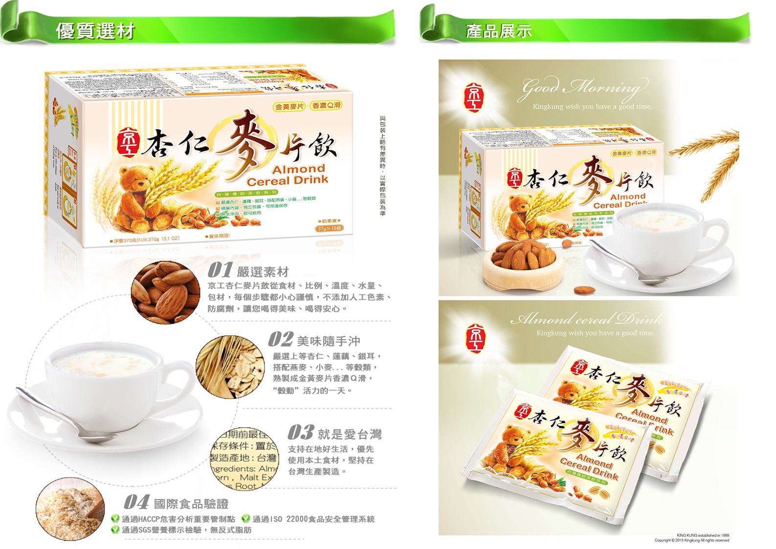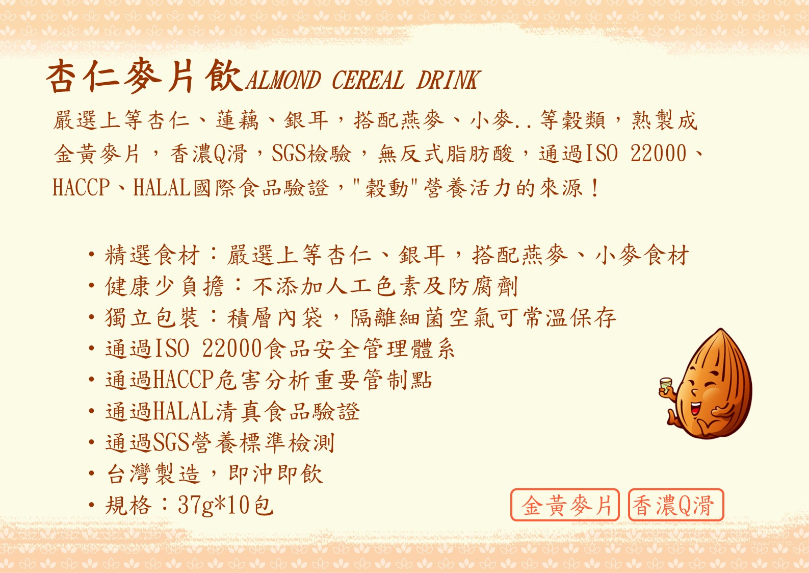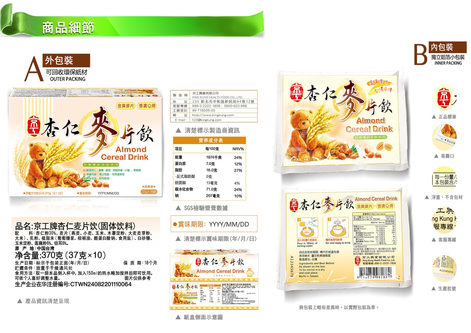 京工牌杏仁麦片饮「奶素」| 37g*10袋/盒 黄金麦片香浓Q弹 方便代餐 宝岛台湾【京工系列任买3盒包邮】