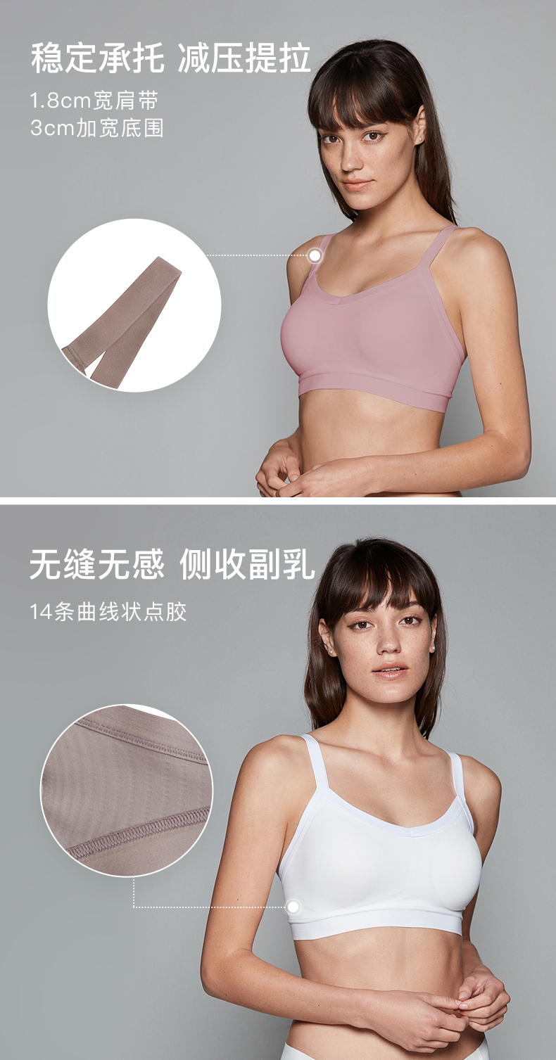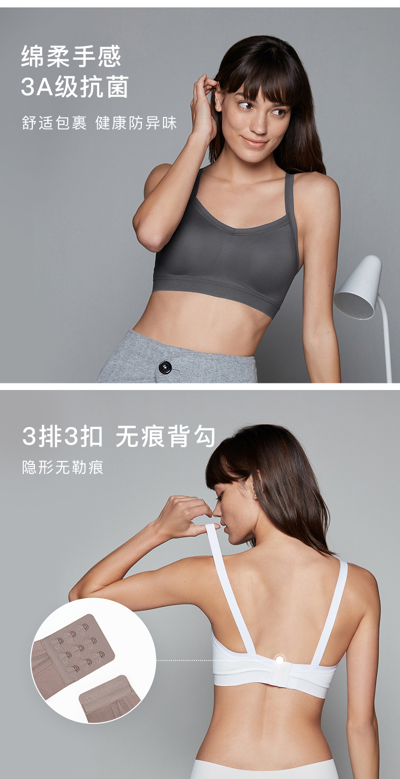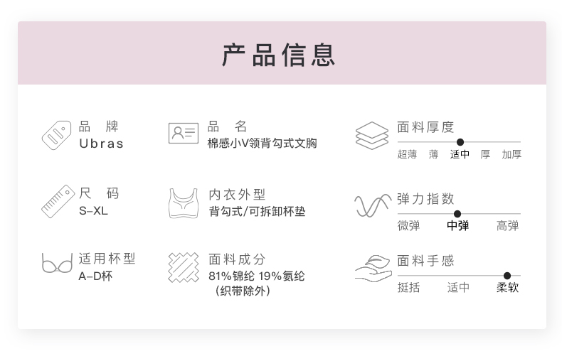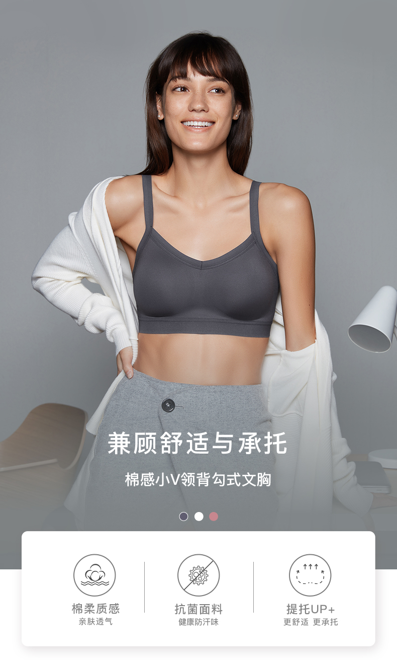 Ubras棉感小V领背勾式文胸内衣女无钢圈舒适聚拢秋性感
