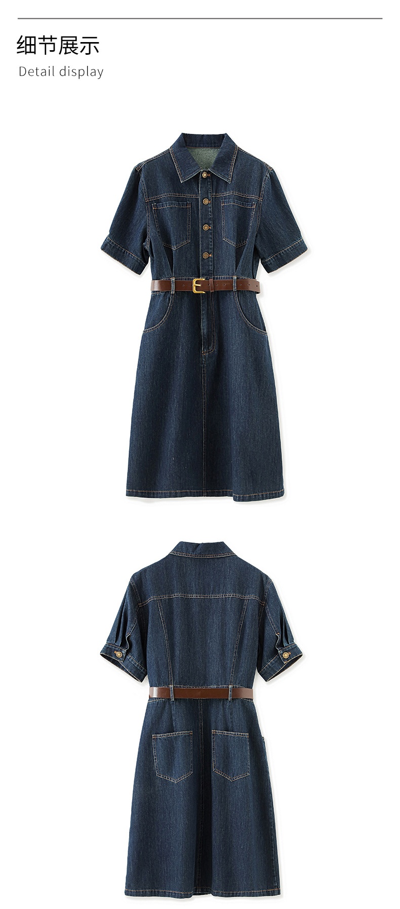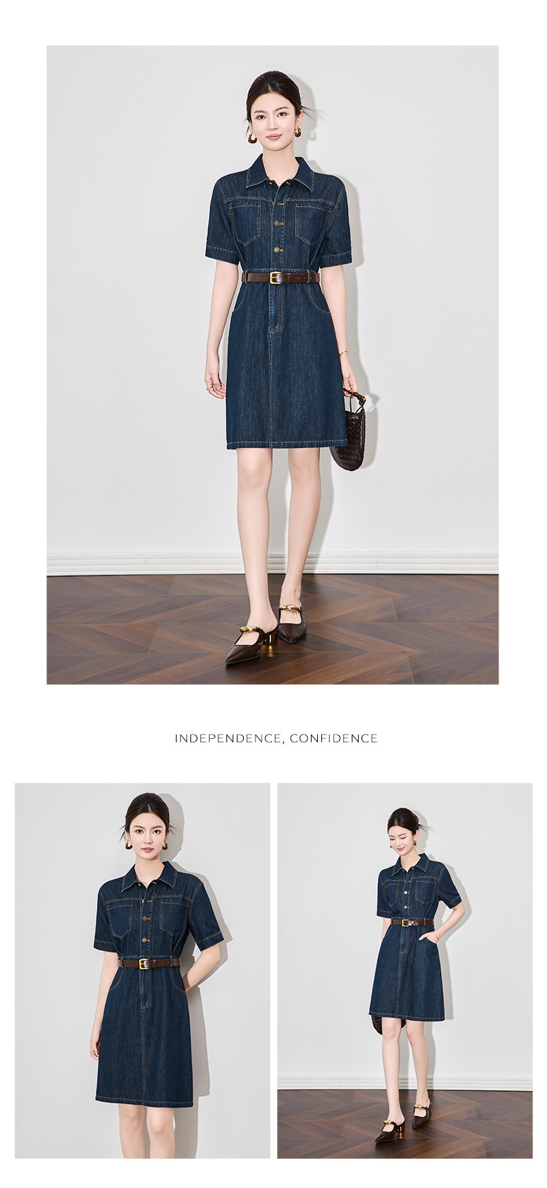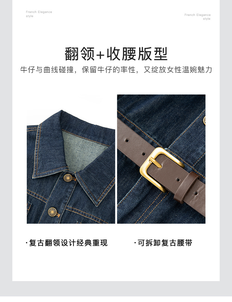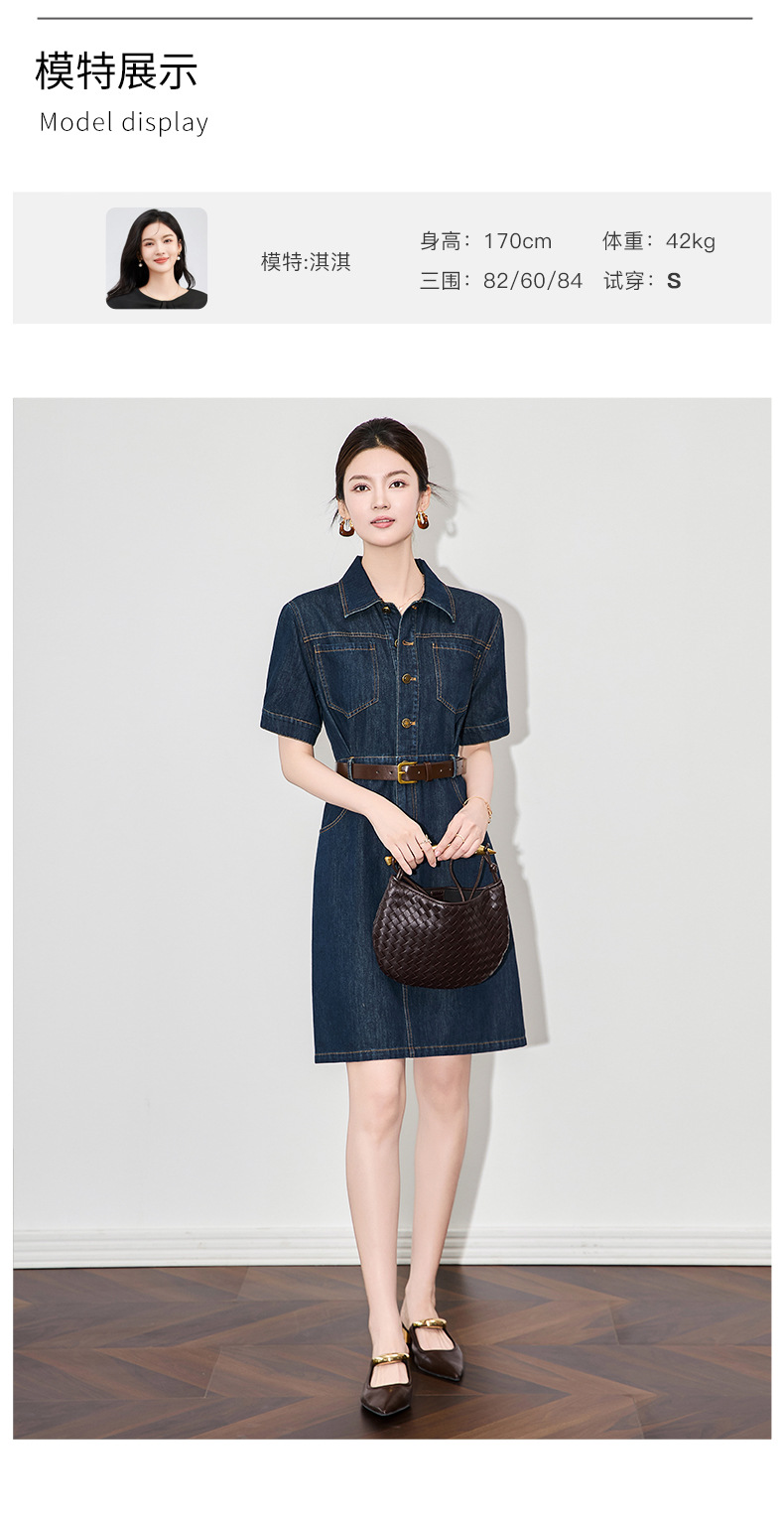 「高货wl」全新升级【铂金会员330/天猫439/差价109】(40950)洛诗琳复古港风连衣裙2025夏季时尚翻领法式气质牛仔裙女