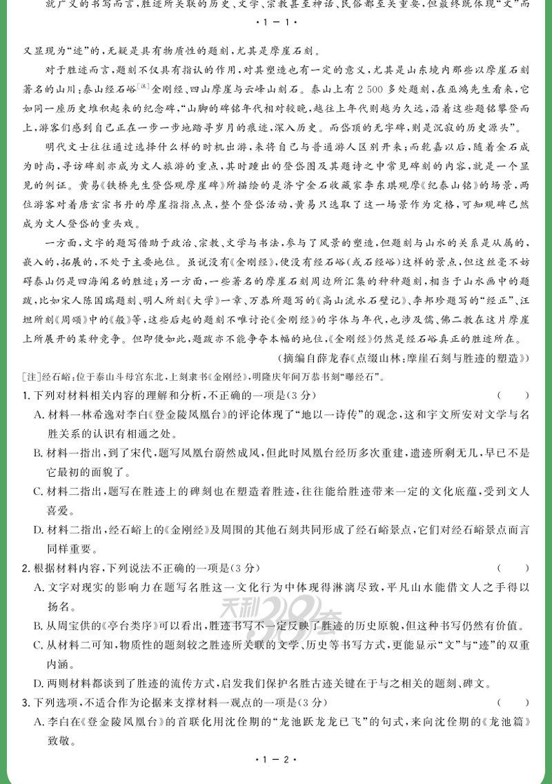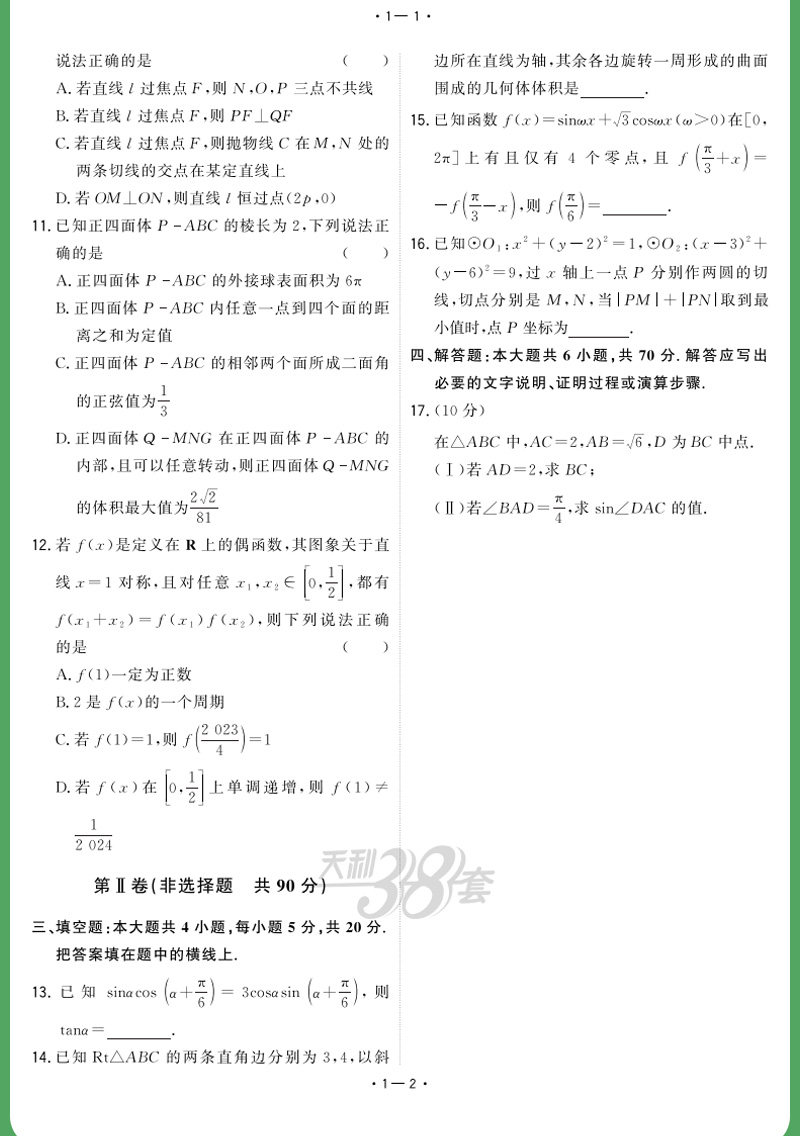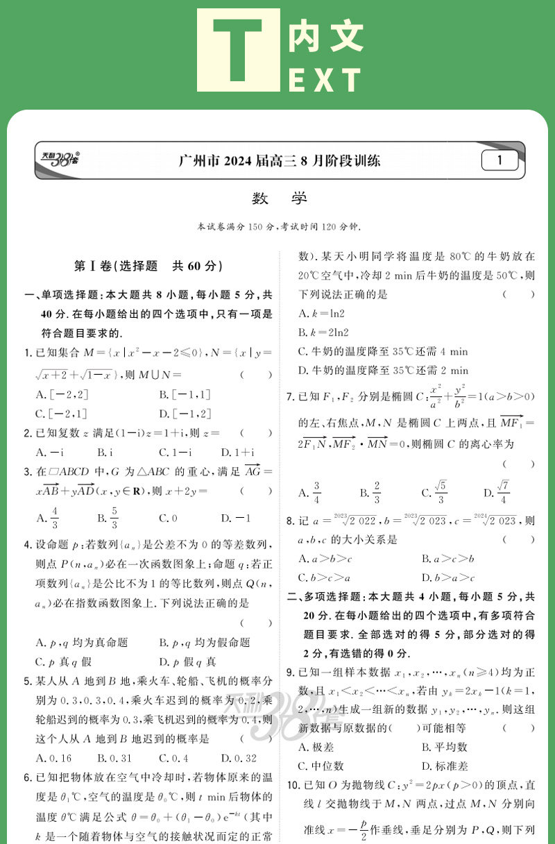 2024版天利38套模拟试题汇编摸底检测卷第1辑 新高考 精选试卷