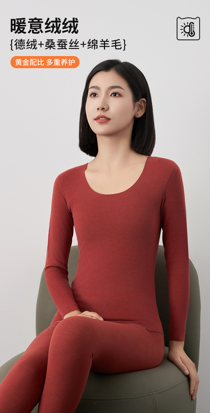 保暖内衣女秋冬新款徳绒自发热羊毛蚕丝无痕内搭修身秋衣秋裤套装